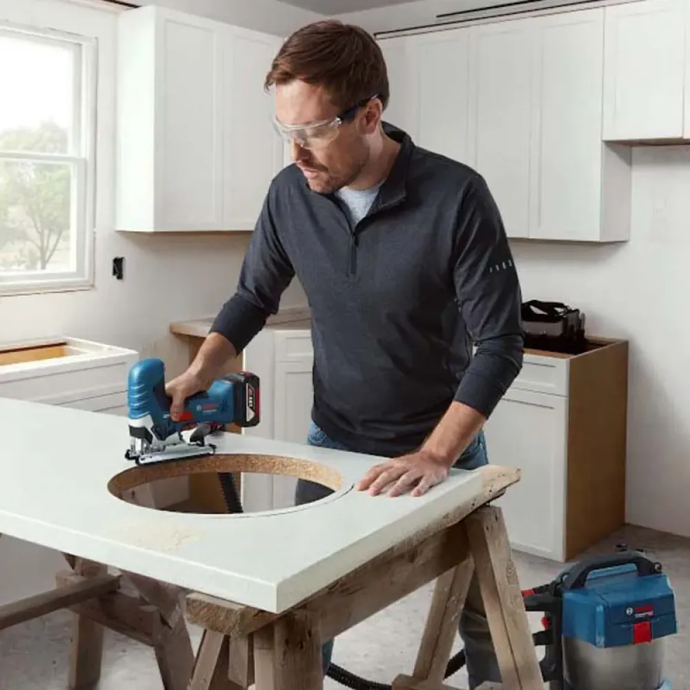 Аккумуляторный лобзик Bosch GST 185-LI – компактный ручной инструмент для прямого и фигурного пиления древесных материалов.