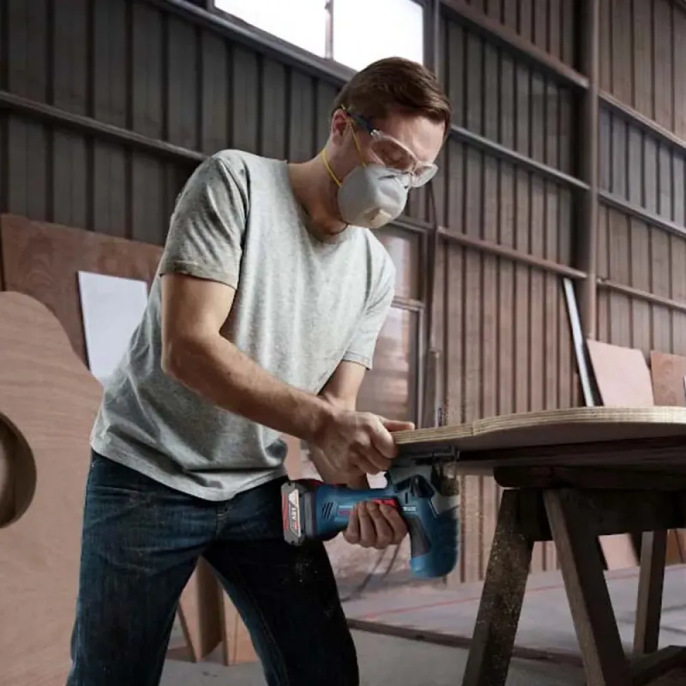 Инструмент имеет удобную грибовидную рукоятку. Компактный размер и производительность как у сетевого инструмента благодаря мощному бесщеточному двигателю и аккумуляторной платформе 18 В. 4-ступенчатое маятниковое движение для выбора режимов быстрого или чистого резания и переключения скоростей для работы с разными материалами. Cистема смены оснастки SDS позволяет менять пильные полотна без использования других инструментов. LED-подсветка для освещения рабочего пространства. Чистая работа без пыли. Прочная опорная плита. Версия соло в картоне, пила с грибовидной рукояткой.