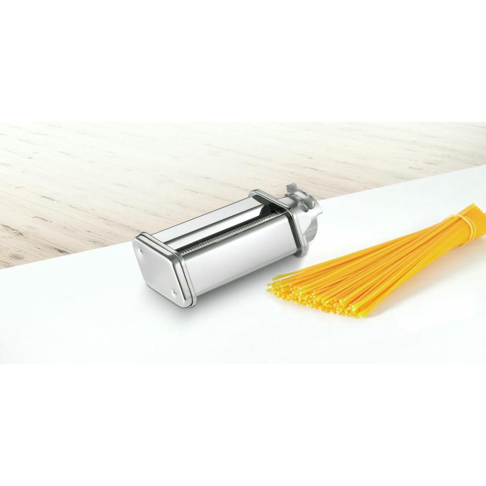 Насадка на кухонные комбайны Bosch MUZ5NV3 предназначена для приготовления спагетти и позволит с лёгкостью превратить листы теста в аккуратные домашние спагетти толщиной 1.6 мм