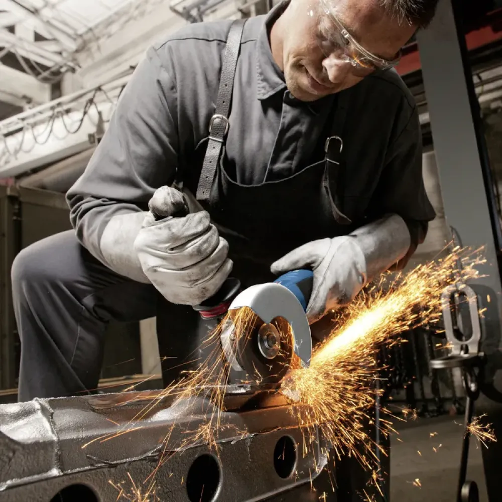Благодаря функции плавного пуска двигатель постепенно набирает обороты, без стартовых рывков. УШМ Bosch GWS 12-125 S поддерживает постоянную скорость вращения шпинделя при интенсивной нагрузке. В случае обратного удара или заклинивания оснастки происходит защитное автоматическое выключение инструмента. Боковая рукоятка с амортизатором эффективно снижает вибрации, обеспечивая удобство во время продолжительных работ.