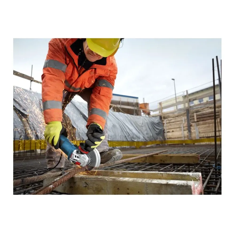 Защита от перегрузок в цепи, а также от перегрева мотора также предусмотрены в Bosch GWS 13-125 CIE. От осколков, искр и мусора отгораживает поворотных кожух, который достаточно прочен чтобы выдержать расколовшийся диск.