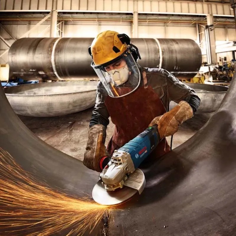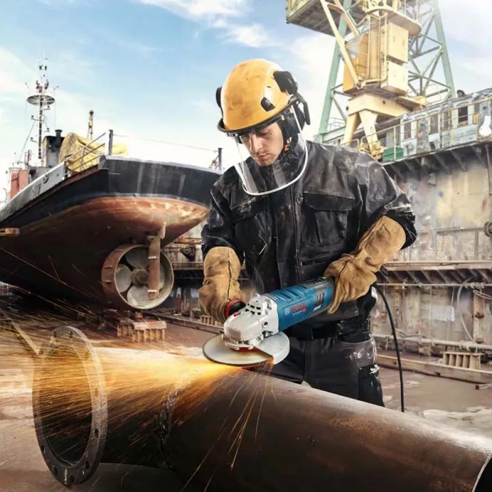 Угловая шлифовальная машина подходит для резки заготовок, обдирки, зачистки, полировки поверхностей, крацевания каменных и металлических изделий и других задач. Выключатель болгарки Bosch можно зафиксировать в нажатом положении, чтобы не удерживать его при длительном использовании инструмента. Бесщеточный двигатель практически не нагревается в процессе работы ввиду отсутствия трущихся элементов, это снижает продолжительность простоев и износ УШМ.