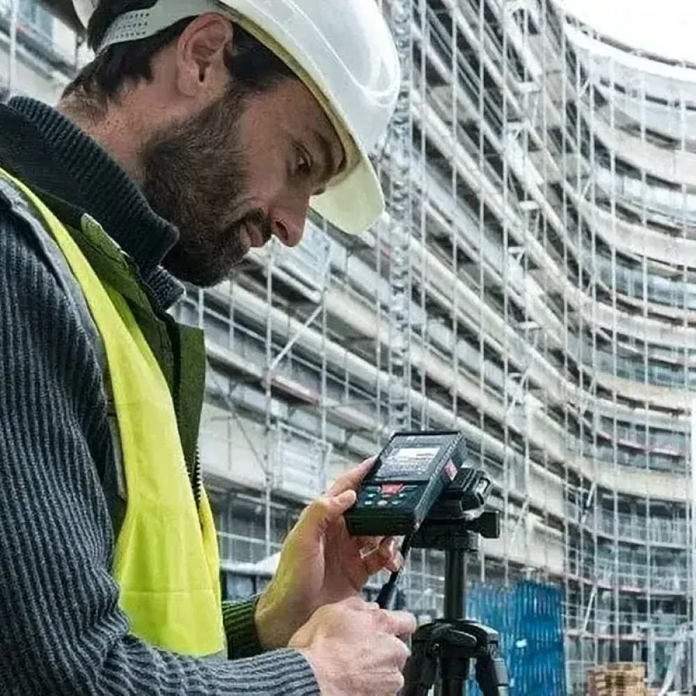 Дальномер Bosch GLM 120 C пригоден для измерений дистанций как внутри помещений, так и на открытой местности. Минимальное расстояние – 8 см, максимальное – 120 м. Точность отсчетов достигает ±1.5 мм и ±0.2° в угловом эквиваленте.Выбор функций производится в меню, переключение по которому является интуитивно понятным. В случае возникновения затруднений, имеется анимированная вкладка «Помощь» для некоторых пунктов. Управление производится клавишами на фронтальной панели, а также с помощью дополнительных кнопок на торце.