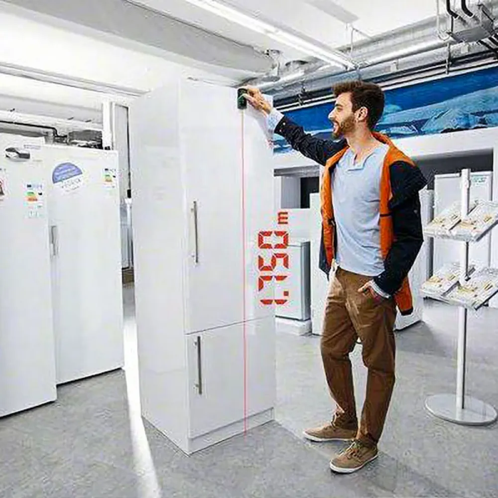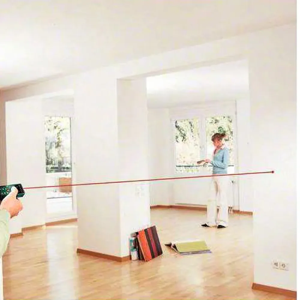 Лазерный дальномер Bosch определяет расстояния от 5 см до 50 м с точностью ± 2 мм. Началом отсчета служит как опорная подошва, так и передний край лазерной рулетки. Выбор делается по нажатию соответствующей клавиши.