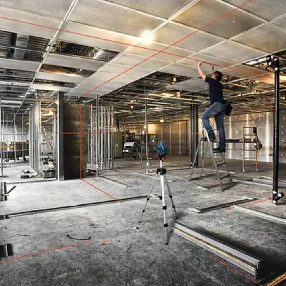 Безопасность внутренних элементов обеспечивает надежный пластиковый корпус. Класс защиты соответствует стандарту IP 54. Это дает возможность использовать лазерный осепостроитель в типичных условиях для строительных площадок и производственных помещений.