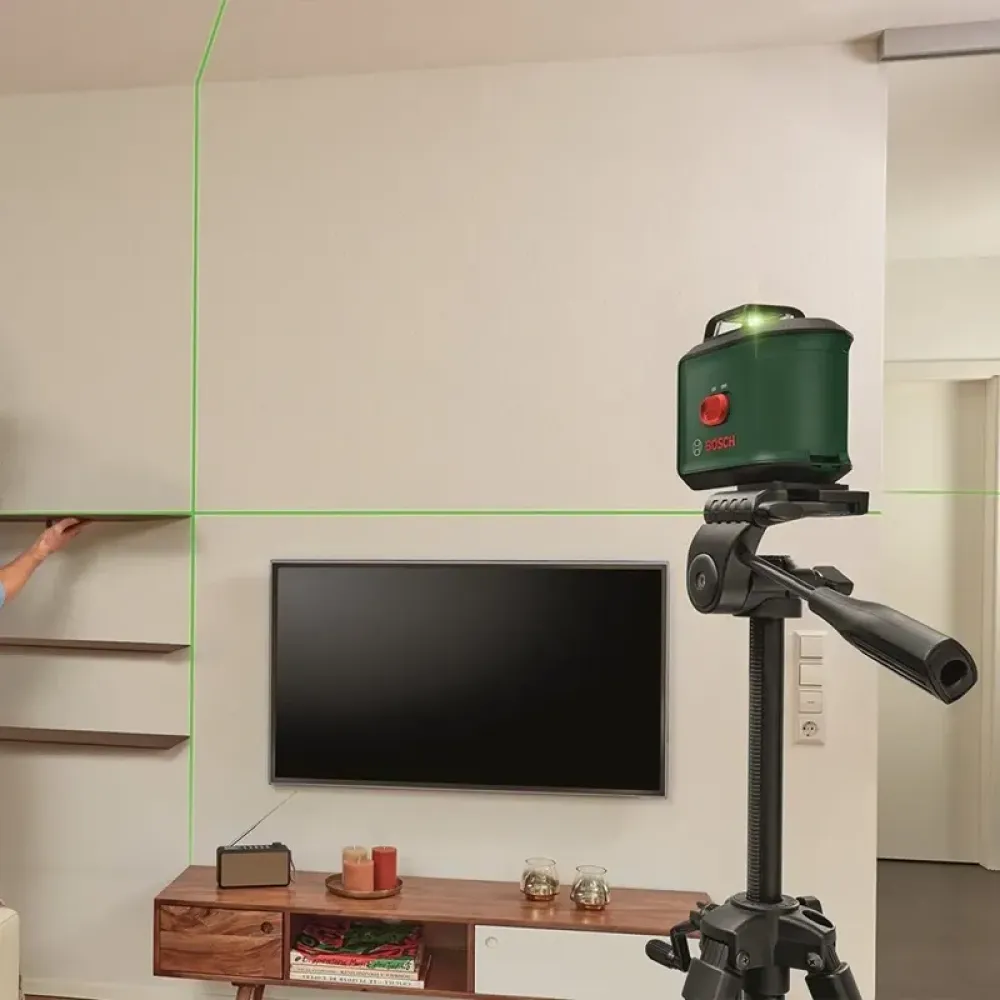 Яркие зеленые лучи хорошо различимы как в темное время суток, так и на солнце. Точность выравнивания и диапазон самонивелирования составляет ± 0,4 мм/м, что достаточно для качественного результата работы.