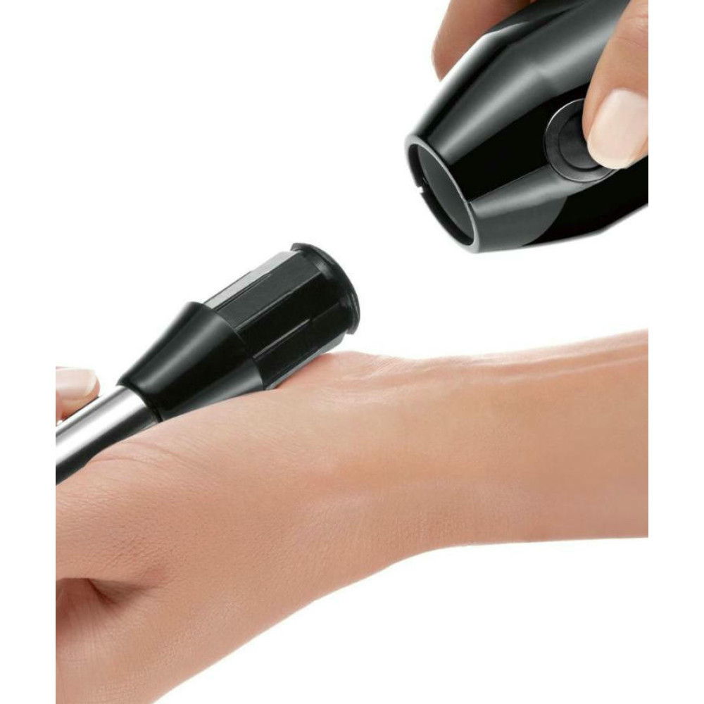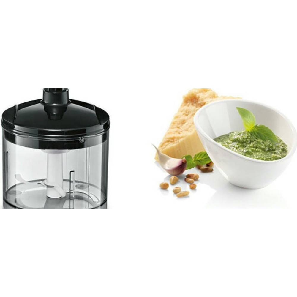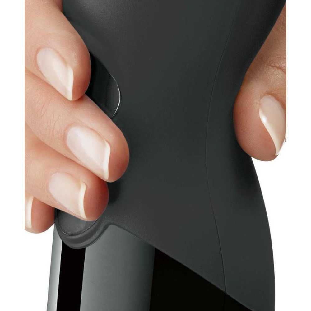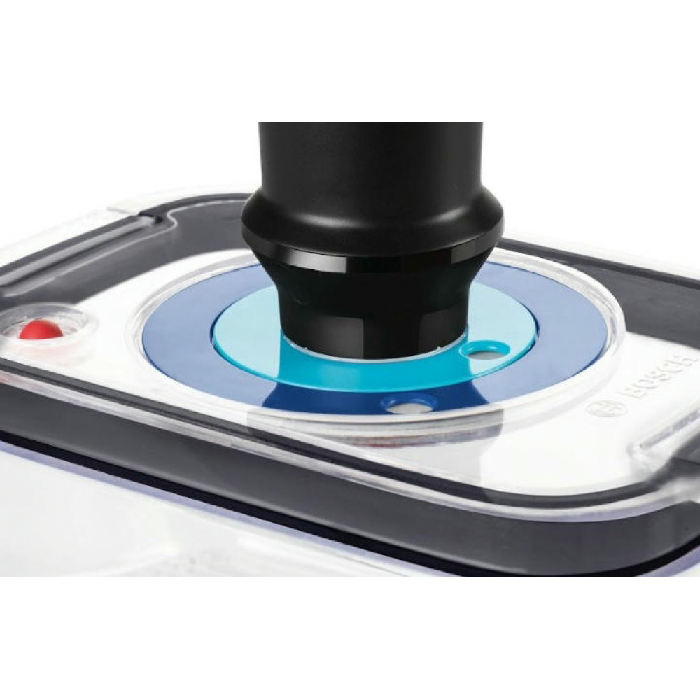 Блендер BOSCH MS6CB61V5 выполнен в черном цвете, является элементом коллекции ErgoMixx. Корпус выполнен из пластика, а погружная насадка из нержавеющей стали, которая гарантированно долго прослужит за счет повышенной прочности материала и устойчивости к внешним воздействиям. Нож блендера оснащен четырьмя лезвиями QuattroBlade. Управление осуществляется с помощью кнопок и поворотного переключателя. Эргономичная рукоять оборудована прорезиненным покрытием, которое обеспечит надежную фиксацию во время работы. В стандартную комплектацию входят: мерный стакан, чаша измельчителя с крышкой, венчик для взбивания, вакуумный насос, контейнер и пакеты с замком. Все съемные детали можно мыть в посудомоечной машине, что значительно облегчает уход за прибором.