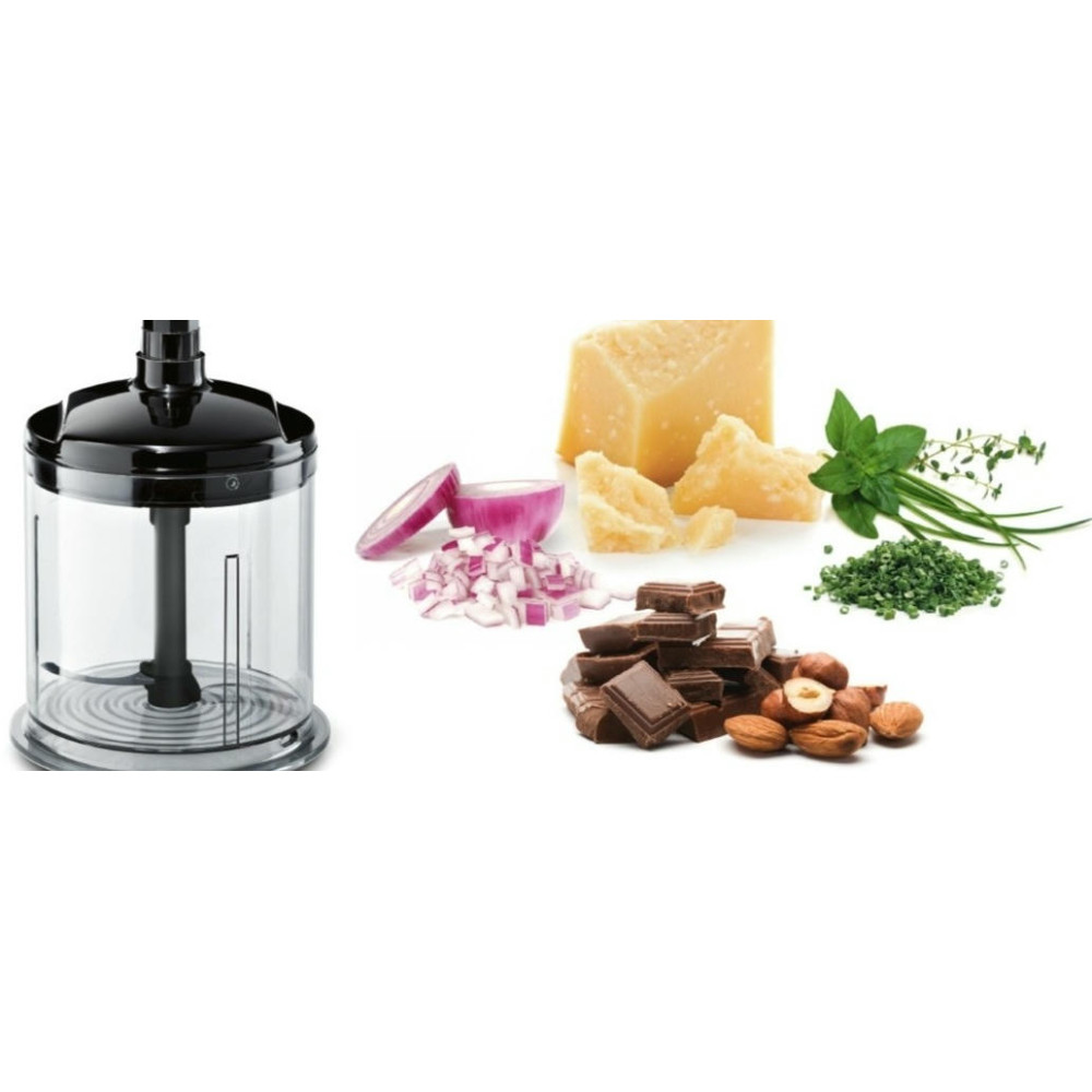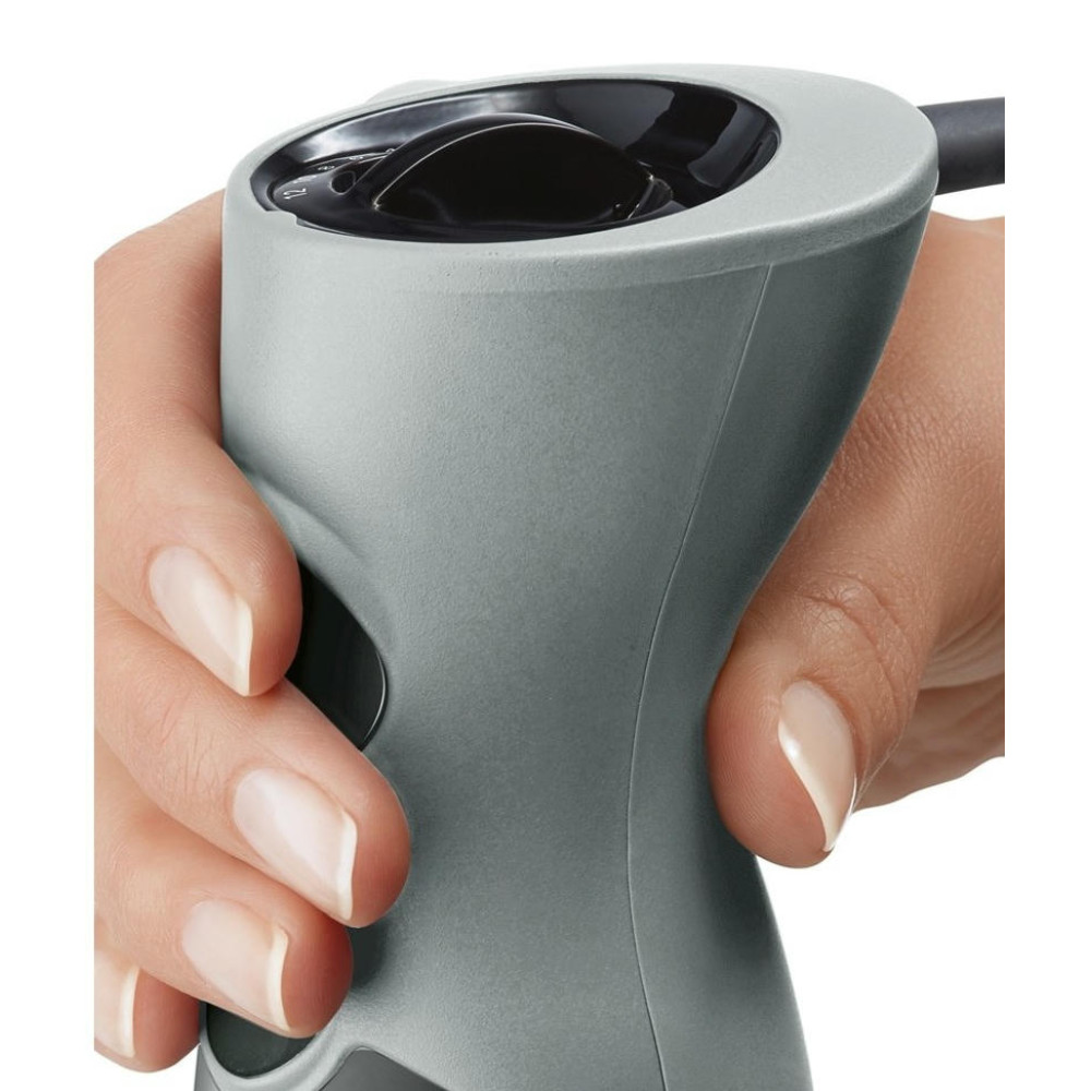 Погружной блендер MSM 67150 RU оснащен эргономичной ручкой с мягким покрытием. Прибор не выскальзывает из рук и обеспечивает надежный хват. Наличие измельчителя расширяет функциональные возможности модели. 12 режимов работы позволяют подобрать необходимую скорость для приготовления разных видов блюд. Ножка блендера и дополнительные принадлежности подходят для мытья в посудомоечной машине, что повышает комфорт использования.
