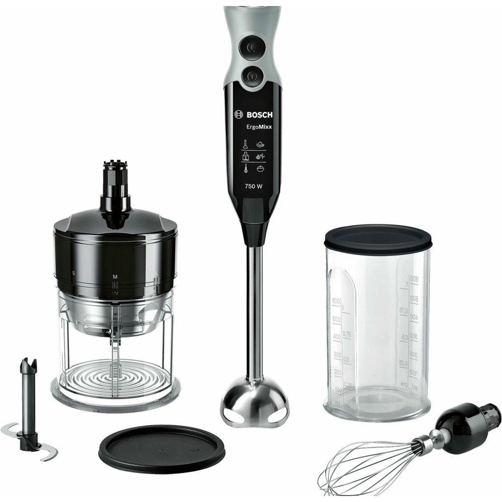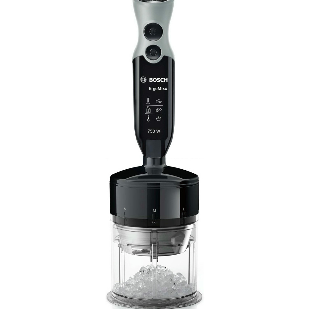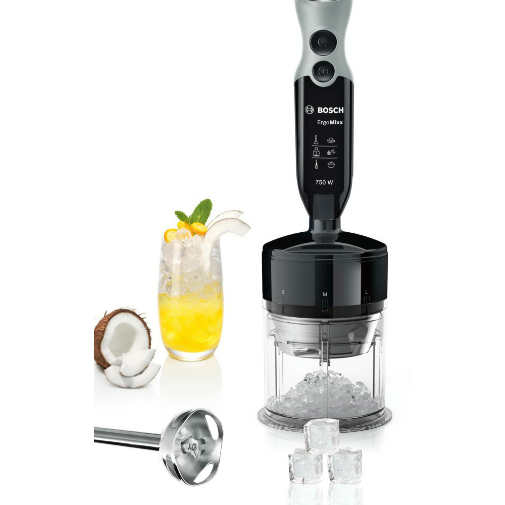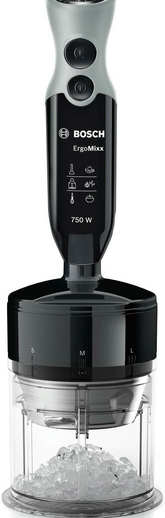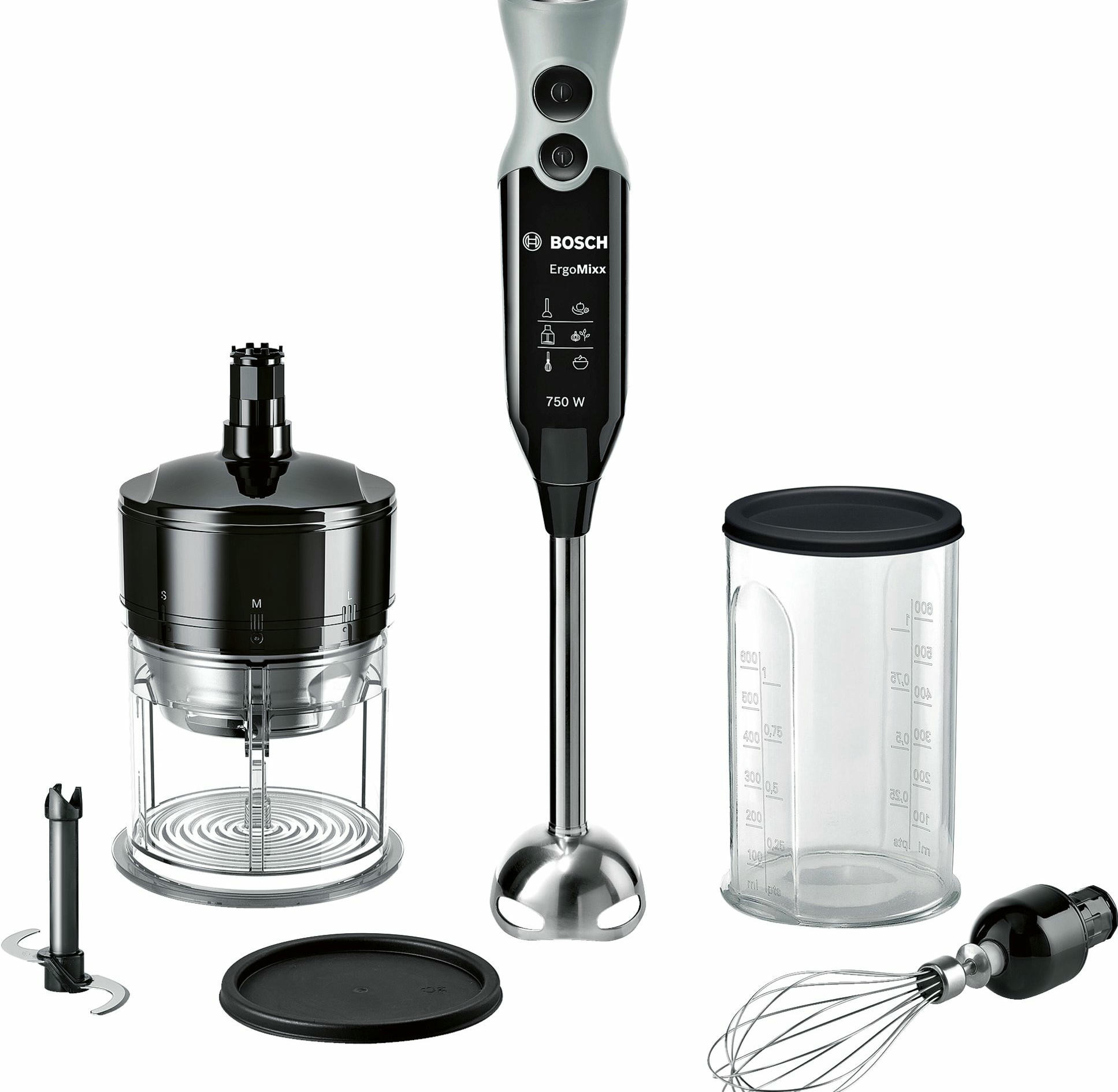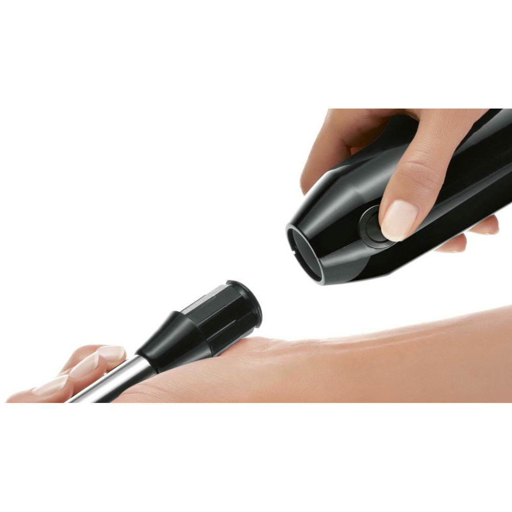 Присоединение металлической ножки с 4 лезвиями QuattroBlade дает возможность использовать прибор с мерным стаканом или другой посудой, измельчать и пюрировать овощи и фрукты.
