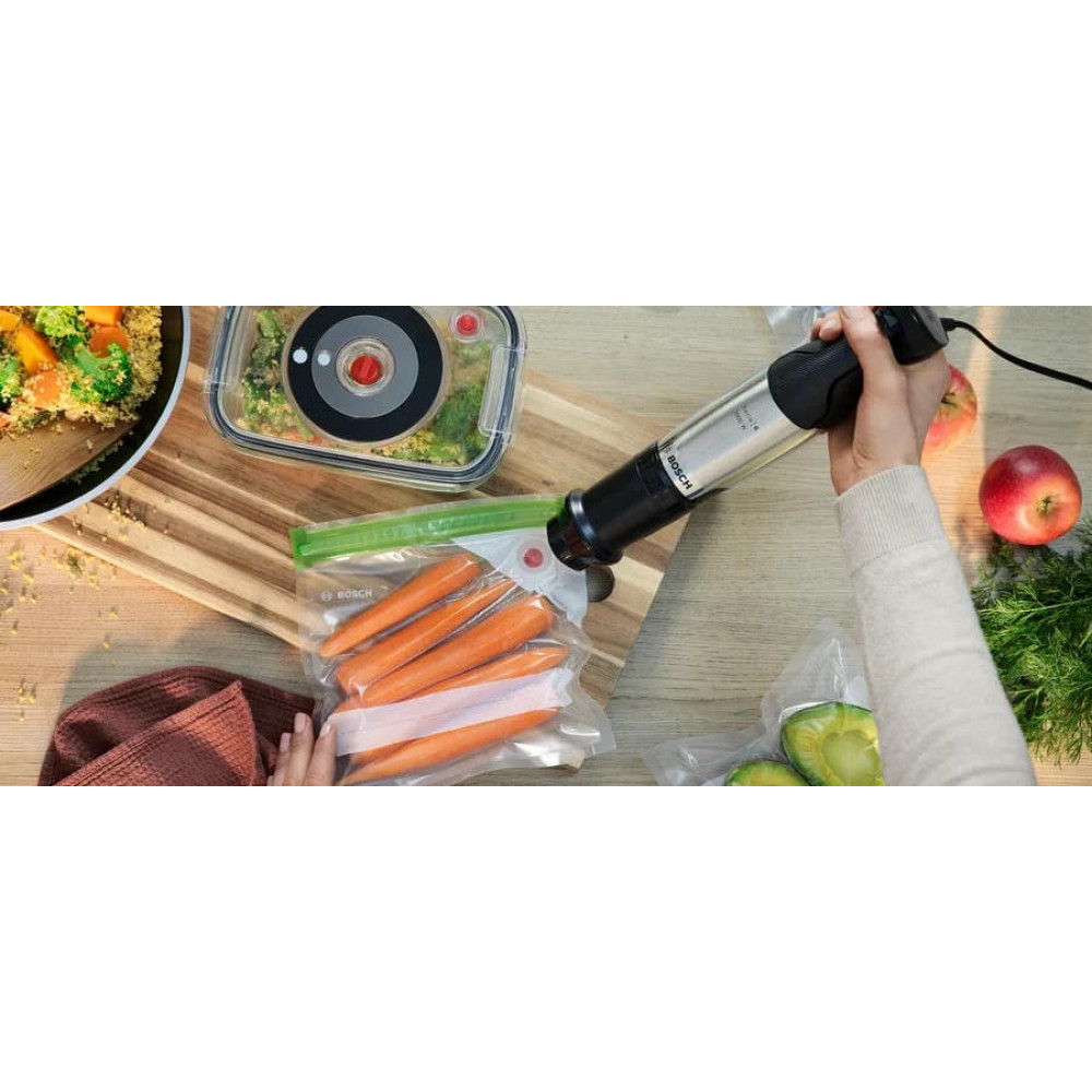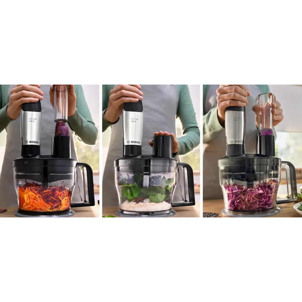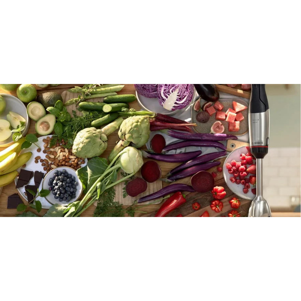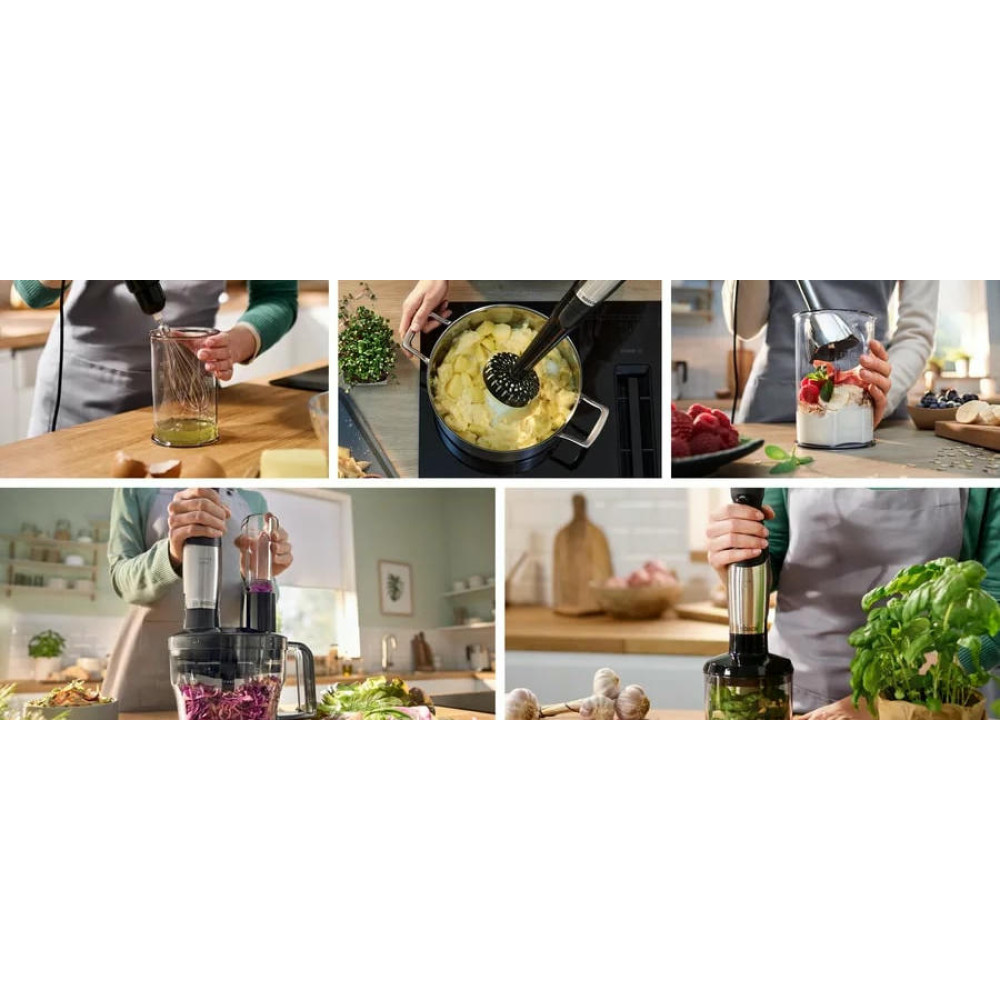 Блендер Bosch MSM6M673 имеет одну скорость, но при этом оснащен импульсным / турбо режимом, что позволяет быстро и эффективно обрабатывать продукты разной консистенции. В комплекте с блендером идет мерный стакан, что облегчает процесс приготовления различных блюд. Дополнительными функциями данной модели являются насадка для приготовления картофельного пюре и венчик для взбивания. Это позволяет использовать блендер не только для измельчения продуктов, но и для приготовления разнообразных блюд и десертов. Блендер Bosch MSM6M673 оснащен универсальной чашей с ножом для измельчения твердых продуктов, 4 режущими вставками для шинковки и терки, насадкой для замеса теста и колкой льда. Это делает его многофункциональным помощником на кухне. Вакуумный насос и вакуумный контейнер объемом 0.5 литра позволяют сохранять свежесть продуктов и готовых блюд. Съемные детали блендера можно мыть в посудомоечной машине, что значительно облегчает его уход.