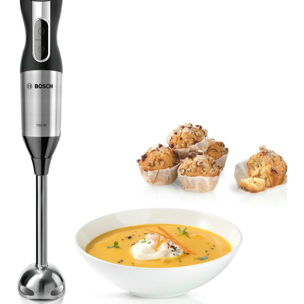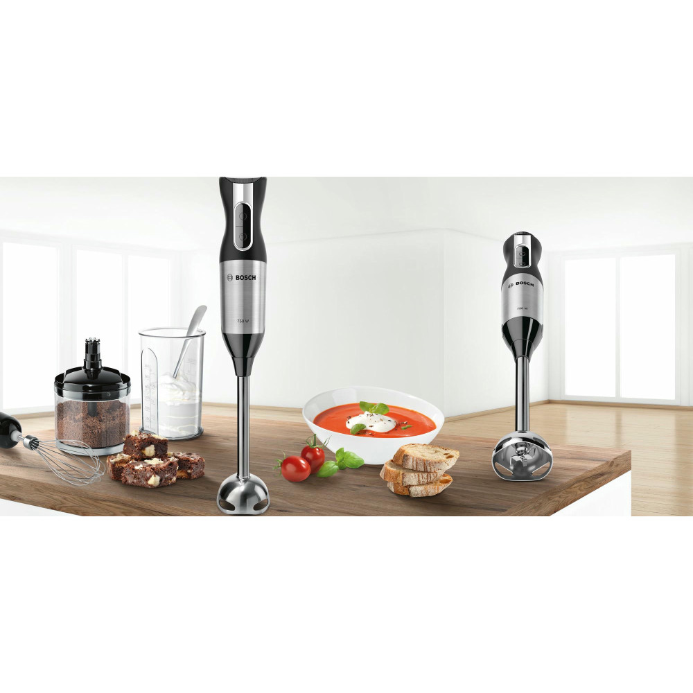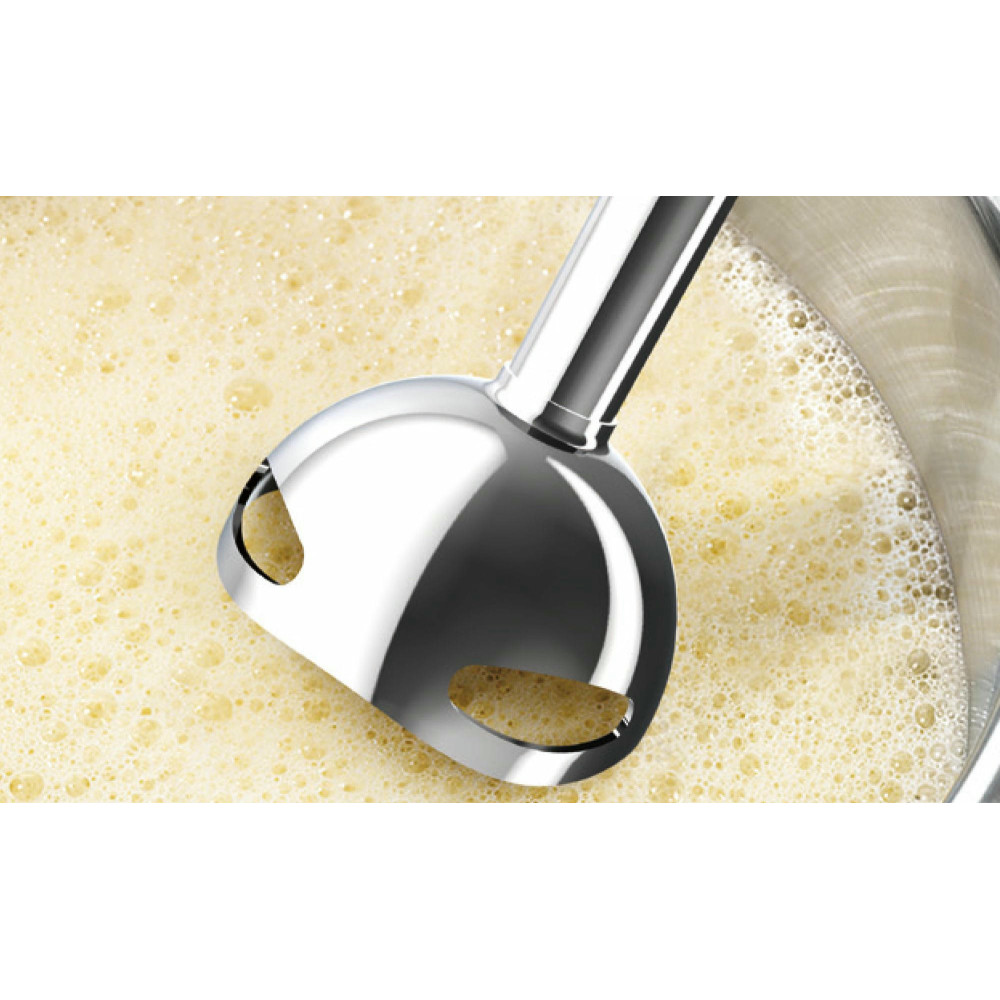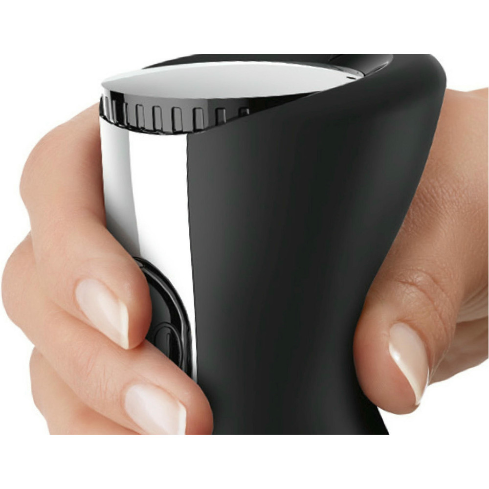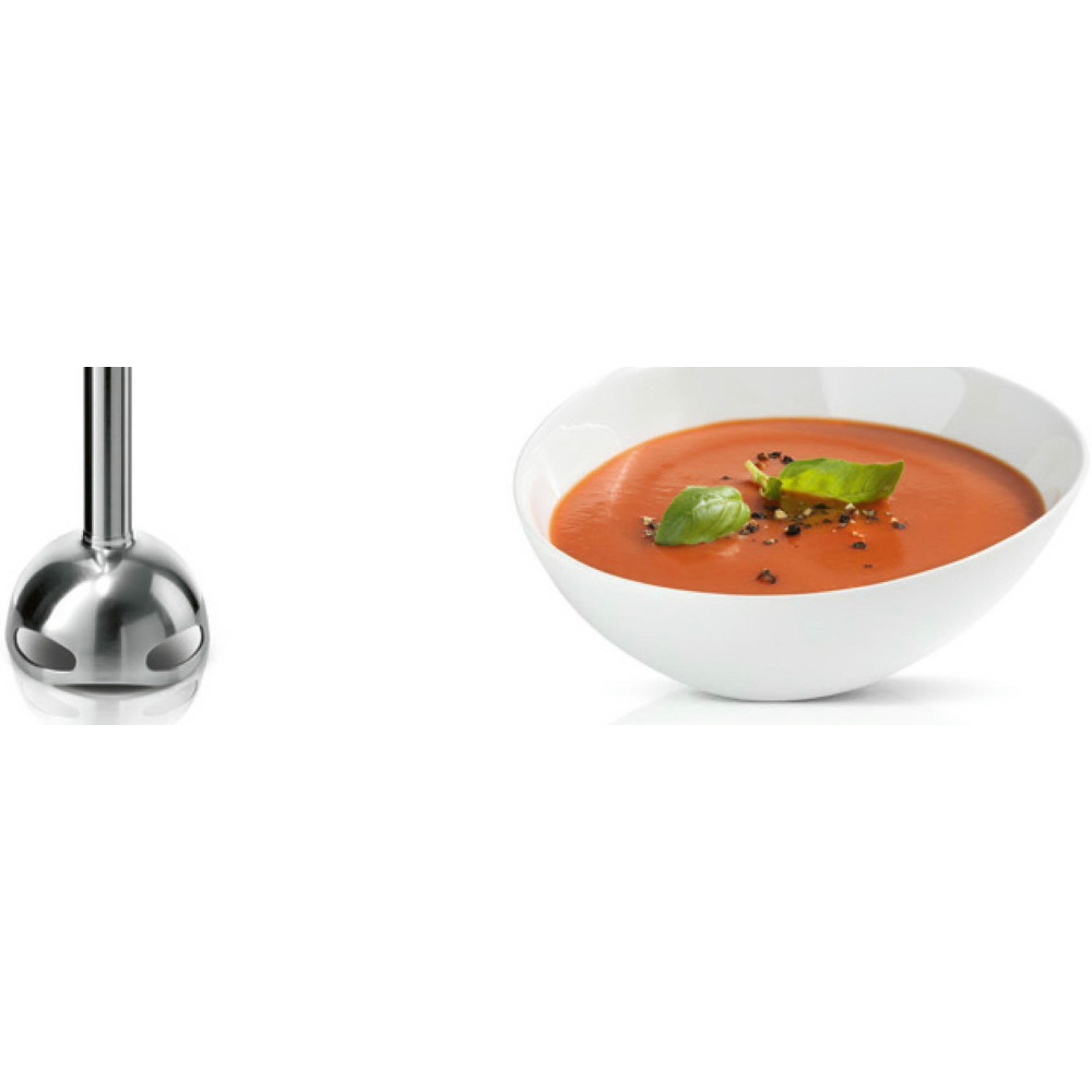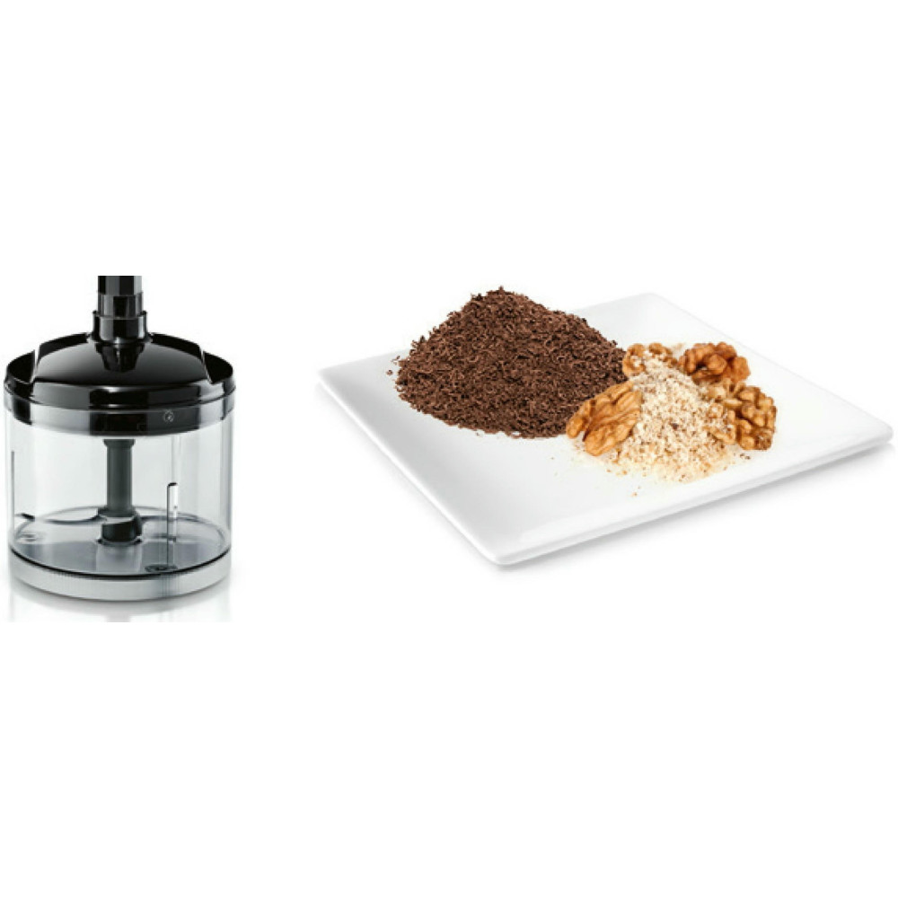 Благодаря мощному мотору 750 Вт, конструкции лезвий QuattroBlade и 12 скоростным режимам прибор легко справляется с зеленью, твердым сыром, орехами, шоколадом, овощами и фруктами. Эргономичная ручка позволяет легко регулировать скорости и включать турборежим.
