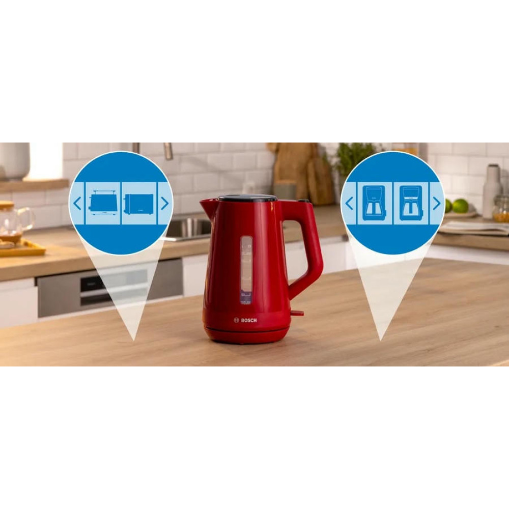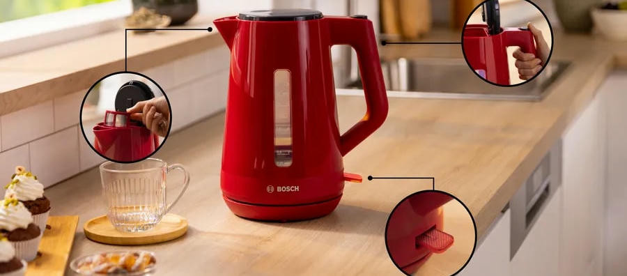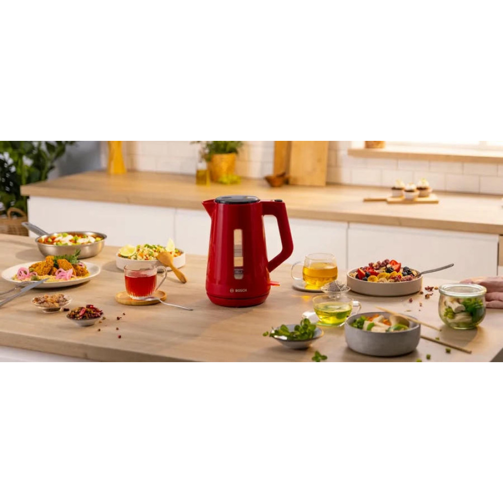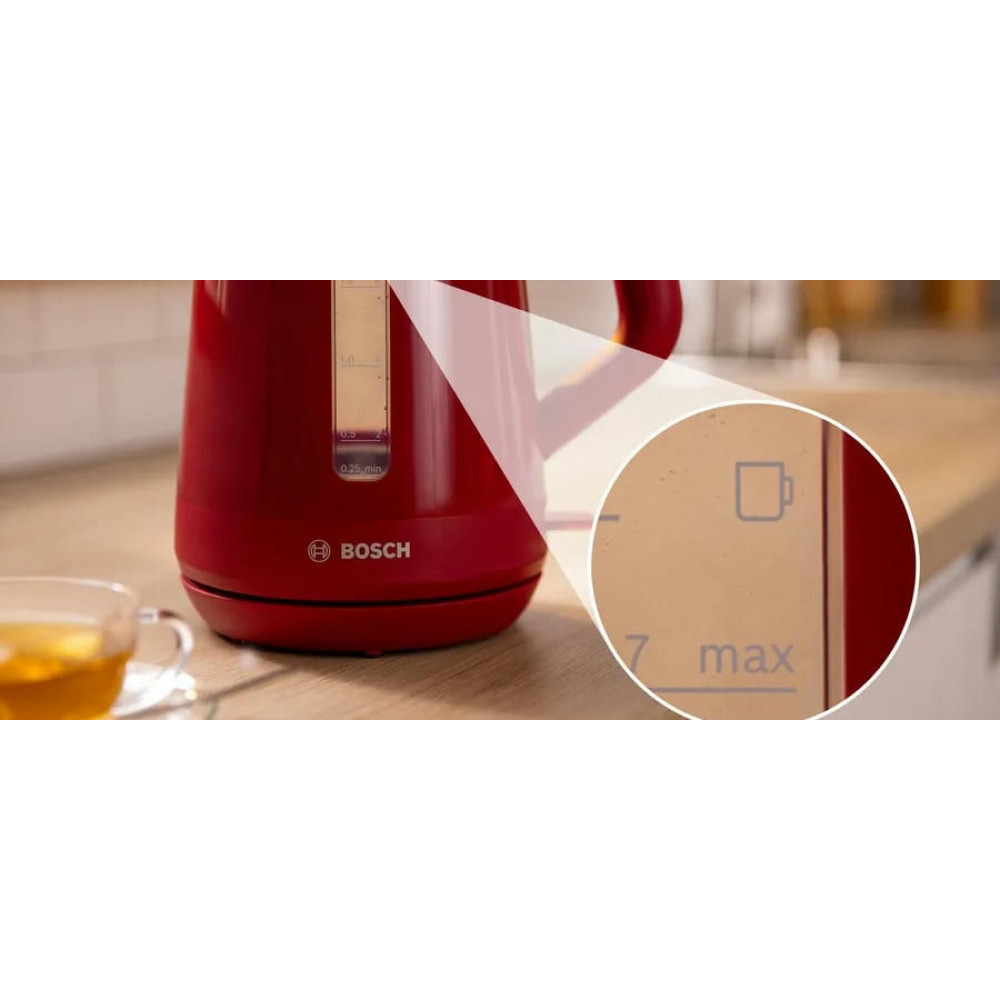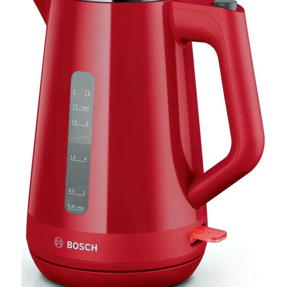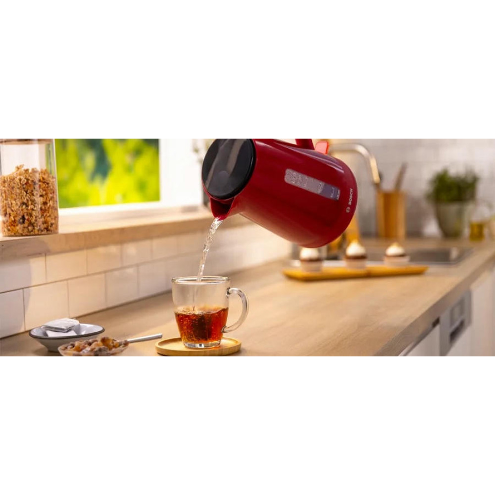 Чайник Bosch TWK 1M124 является незаменимым помощником на кухне, сочетающим в себе стильный дизайн и функциональность. Он выполнен в ярком красном цвете, что придаст вашей кухне яркую нотку и сделает процесс приготовления чая более приятным. Корпус изготовлен из качественного пластика, который обеспечивает долговечность и надежность использования.