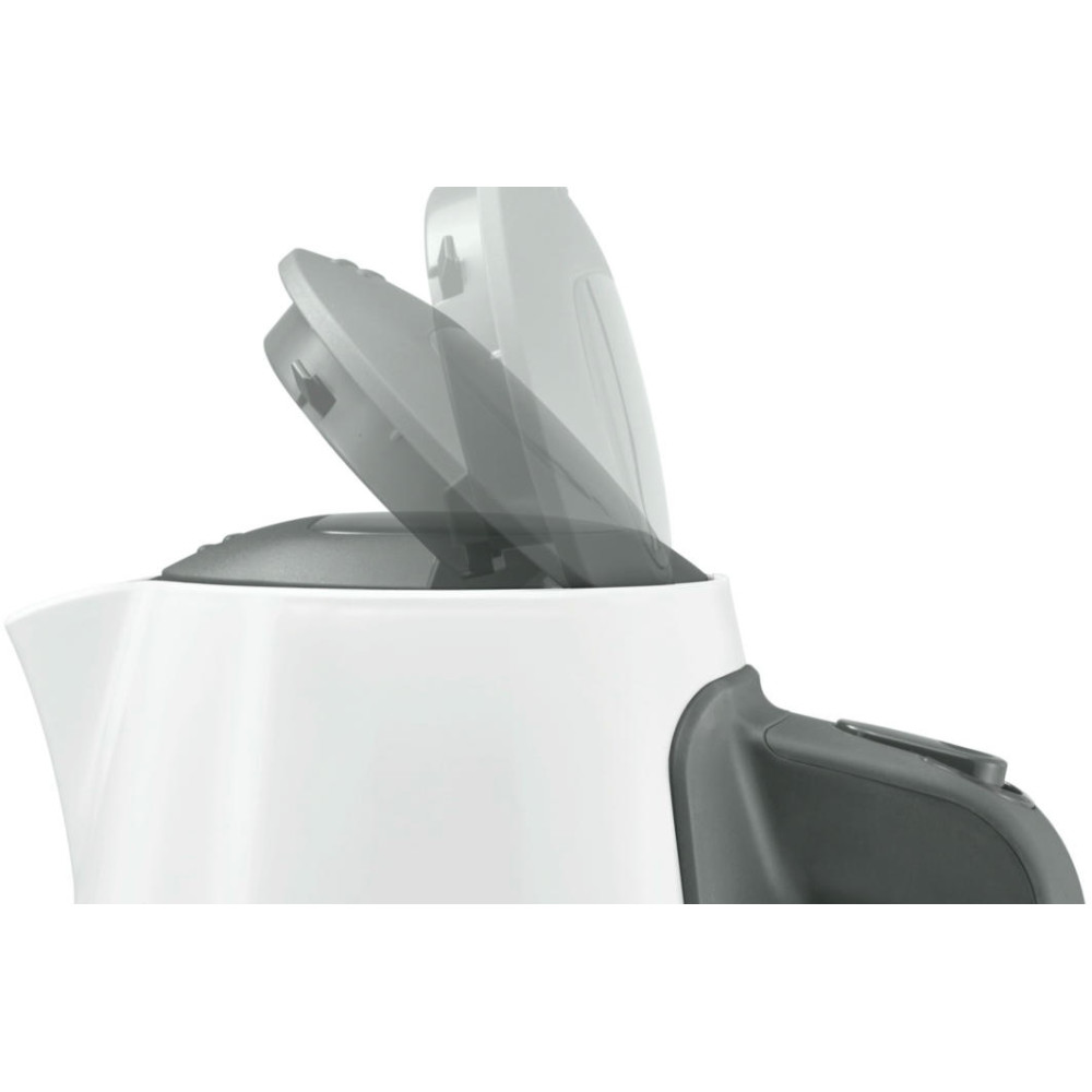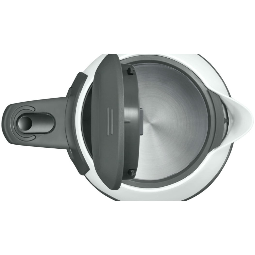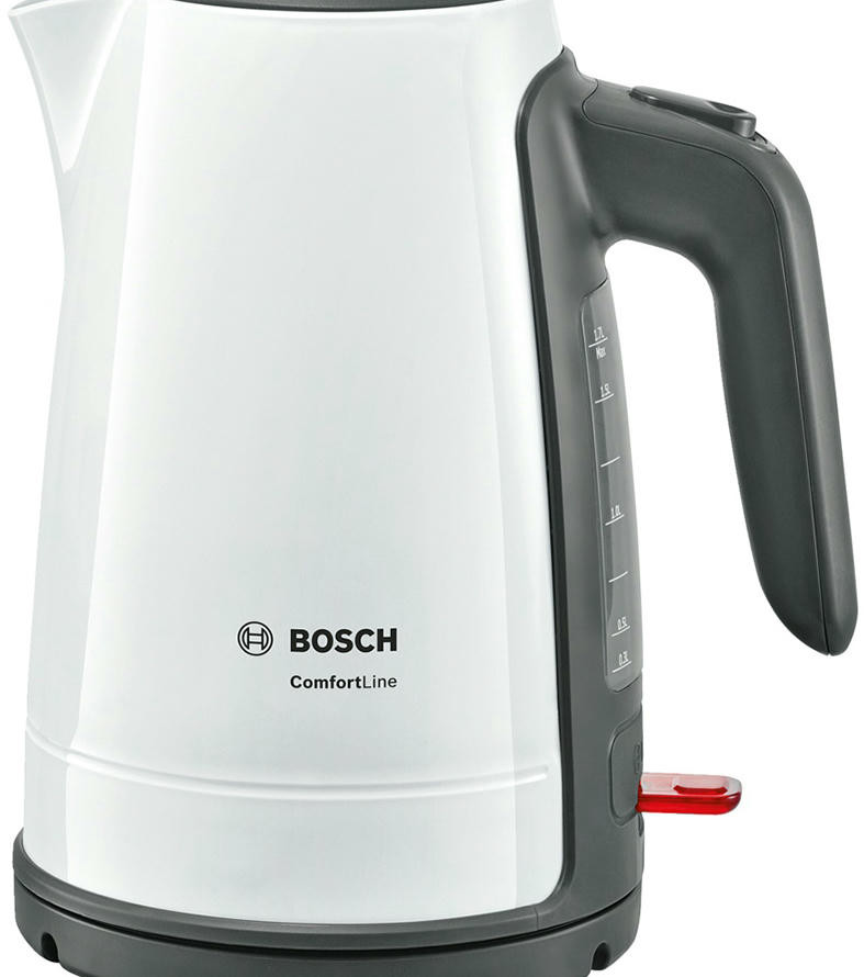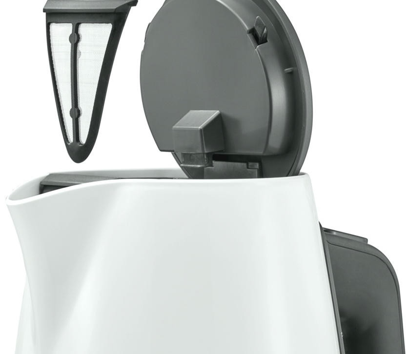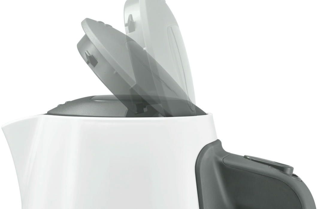 Чайник Bosch TWK 6A011 автоматически прекращает работу при отсутствии воды и при перегреве, гарантируя безопасное использование. Крышка открывается нажатием на кнопку, поэтому наполнить чайник водой можно, держа его в одной руке.