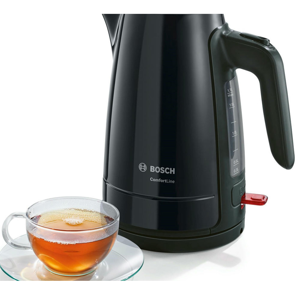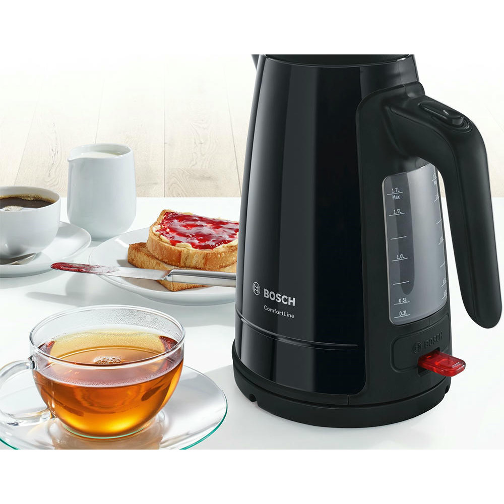 Чайник Bosch TWK 6A013 со встроенным фильтром из нержавеющей стали, который препятствует попаданию накипи в чашку. Световой индикатор оповестит о работе устройства. Защита от перегрева обеспечивает безопасность при эксплуатации, выключая прибор без воды.