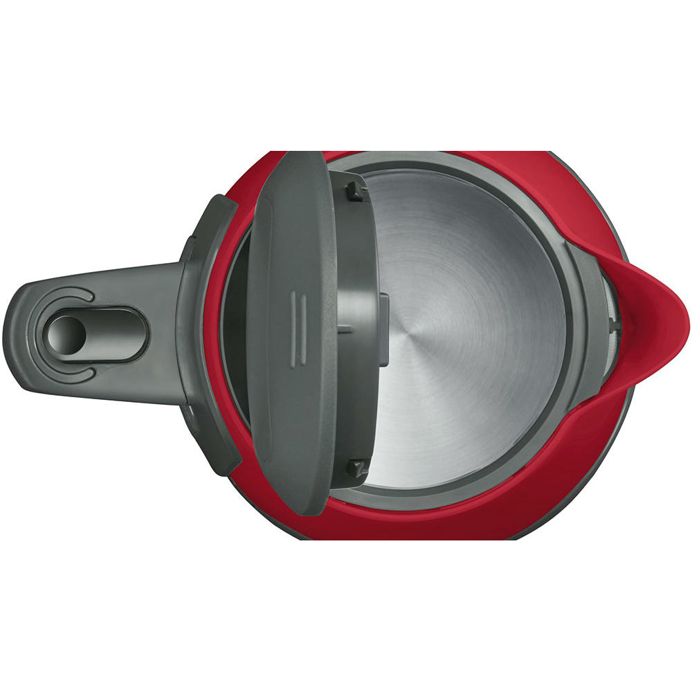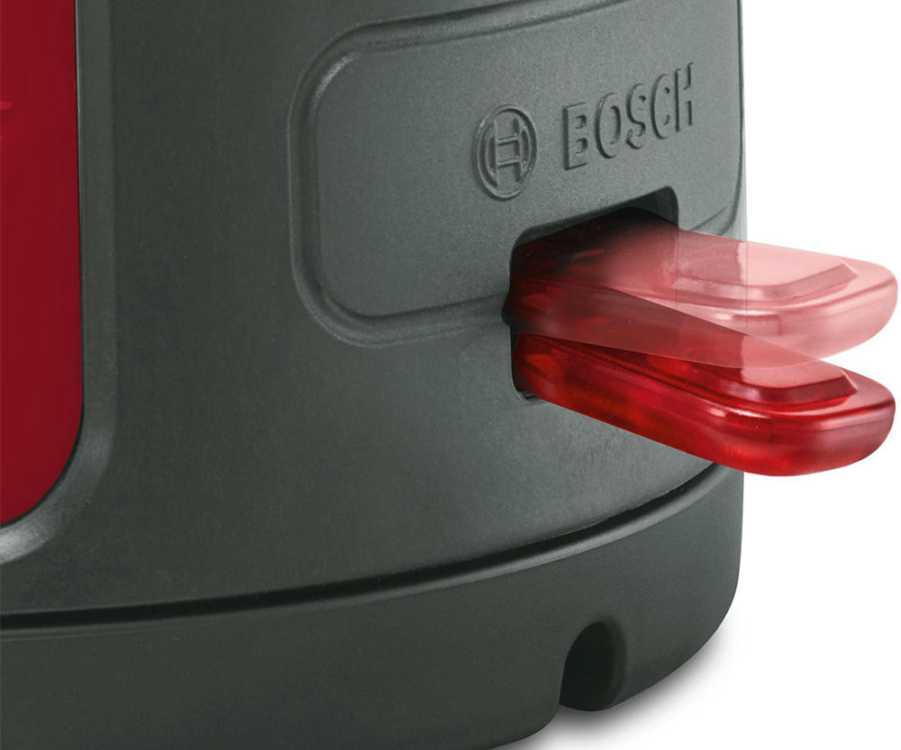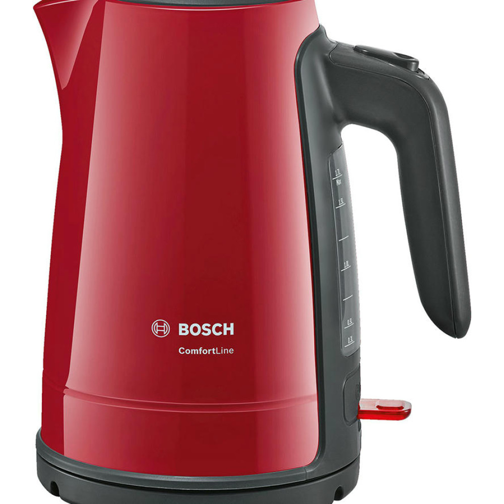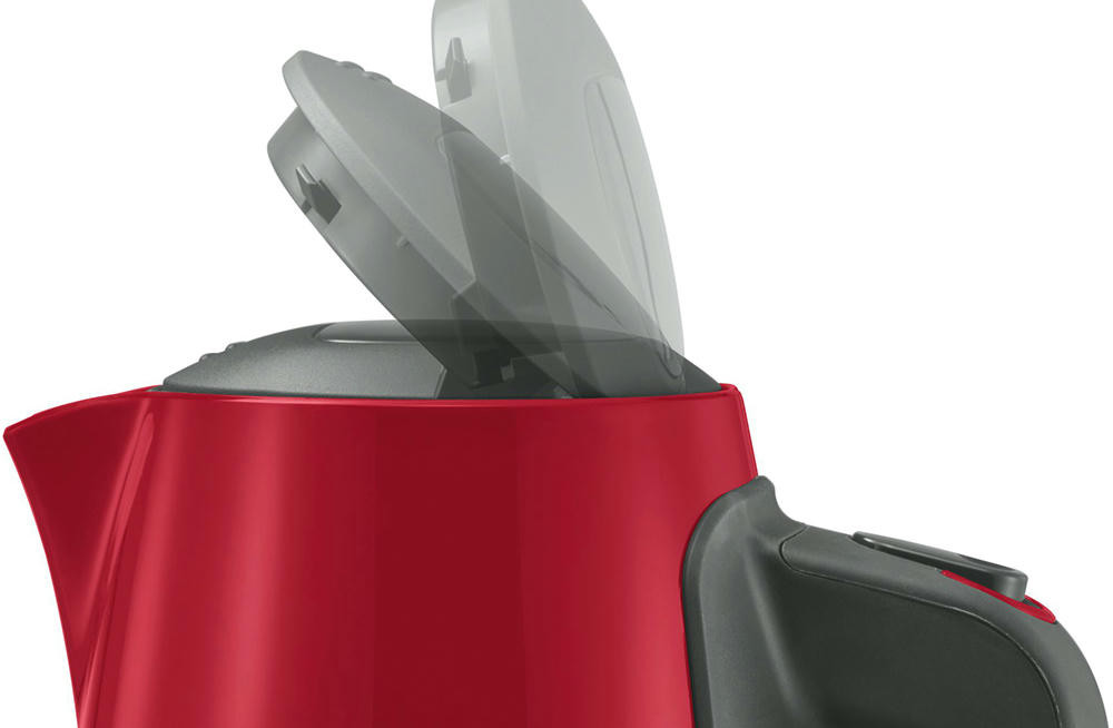 Чайник Bosch TWK 6A014 оснащен крышкой, которая открывается автоматически одним нажатием кнопки. Защита от перегрева автоматически отключает прибор без воды или, если уровень жидкости слишком низкий. Фильтр в носике прибора не даст попасть накипи в чашку.