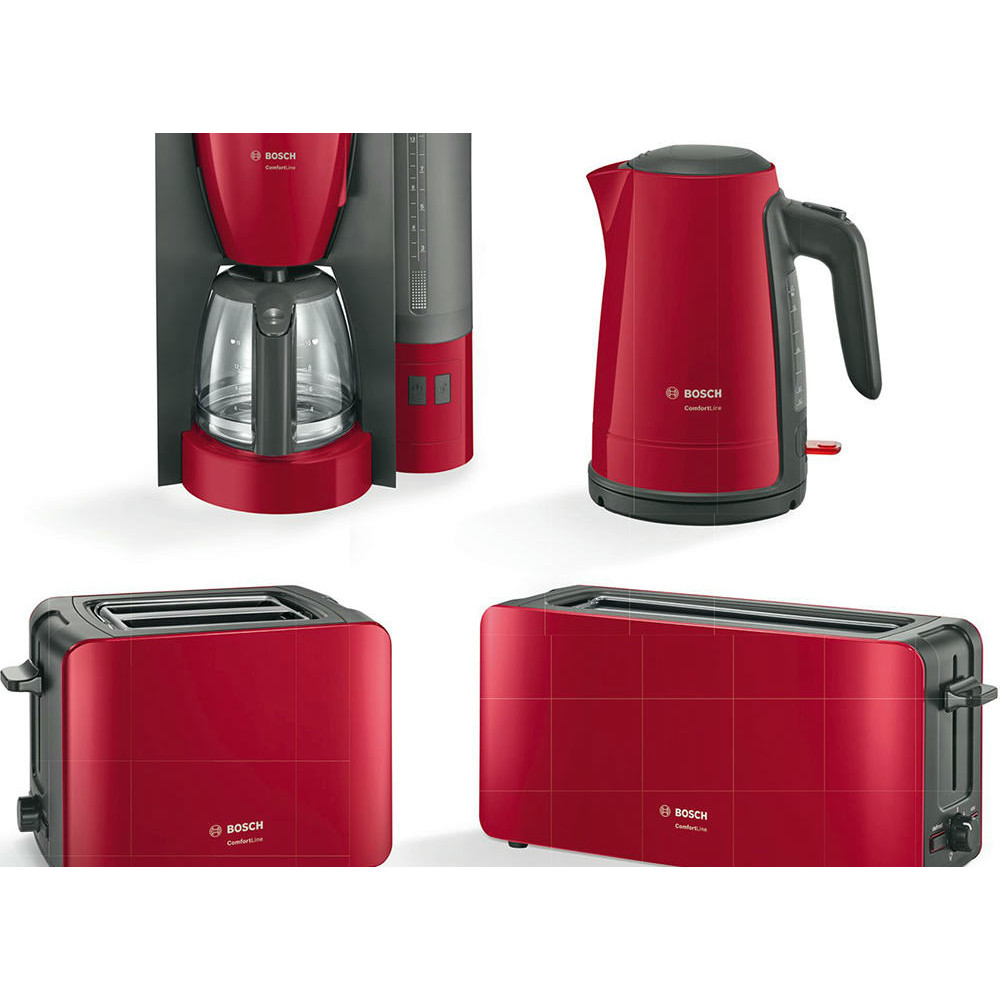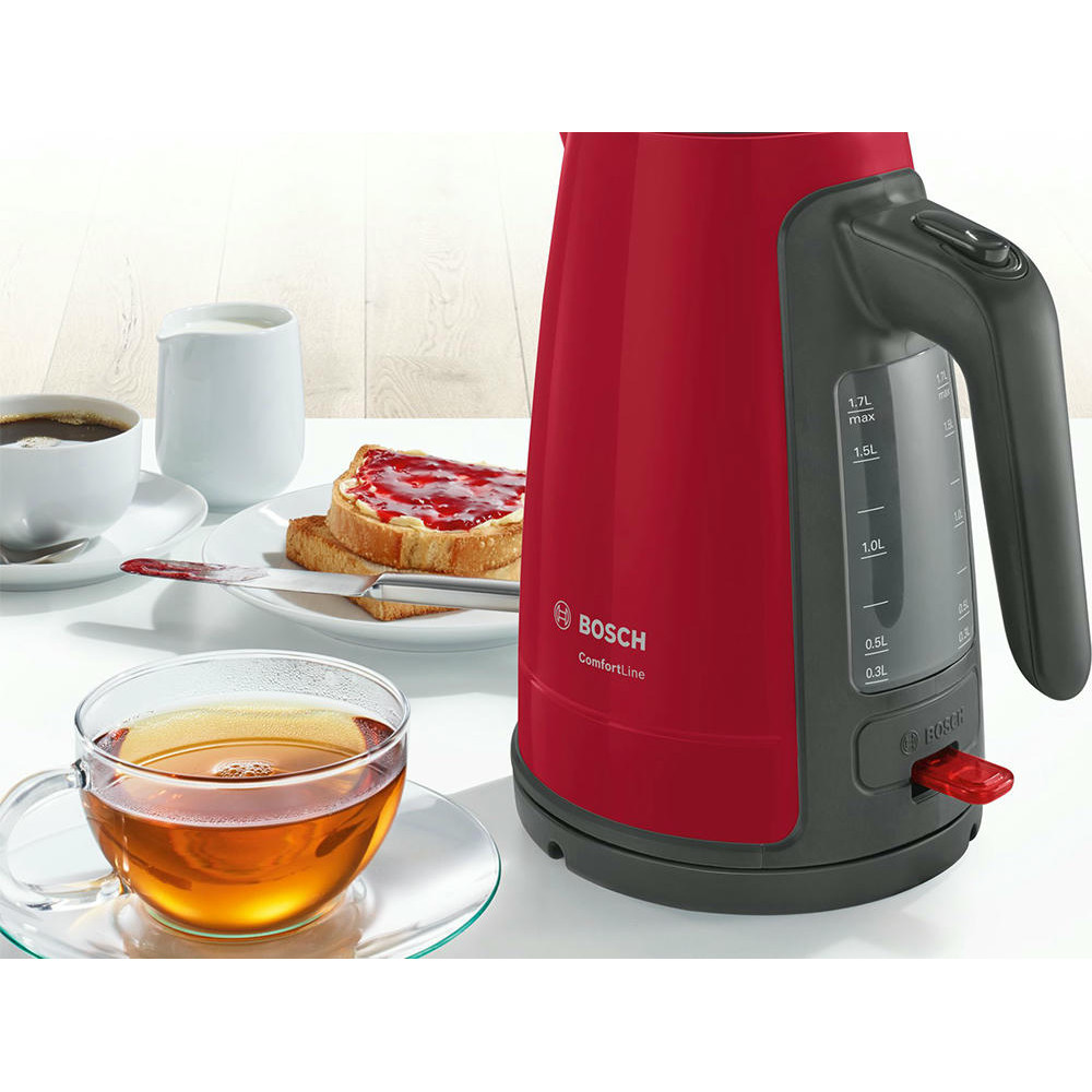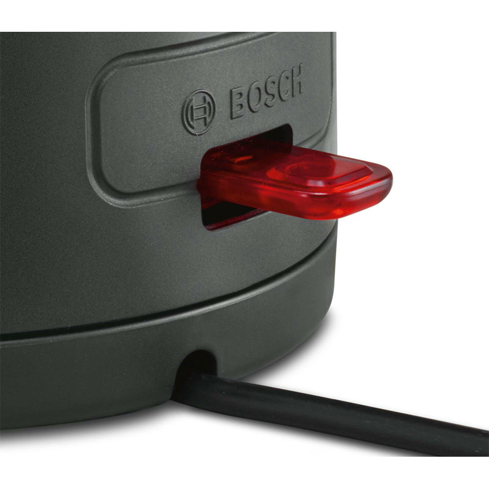 Чайник Bosch TWK 6A014 оснащен крышкой, которая открывается автоматически одним нажатием кнопки. Защита от перегрева автоматически отключает прибор без воды или, если уровень жидкости слишком низкий. Фильтр в носике прибора не даст попасть накипи в чашку.