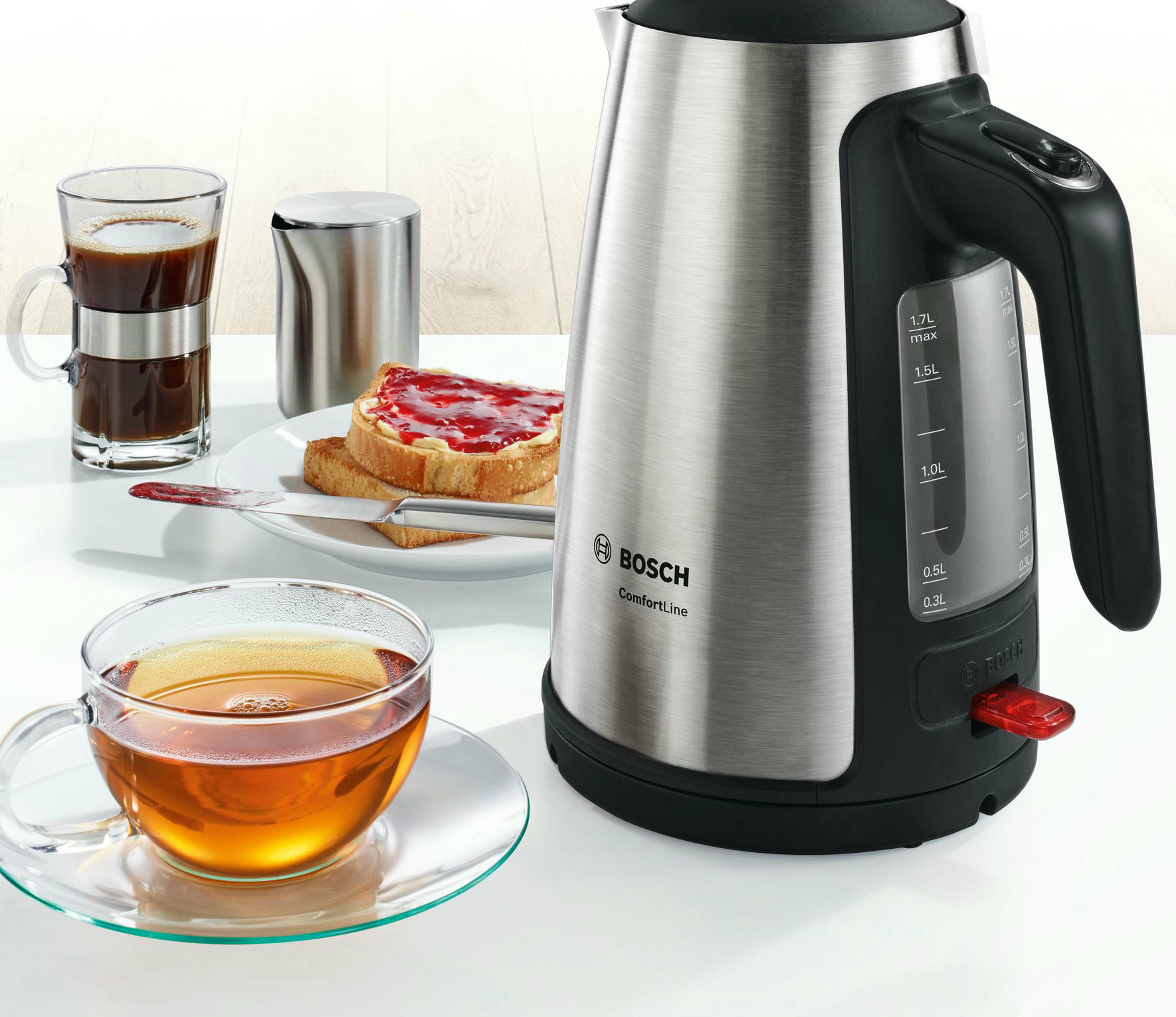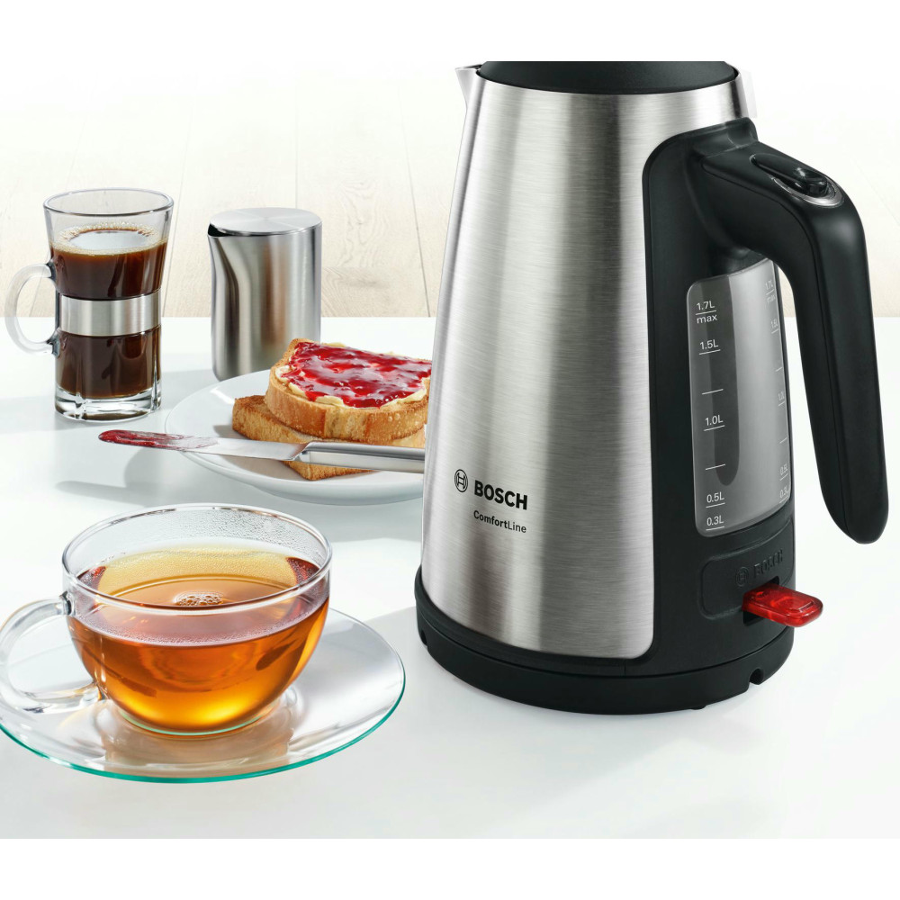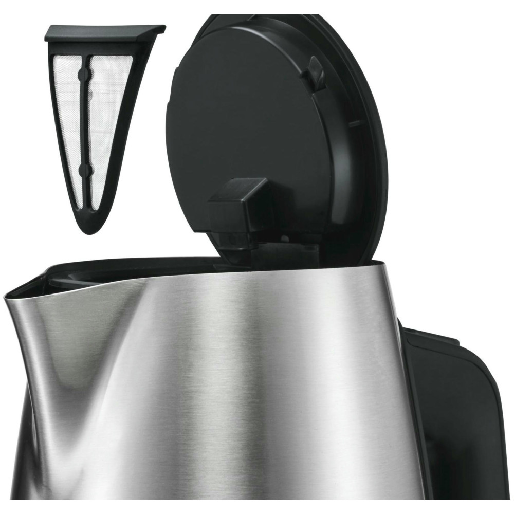 Чайник Bosch TWK 6A813 c фильтром от накипи, который очищает воду от загрязнений. Расположен в носике и легко изымается для очистки. Трехуровневая защита от перегрева обеспечивает безопасность при эксплуатации модели