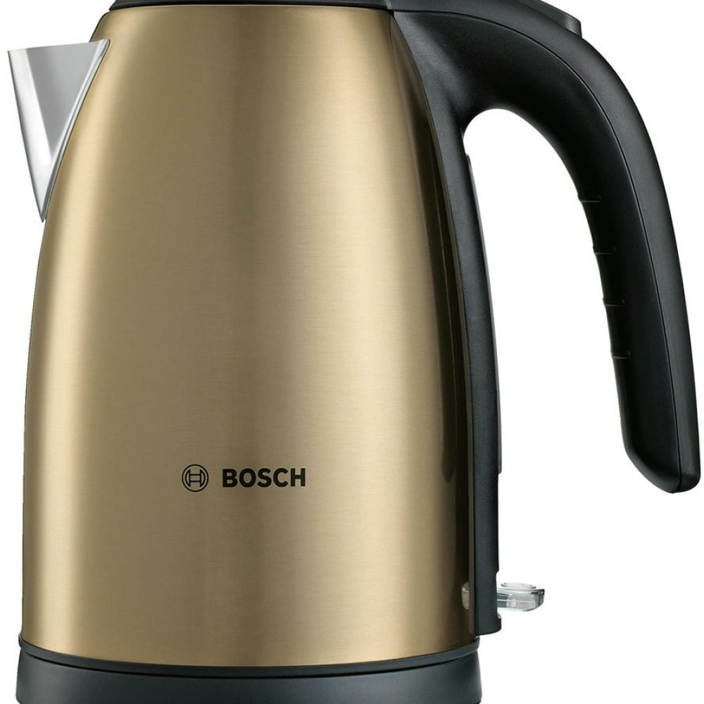 Электрический чайник Bosch TWK 7808 в золотом цвете с элегантным дизайном корпуса оснащен эргономичной ручкой. Скрытый нагревательный элемент — преимущество модели. Закрытая спираль позволяет с легкостью вымыть прибор изнутри. Автоматическое отключение происходит при закипании и снятии с цоколя.