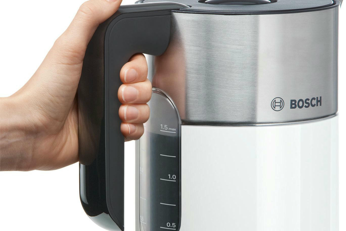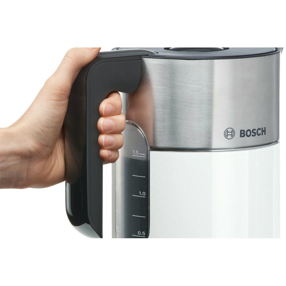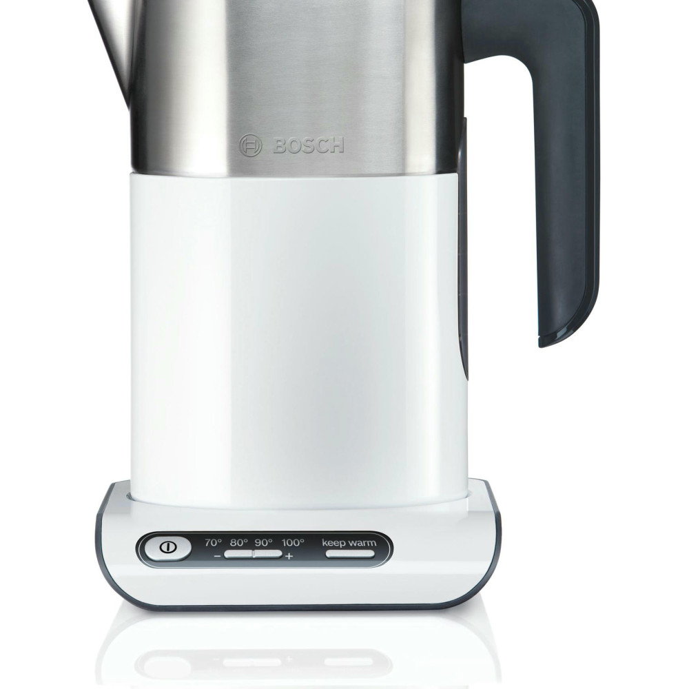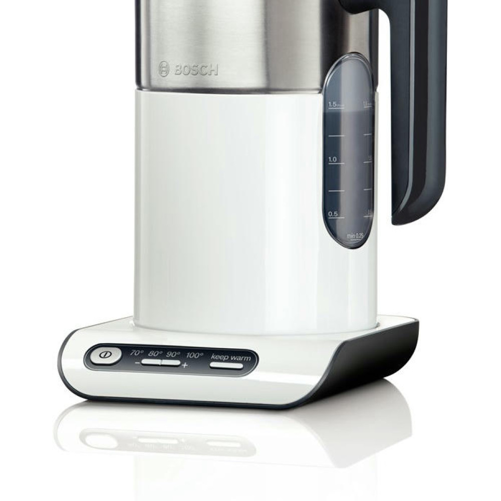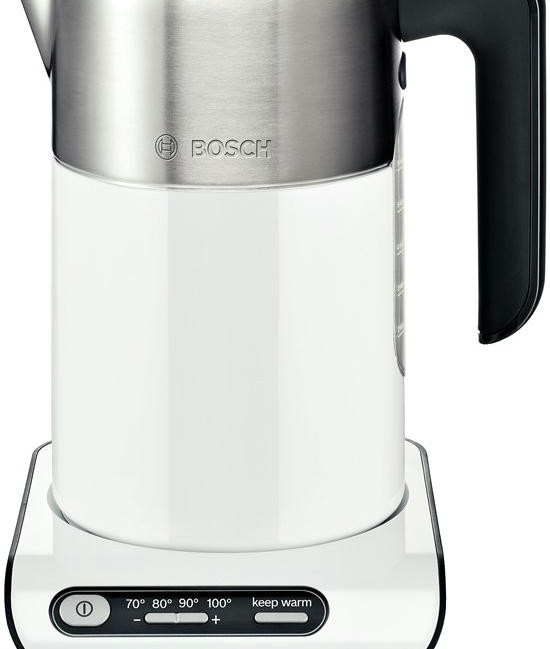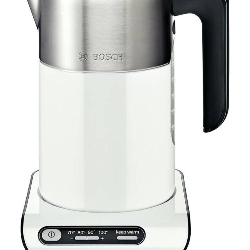 Чайник Bosch TWK 8611 из дизайн-линейки Styline — это образец эффективности и стиля. Белый корпус смотрится свежо и актуально. Он дополнен элементами из нержавеющей стали. Само изделие относится к электрическим с термоподставкой. Это удачное приобретение домой и в офис.