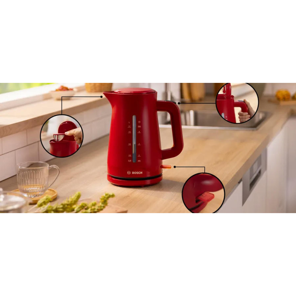 Чайник Bosch TWK3M124 – это надежный и функциональный помощник на вашей кухне. Стильный дизайн в темно-красном цвете идеально впишется в любой интерьер, а высококачественный ABS пластик корпуса гарантирует долговечность и безопасность использования. Этот чайник объемом 1.7 литра с закрытой спиралью нагревательного элемента будет быстро и эффективно нагревать воду, что особенно важно в быту. Важной особенностью чайника Bosch TWK3M124 является наличие режима подогрева. Это очень удобно, если вы хотите поддерживать определенную температуру воды в течение некоторого времени. Кроме того, наличие индикации включения и индикатора уровня воды делает процесс использования чайника еще более комфортным и простым.