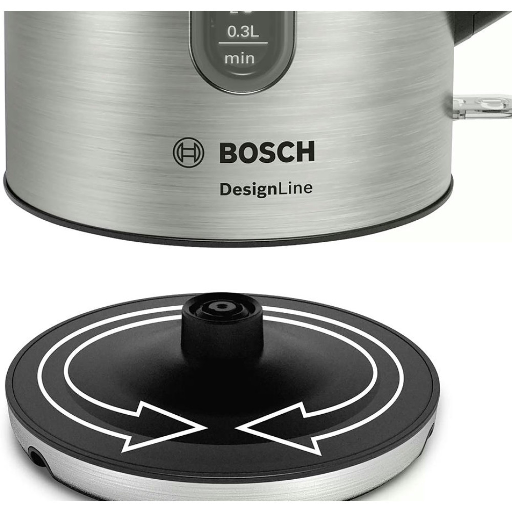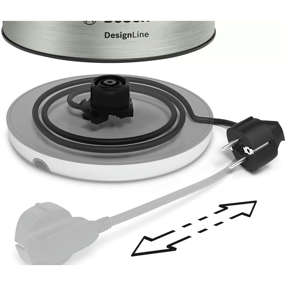 Электрический чайник Bosch TWK4P440 оснащен световой индикацией работы, которая оповестит о том, что прибор включен. Антискользящий цоколь с поворотом на 360 градусов позволяет расположить устройство на любой поверхности.
