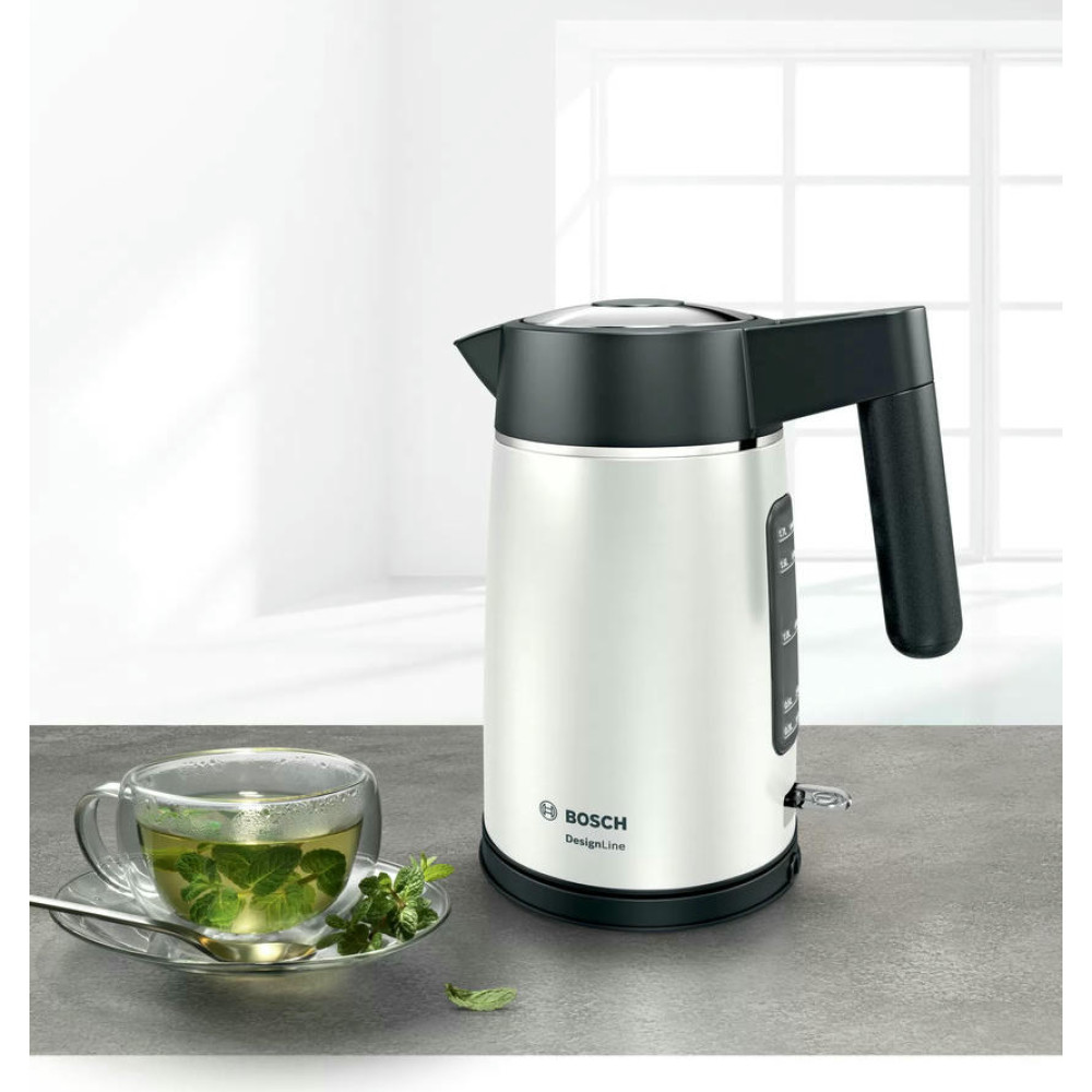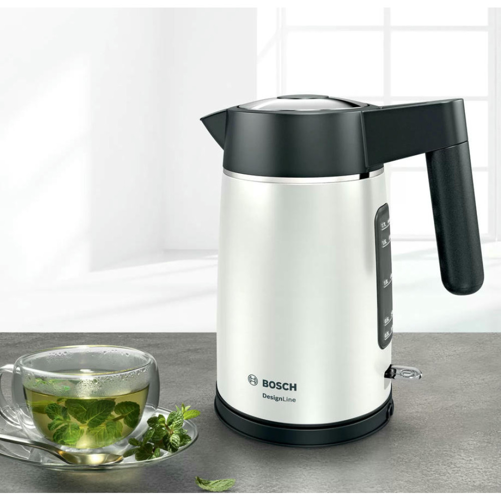 Чайник Bosch TWK5P471 оснащен индикатором на корпусе в виде чашек, это очень удобно вы знаете на сколько стаканов воды вам хватит. Имеется фильтр, накипь не попадет в ваш чай, и не испортит вкус. Устройство будет нагреваться вне зависимости, как вы его поставите, базовая станция с поворотом 360 градусов.