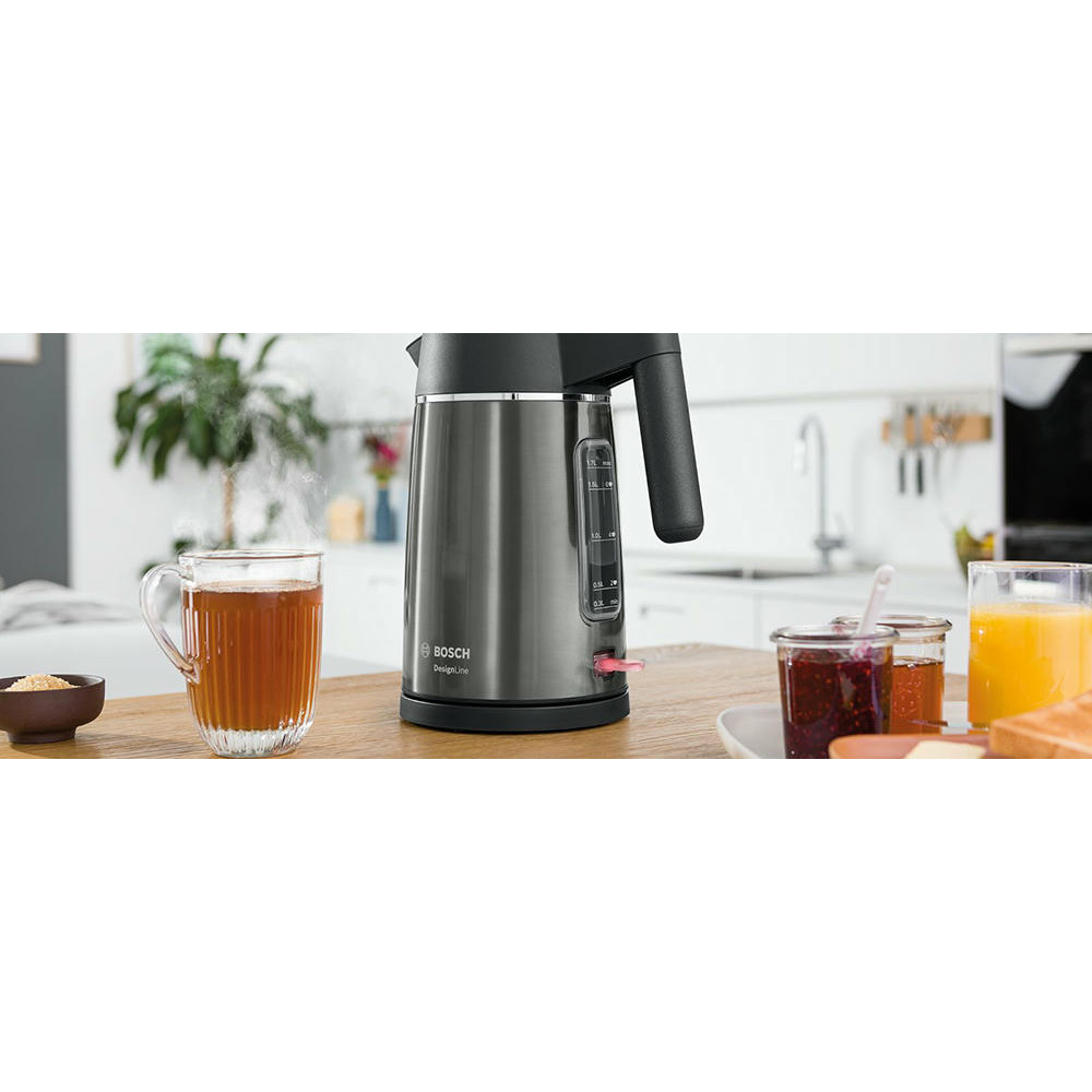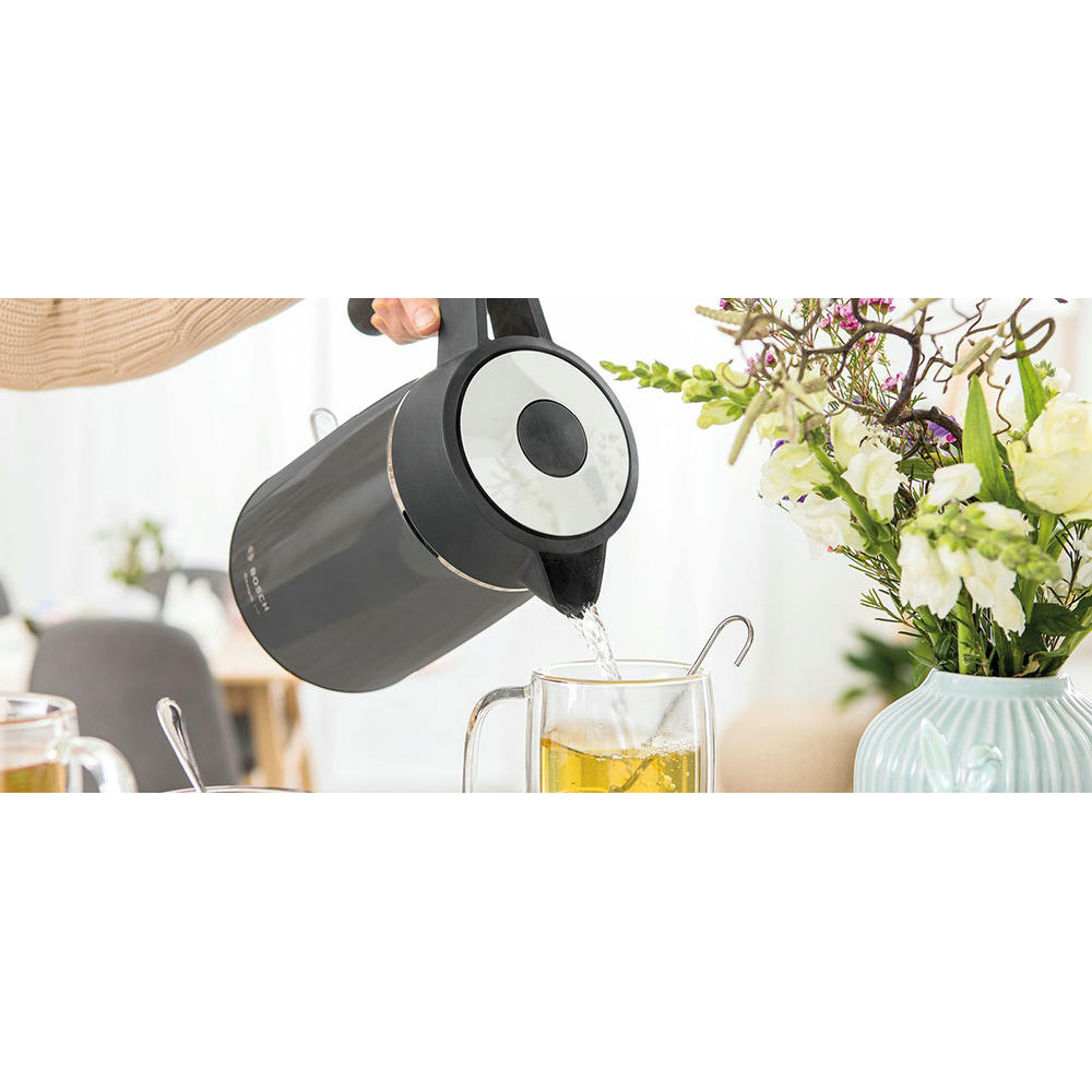Электрический чайник Bosch TWK5P475 оснащен скрытом нагревательном элементом. что позволяет без труда отмыть прибор изнутри. Интуитивно понятный индикатор уровня жидкости. При закипании прибор автоматически выключается, что гарантирует безопасность и удобство.
