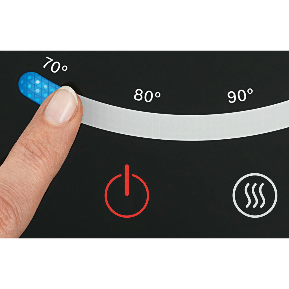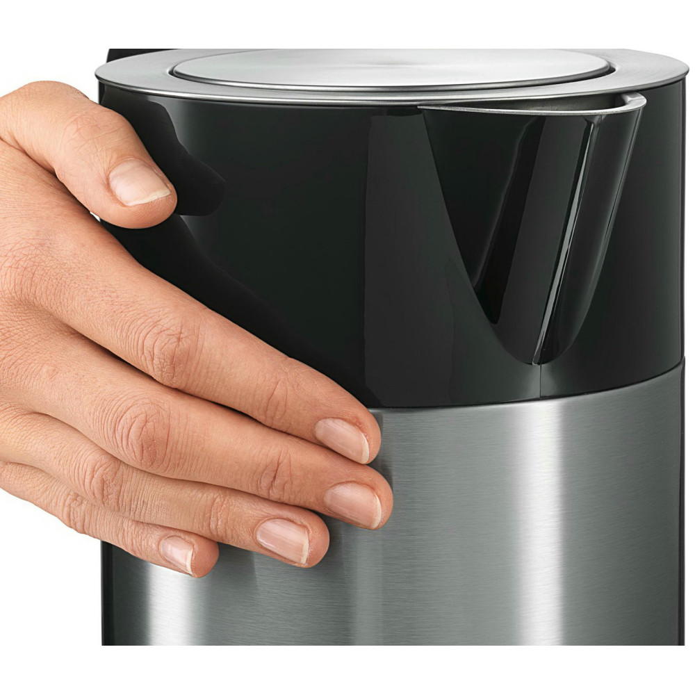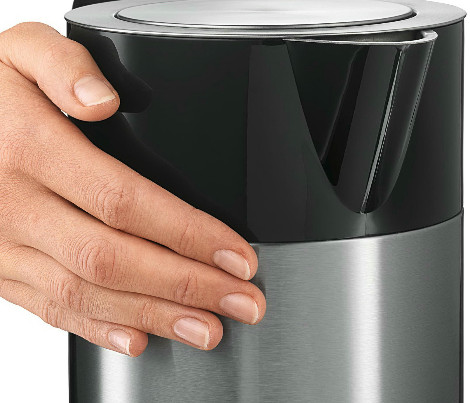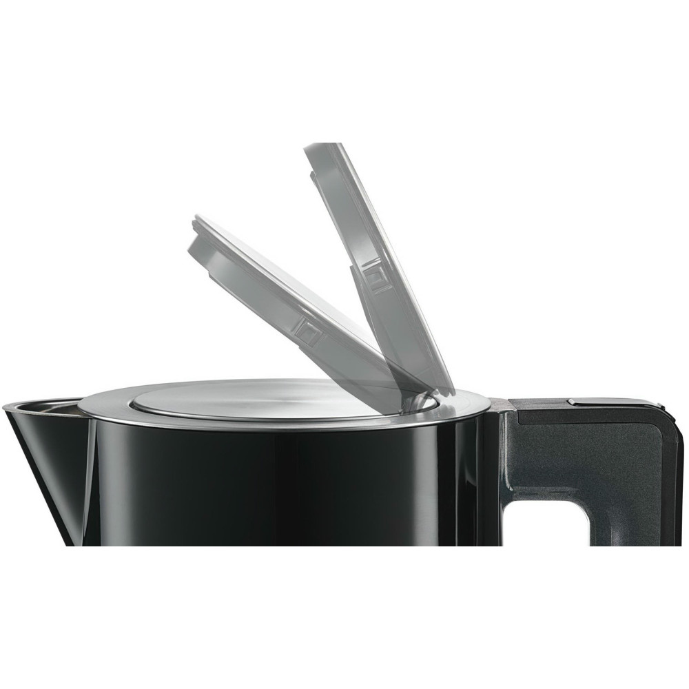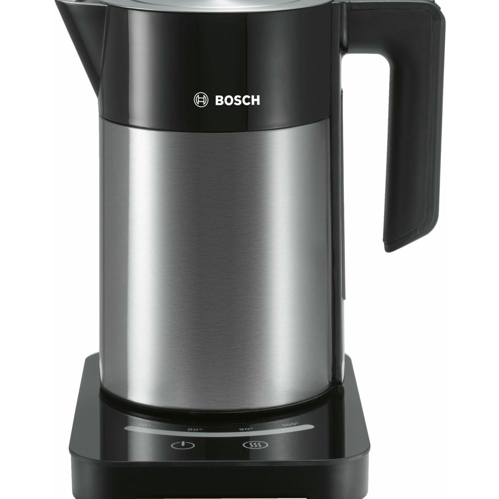 Чайник Bosch TWK7203 имеет корпус из нержавеющей стали. Управление производится при помощи сенсорных кнопок на подставке. Подсветка выделяет семь уровней нагрева от 70 до 100°C, для выбора достаточно легкого прикосновения. Функция KeepWarm поддерживает заданную температуру воды в течение 30 минут.