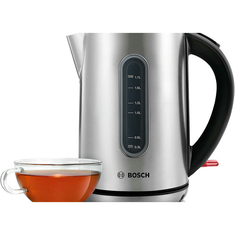 Электрический чайник Bosch TWK79B05 оснащен мощным мотором на 2200 Вт, что позволит вскипятить воду за считанные минуты. Автоматическое отключение срабатывает при закипании воды и снятии с цоколя. Пластиковый фильтр от накипи легко извлечь для чистки и поместить обратно.
