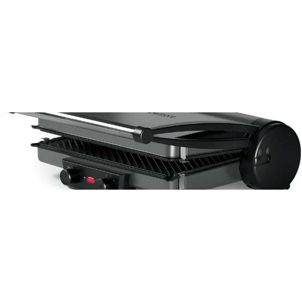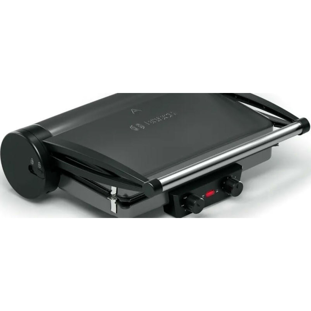 Гриль Bosch TCG4215 оснащен тремя позициями нагревающих поверхностей, что позволяет выбрать наиболее подходящий режим для каждого блюда. Закрытая позиция идеальна для контактного гриля, а открытая с фиксацией на определенном расстоянии позволяет запекать продукты между поверхностями. Мощность устройства составляет 2000 Вт, что обеспечивает быстрый и равномерный нагрев. Плавный терморегулятор с опцией вкл/выкл позволяет точно контролировать температуру приготовления, что делает процесс готовки более удобным и простым.