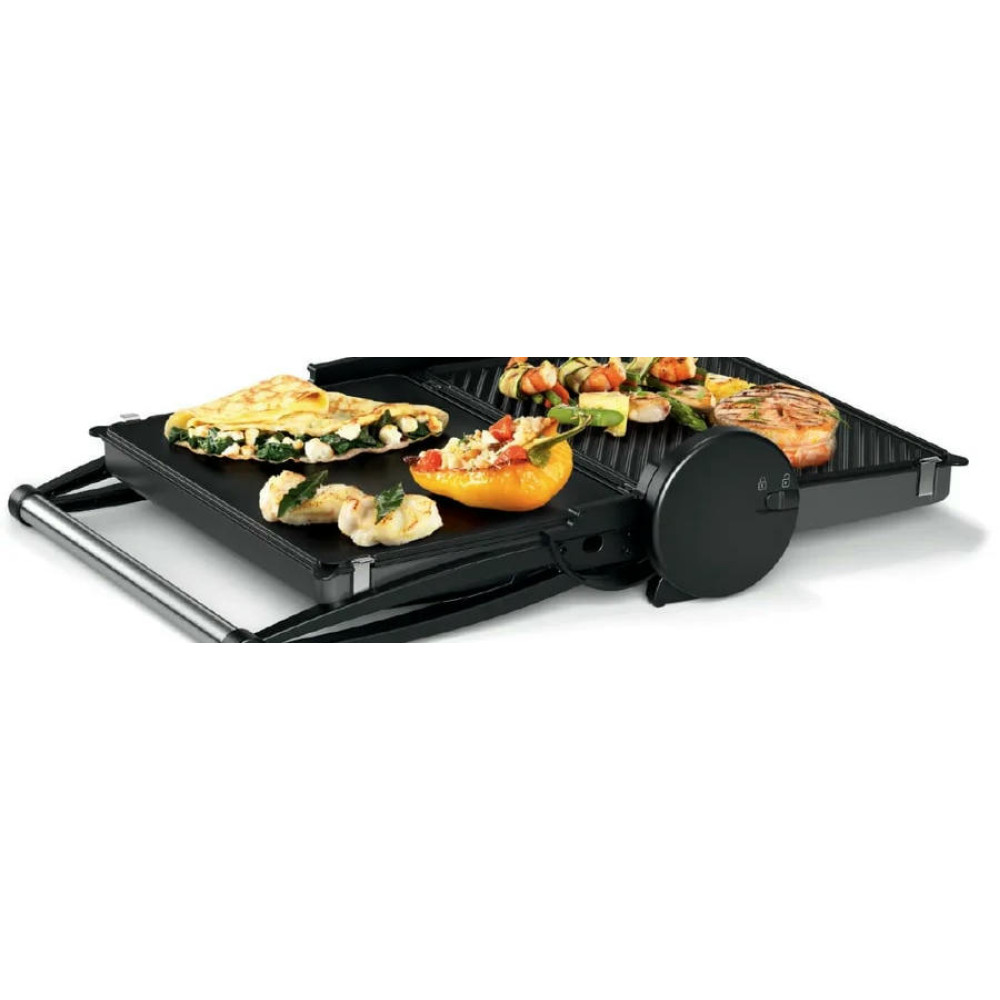 Гриль Bosch TCG4215 - это высококачественное устройство для приготовления разнообразных блюд, которое сочетает в себе функциональность, удобство и стильный дизайн. Элегантный черный цвет гриля делает его универсальным дополнением к любому интерьеру кухни. Он не только функционален, но и стильно выглядит, благодаря своему современному и минималистичному дизайну.