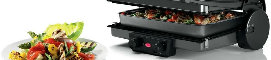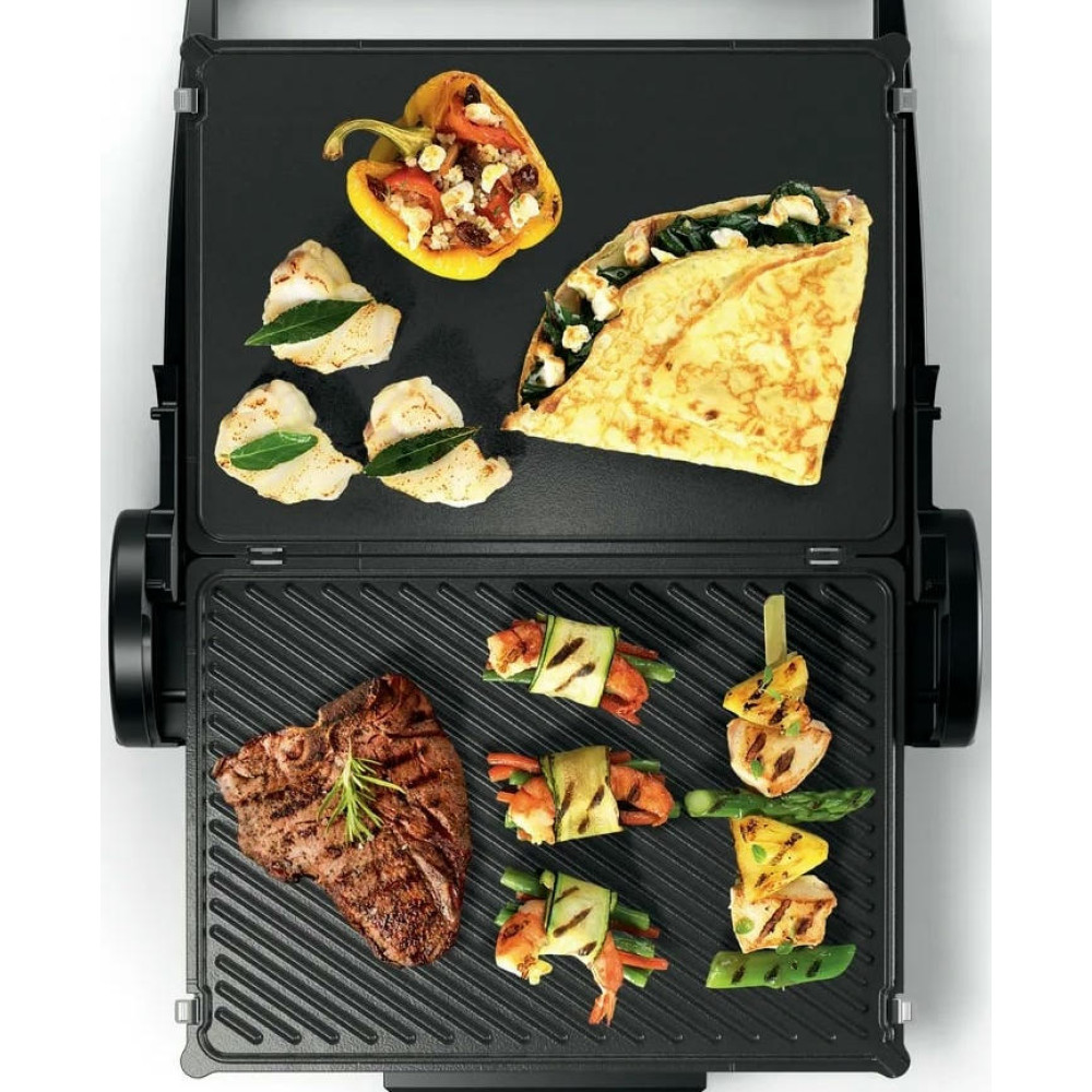 Важной особенностью гриля являются съемные алюминиевые пластины с антипригарным покрытием. Они легко моются в посудомоечной машине, что значительно упрощает процесс уборки после приготовления пищи. Большая контактная поверхность пластин (328 x 238 мм) позволяет приготовить достаточное количество пищи за один раз.