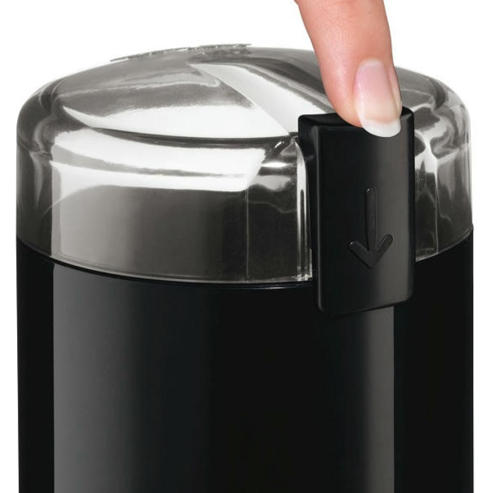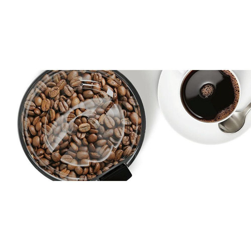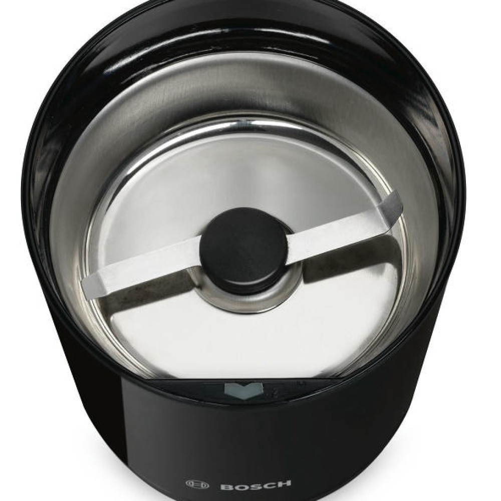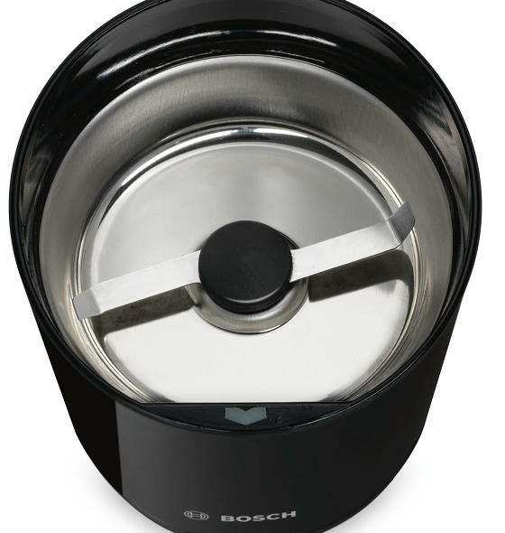 Кофемолка Bosch TSM6A013B со степенью помола — 150 г/мин.Прибор работает только при закрытой крышке, есть аварийное отключение.