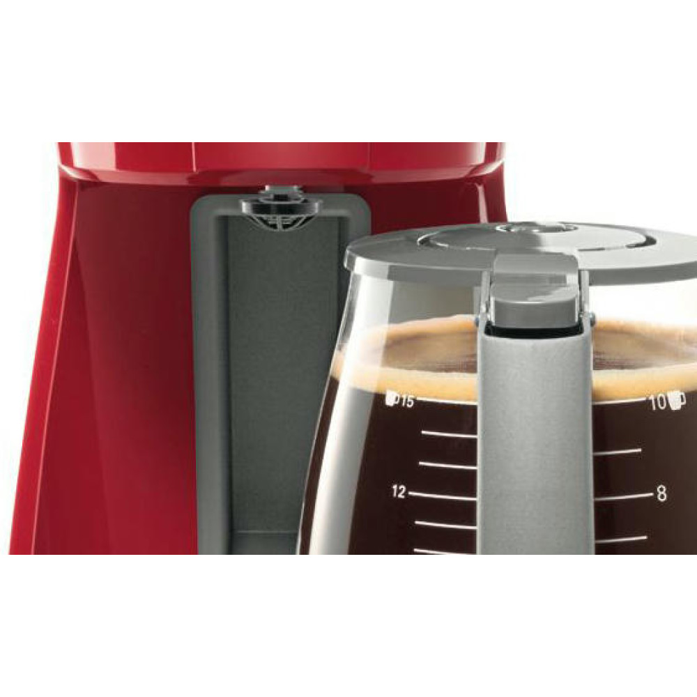 Капельная кофеварка Bosch TKA 3A034 в красном цвете оснащена платформой для подогрева, что позволяет наливать кофе в теплую посуду, чтобы сохранить его вкус и аромат, или поддерживать температуру напитка в стеклянной емкости.