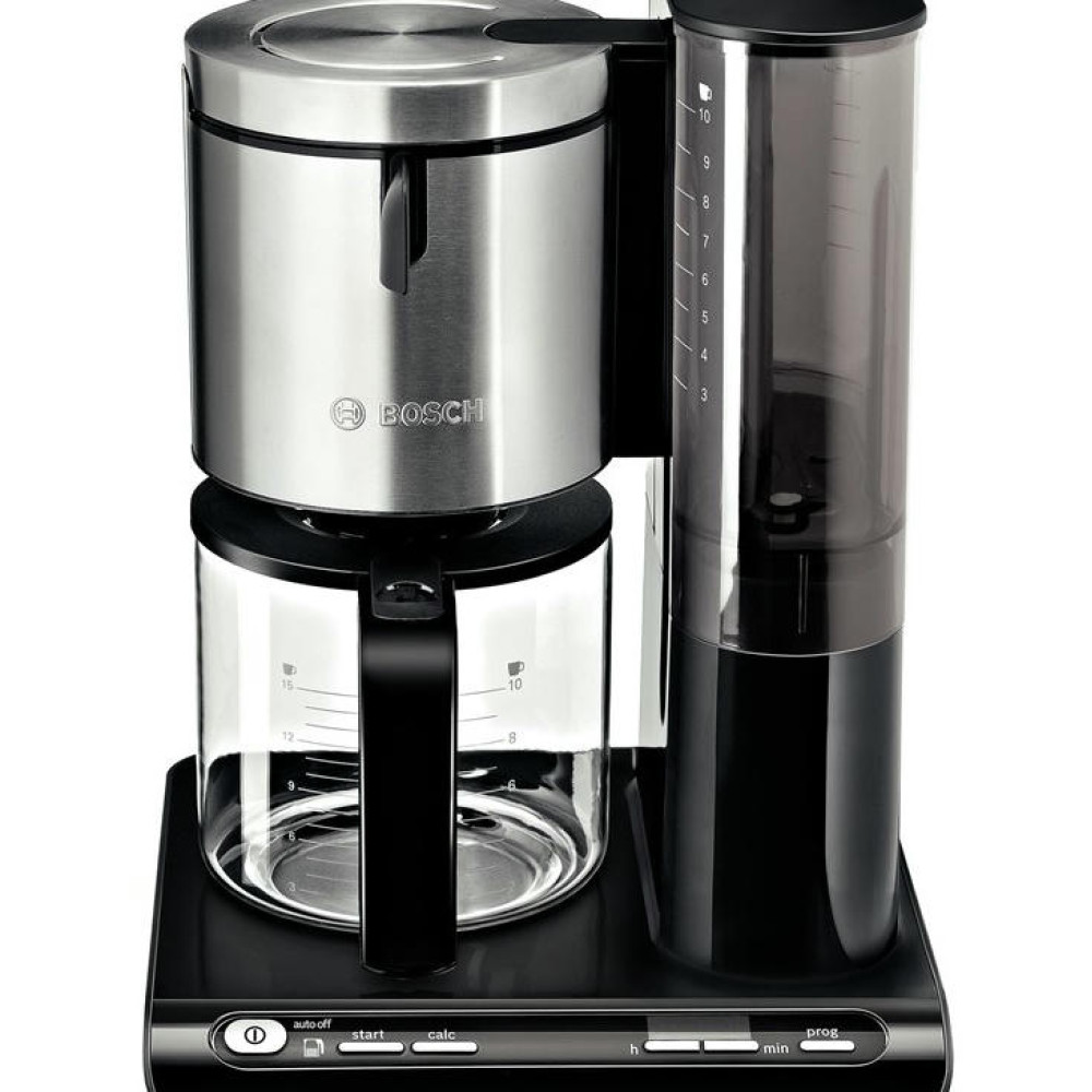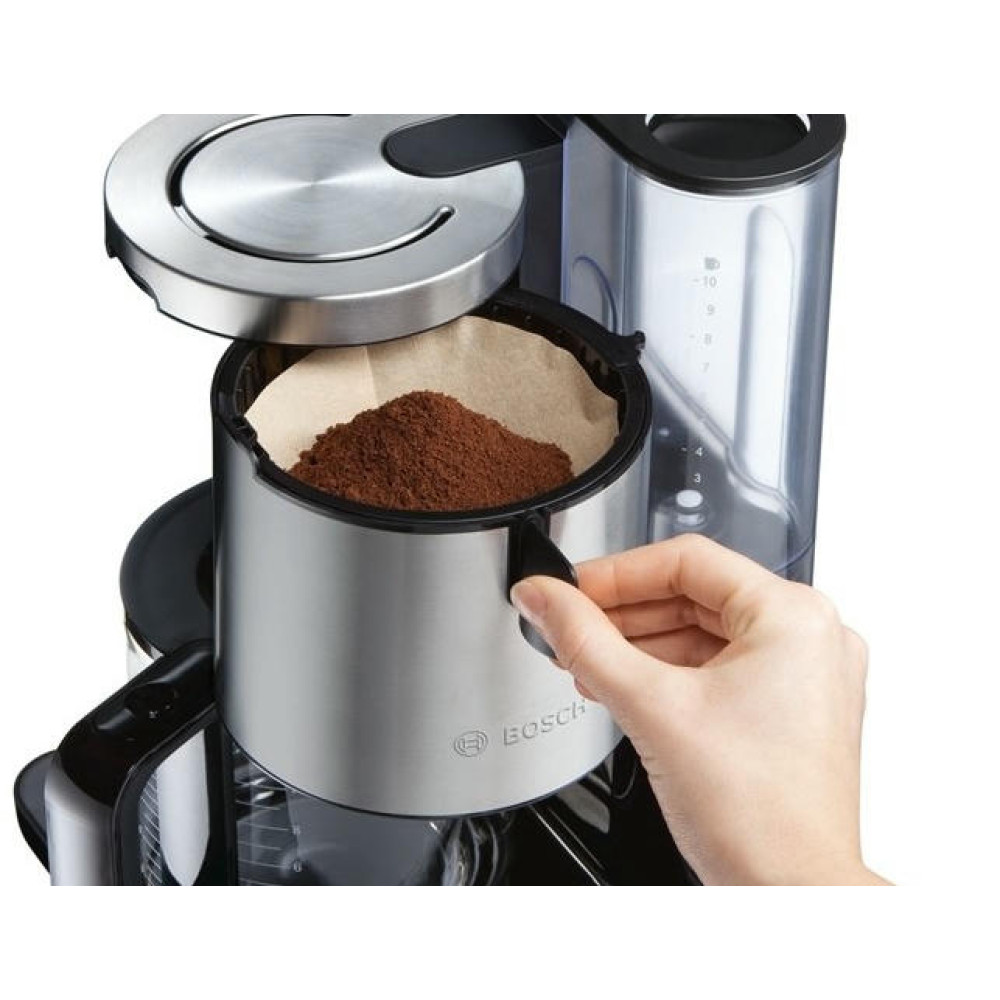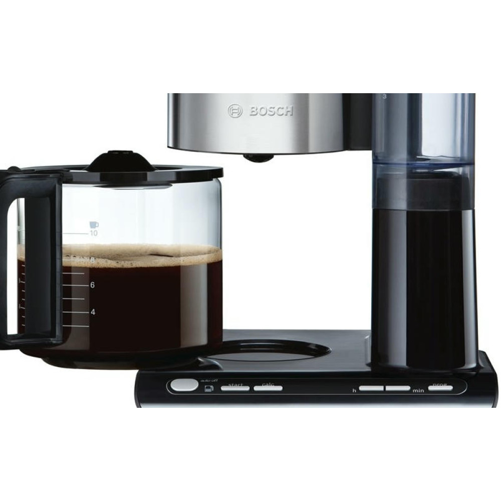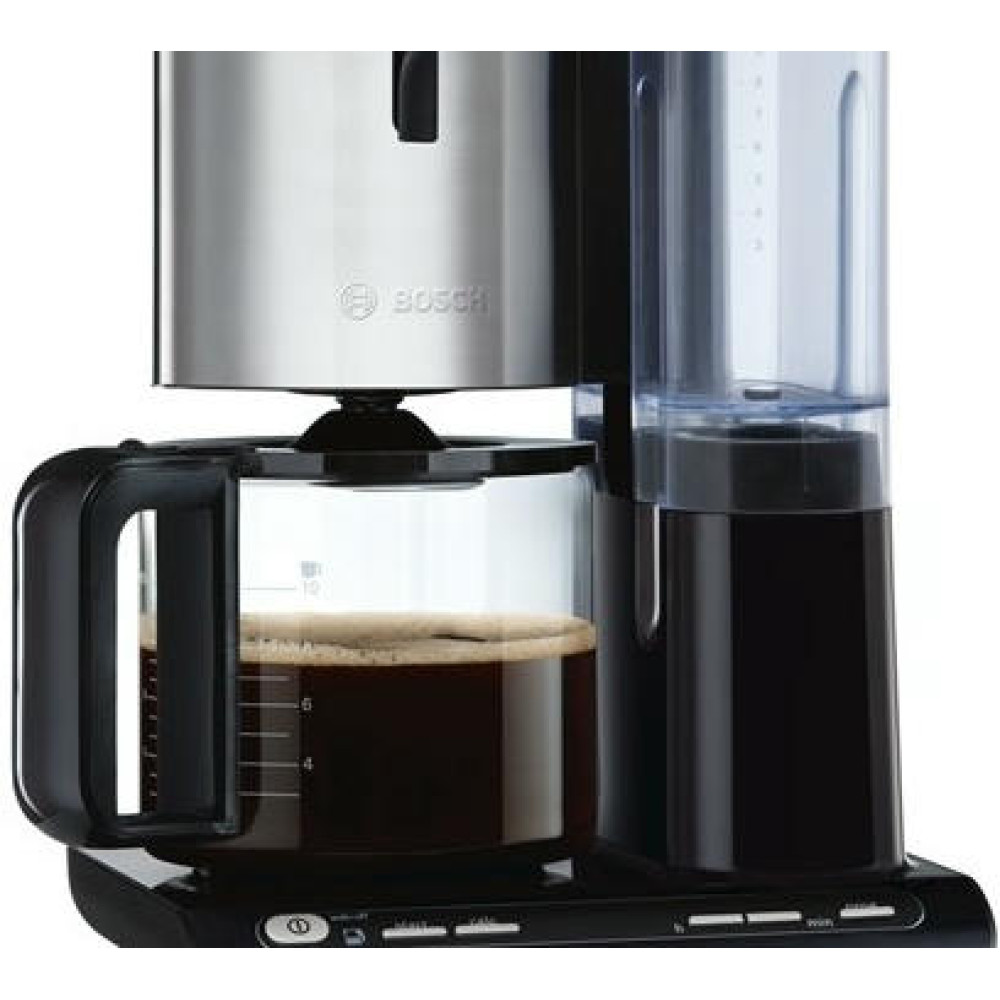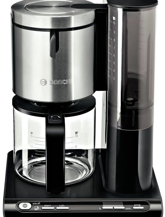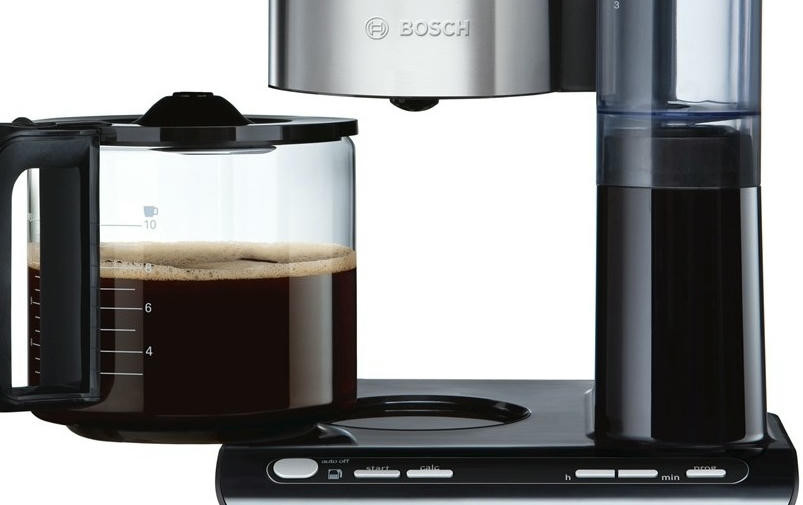 Кофеварка BOSCH TKA 8633 — модель черного цвета с элементами нержавеющей стали. Такая модель занимает одно из первых мест по популярности среди электрических кофеварок, благодаря компактным размерам, небольшой цене и простоте использования.