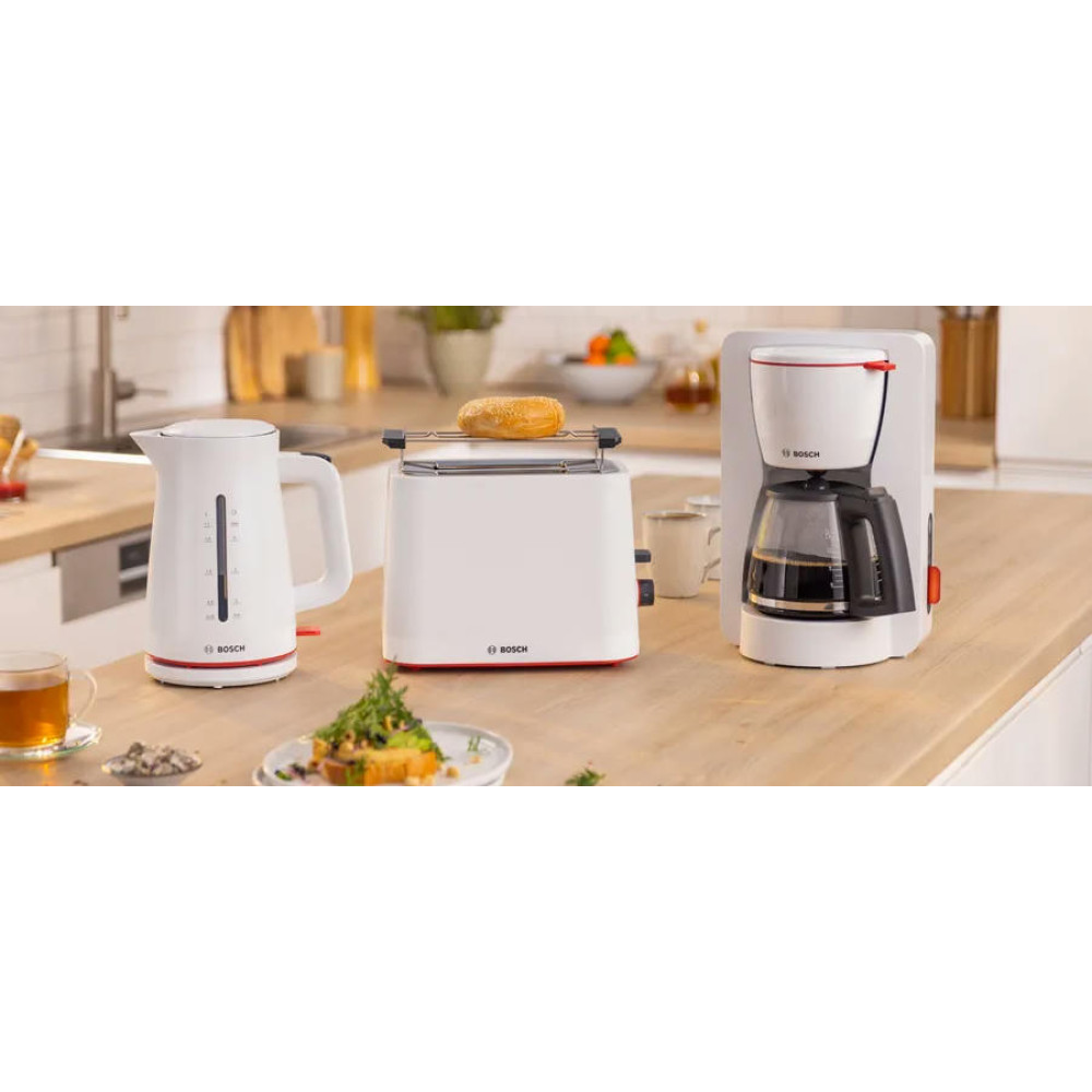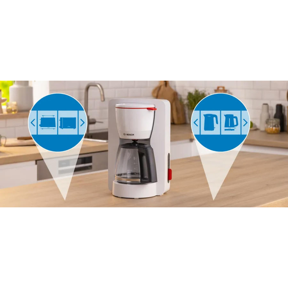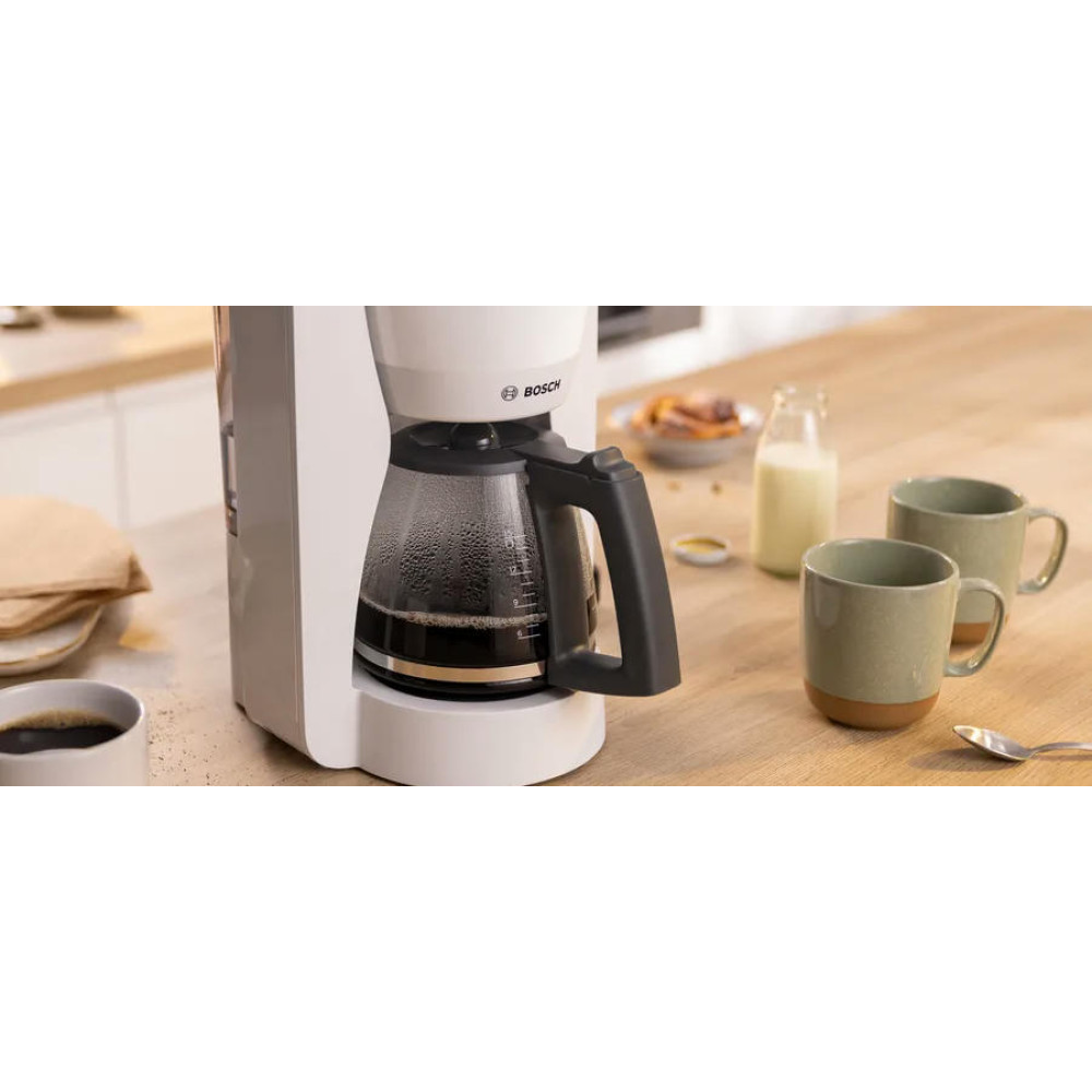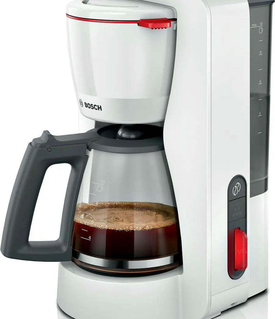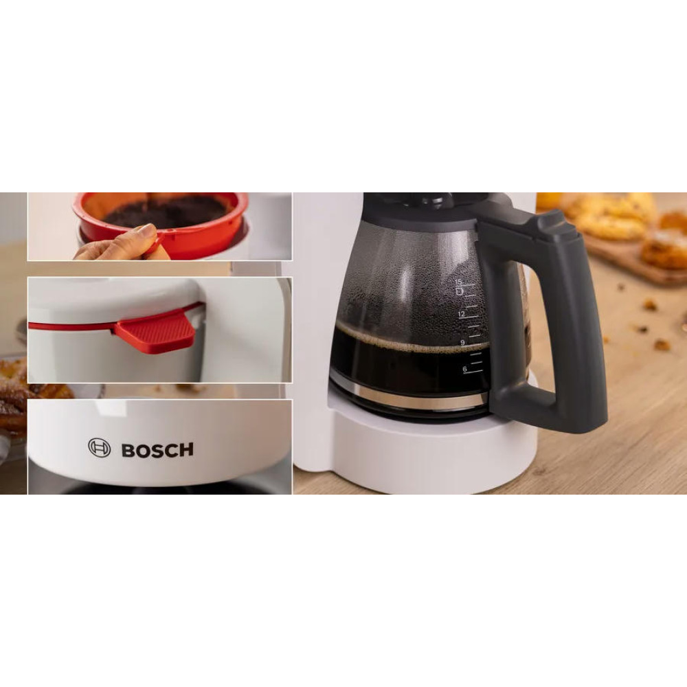 Кофеварка Bosch TKA3M131 - это идеальное устройство для любителей ароматного и вкусного кофе. Стильный белый цвет корпуса из пластика внесет свежий акцент на вашу кухню и подчеркнет ваш изысканный вкус. Устройство предназначено для использования с молотым кофе и способно приготовить до 15 больших или 10 маленьких чашек кофе, что делает его идеальным выбором для больших семей или офисов. Управление кофеваркой осуществляется с помощью кнопок, что делает ее использование простым и удобным. Индикатор включения и индикатор уровня воды помогают контролировать процесс приготовления кофе и обеспечивают безопасность эксплуатации.