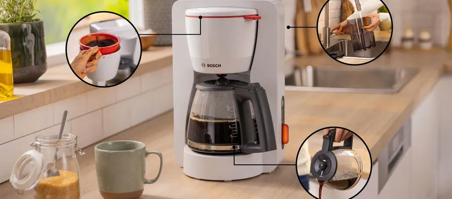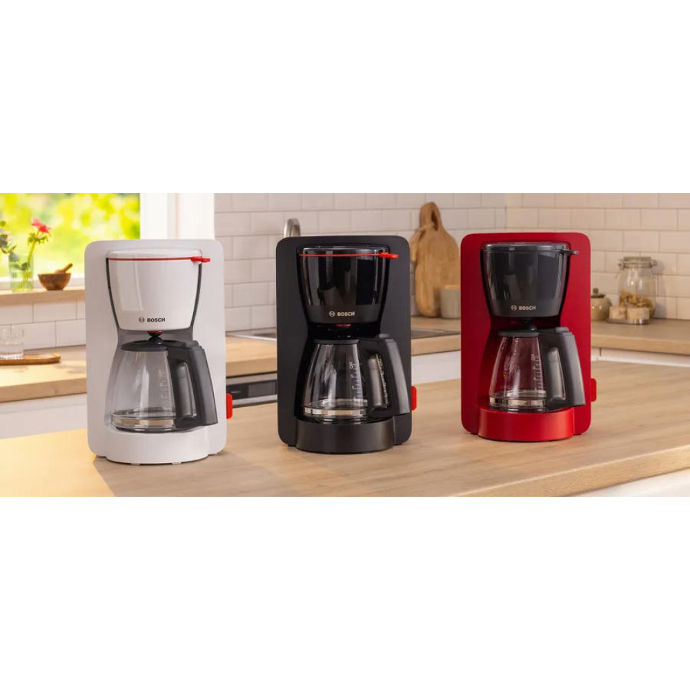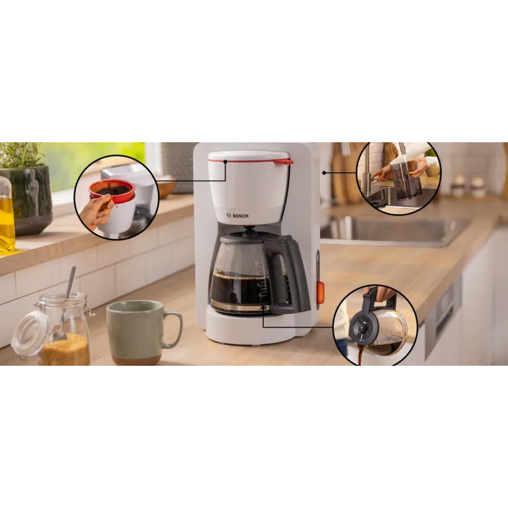 Одним из ключевых преимуществ кофеварки Bosch TKA3M131 является функция Aroma+Button, которая позволяет настроить интенсивность аромата кофе по вашему вкусу. Программа EasyDescale3 обеспечивает простое и эффективное удаление накипи, что продлевает срок службы устройства и обеспечивает более вкусный кофе. Кофеварка также оснащена функцией автоматического отключения через 20, 40 или 60 минут, что помогает экономить энергию и предотвращает перегрев.