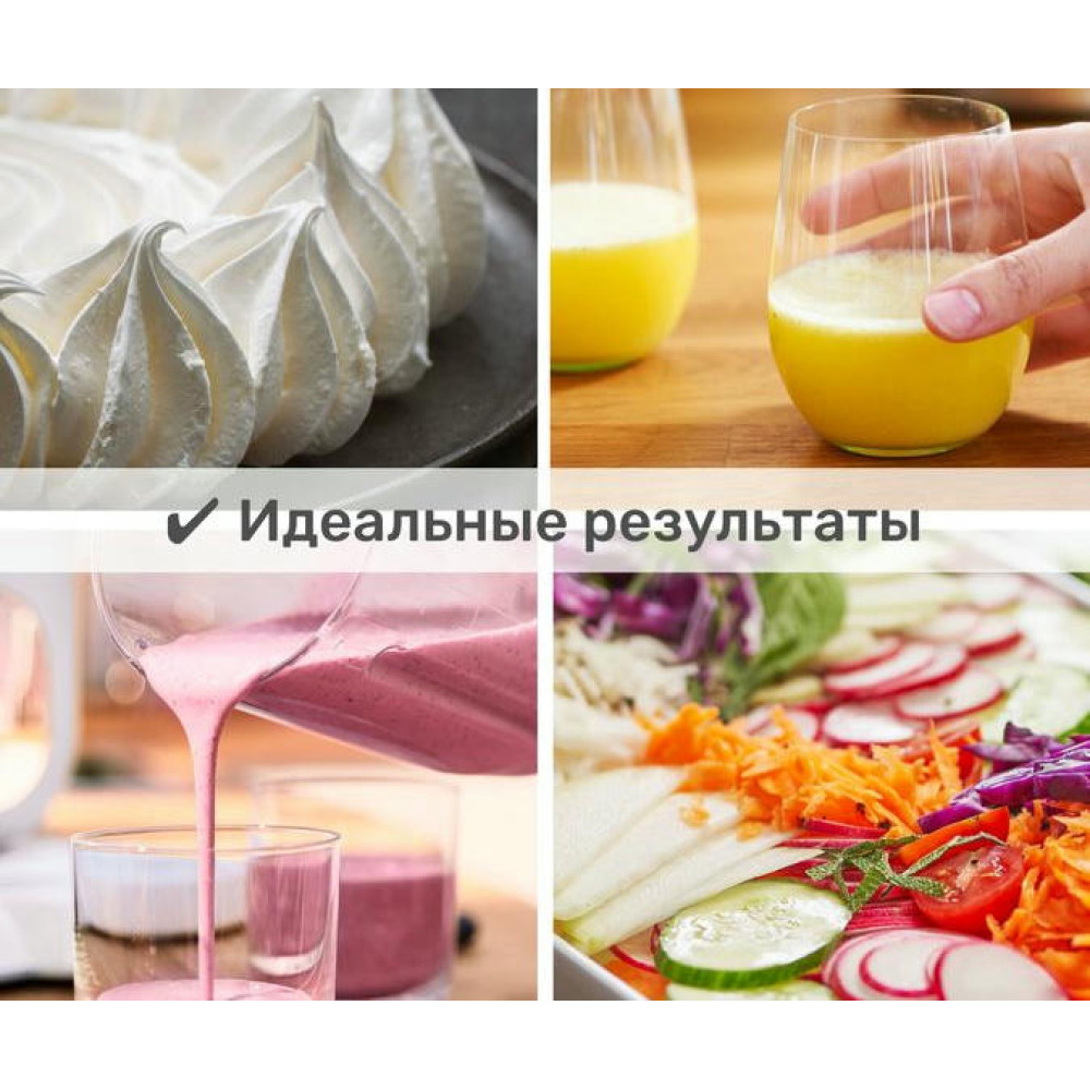 Для каждой задачи есть своя чаша и своя особенная насадка. Последних в комплекте целых 7. Например, с помощью двухстороннего диска можно добиться мелкой и крупной шинковки, имеется для картофеля фри, оладий, нарезки овощей для блюд азиатской кухни. Есть отдельный венчик для взбивания, а также насадка для перемешивания теста и смешивания продуктов.