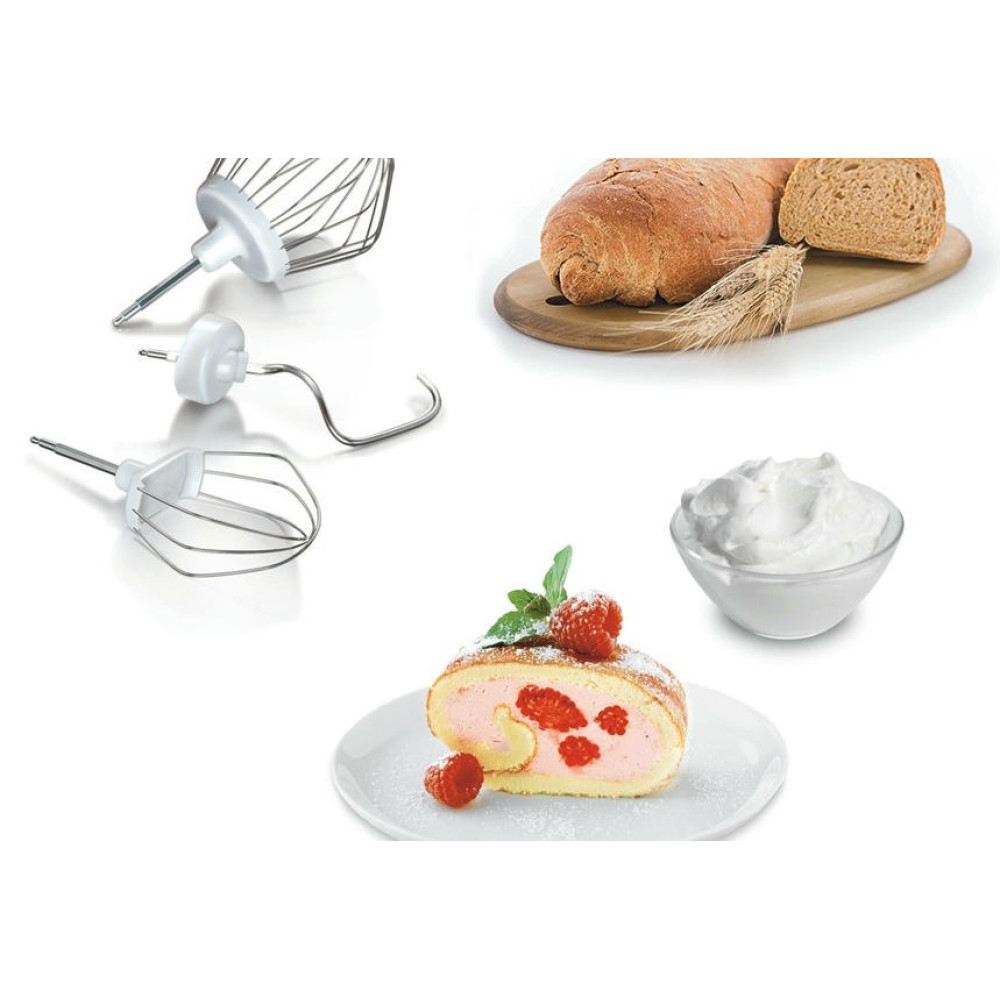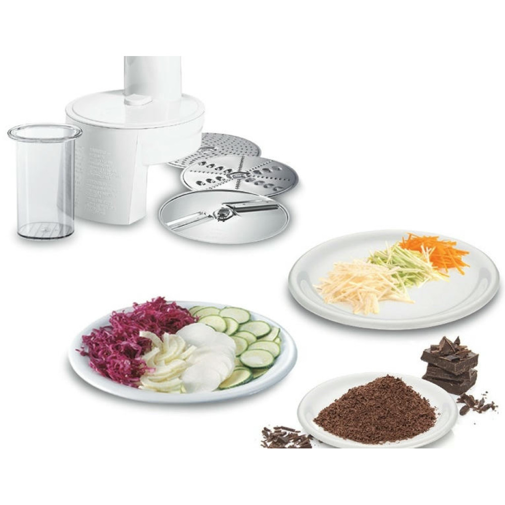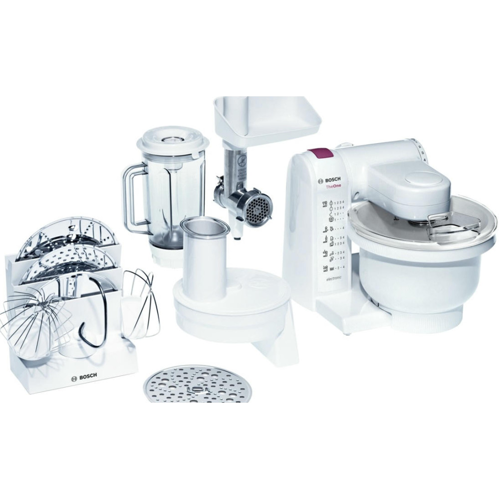 Кухонный комбайн Bosch MUM 4657 — многофункциональная модель с электронной панелью управления. Насадки для теста, венчик для взбивания сливок и кремов существенно расширяют возможности при создании тортов и пирожных. Двусторонняя терка и шинковка помогут приготовить салаты, овощные котлеты (драники) и другие блюда. Блендер предназначен для измельчения и пюрирования ягод и фруктов, смешивания смузи и напитков, мясорубка — для приготовления фарша.
