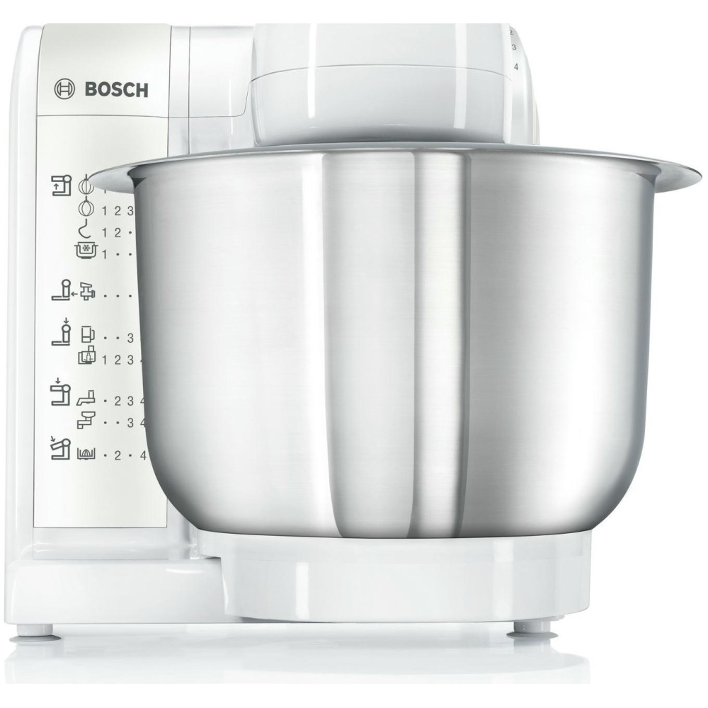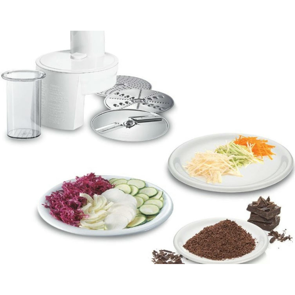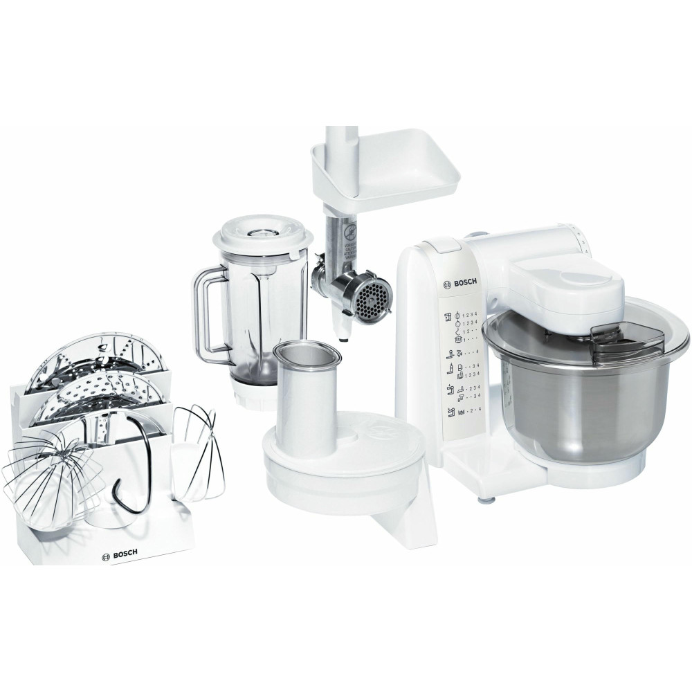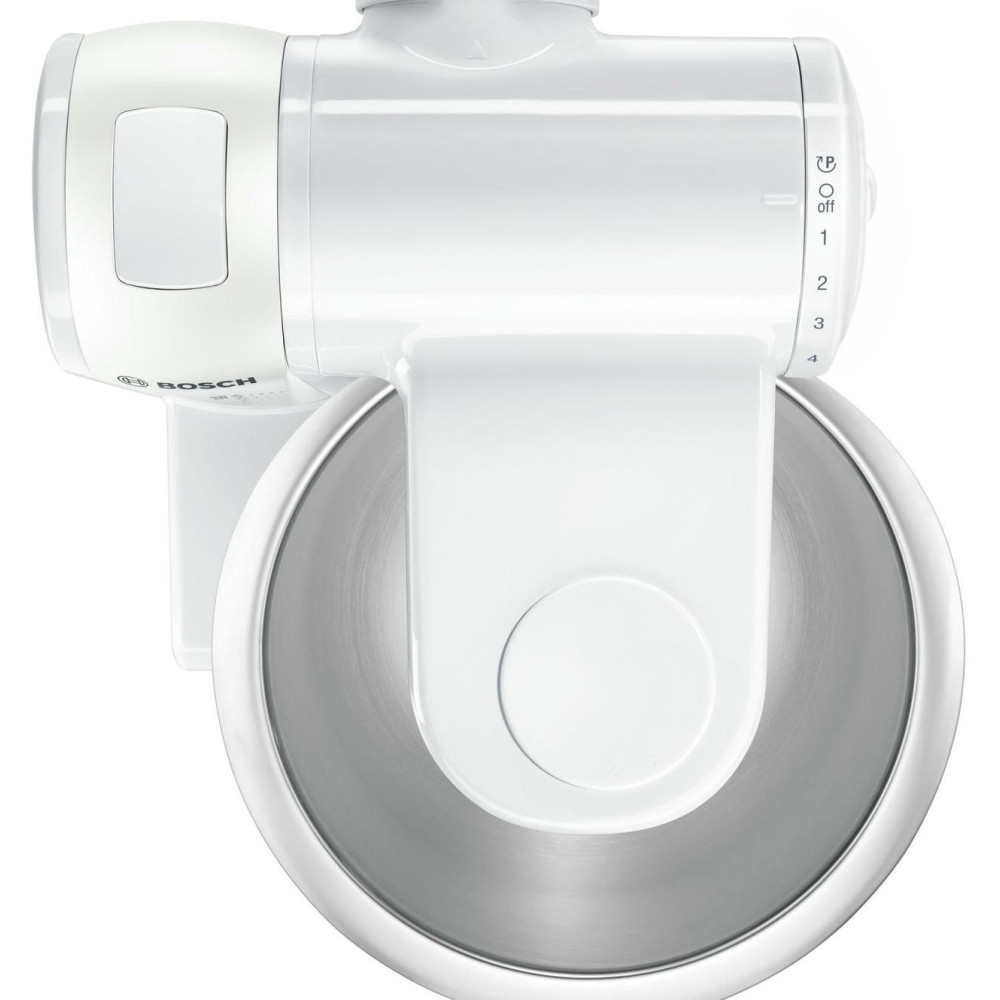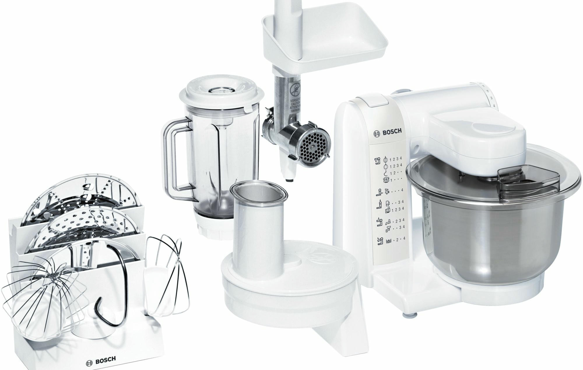 Кухонный комбайн Bosch MUM 4875 — обновленная модель проверенной временем линейки MUM 48. Популярность у пользователей прибор завоевал благодаря удобству электронной панели управления и разнообразию насадок. Кондитерские насадки (венчики, крюк для теста) помогут испечь торты и пирожные. Двусторонняя терка, шинковка сокращают время на приготовление салатов, овощных блюд. Блендер предназначен для смешивания напитков, пюрирования овощей и фруктов, измельчения ягод, фруктов, орехов и кубиков льда. Мясорубка позволит переработать мясо для котлет, колбасок, кебабов.