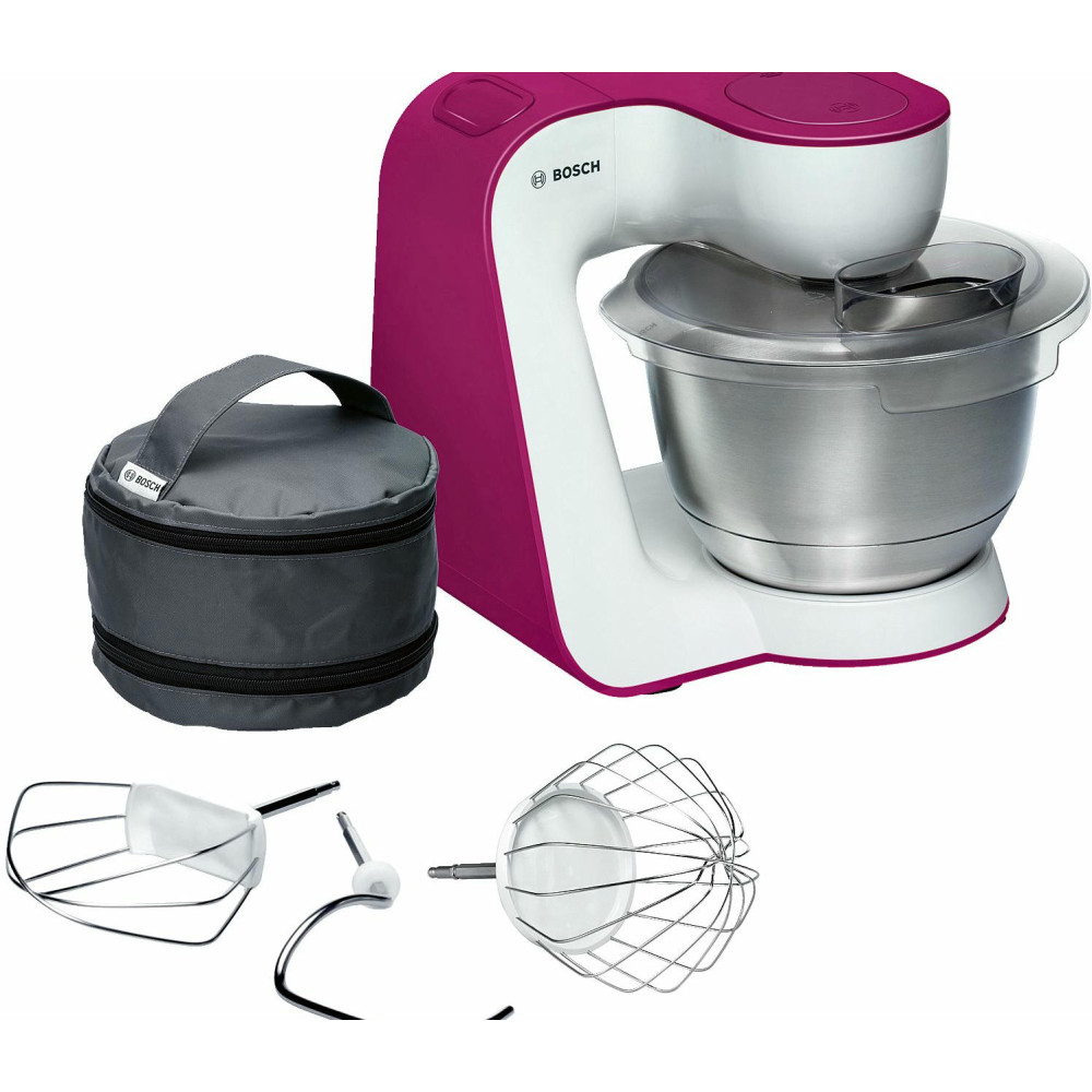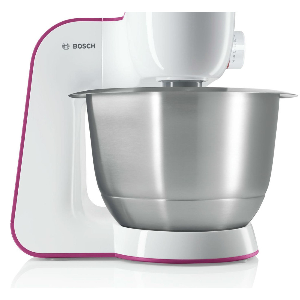 Кухонный комбайн Bosch MUM 54P00 прекрасно подходит для создания кондитерских изделий и выпечки. Планетарное вращение насадок и специальная форма поможет быстро взбить кремы и сливки. Вместительная чаша 3,9л позволяет за один раз замесить до 2 кг плотного теста. Система Easy Arm Lift помогает легко снимать насадки — рычаг поднимается одним нажатием кнопки. Насадки можно хранить в чаше комбайна в специальной сумке.
