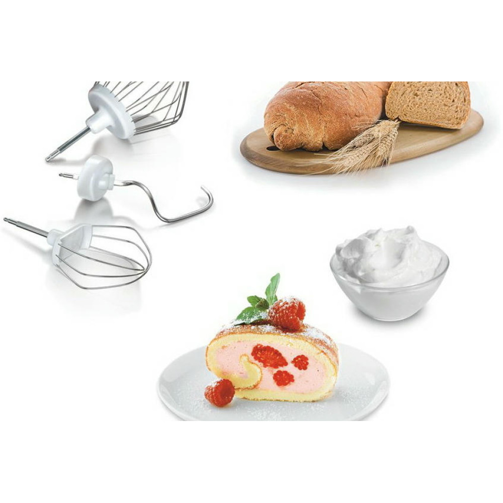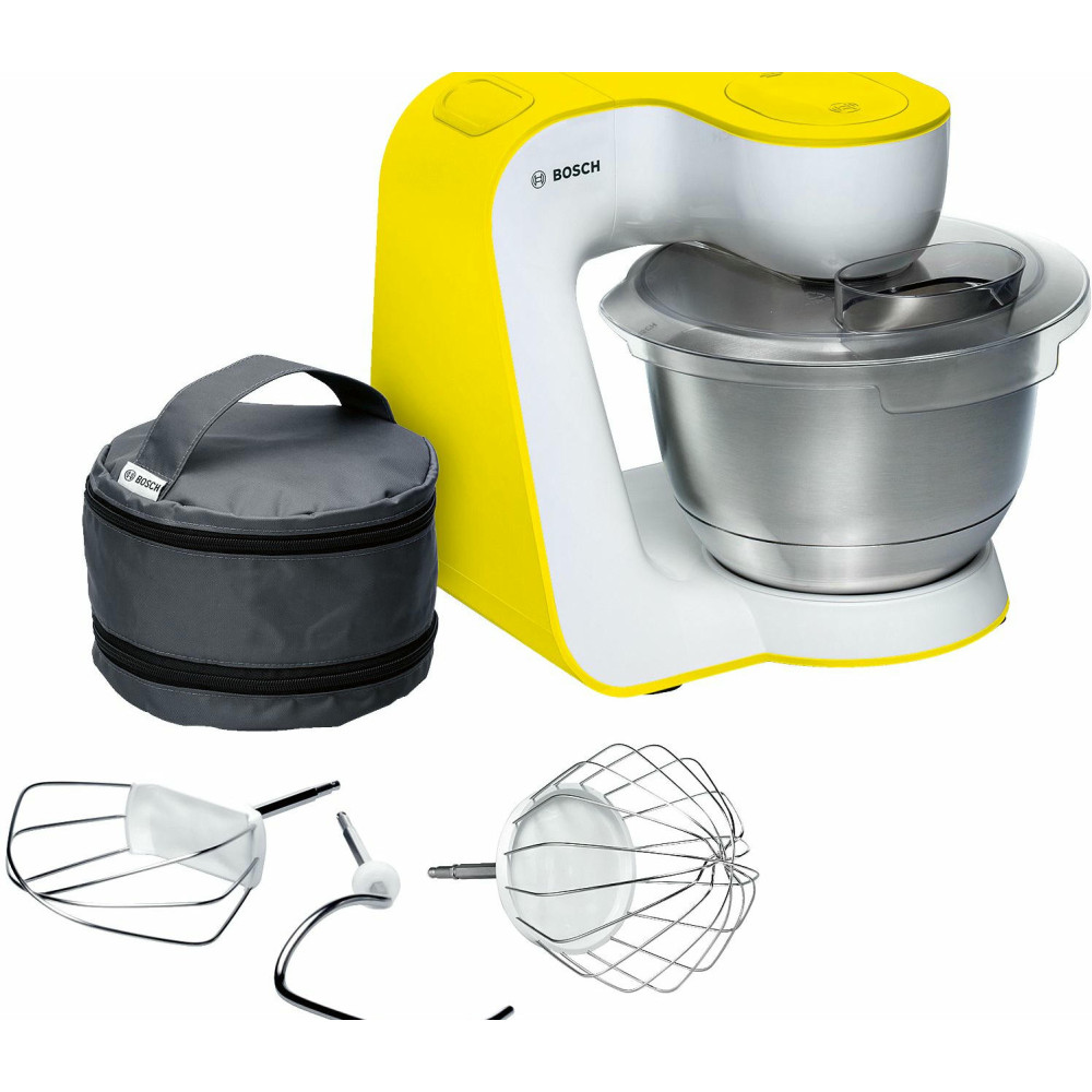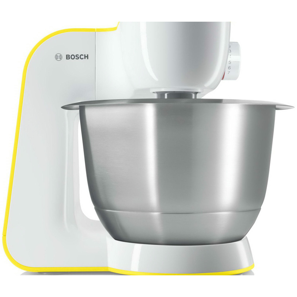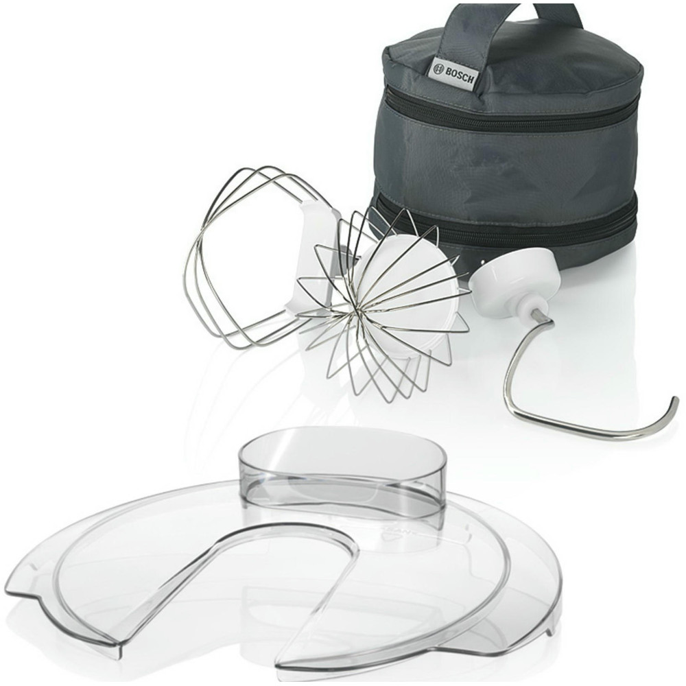 Кухонный комбайн Bosch MUM 54Y00 предназначен для замешивания теста, быстрого взбивания крема и сливок. Большая чаша из нержавеющей стали 3,9 л позволяет замесить до 2 кг плотного теста. Функция автоматической парковки фиксирует насадки в удобном положении для снятия. Венчики и крюк для теста можно положить в удобную сумку, которая хранится в чаше комбайна.