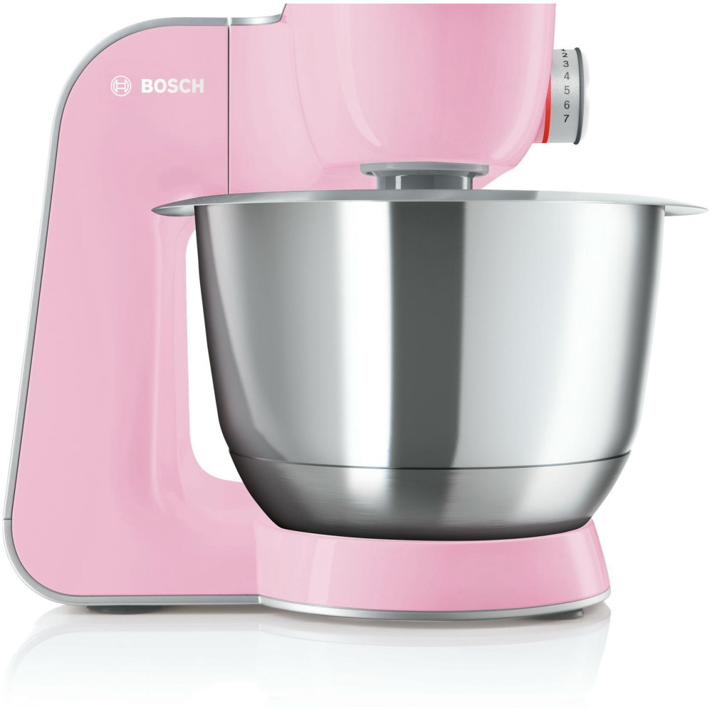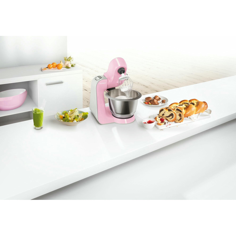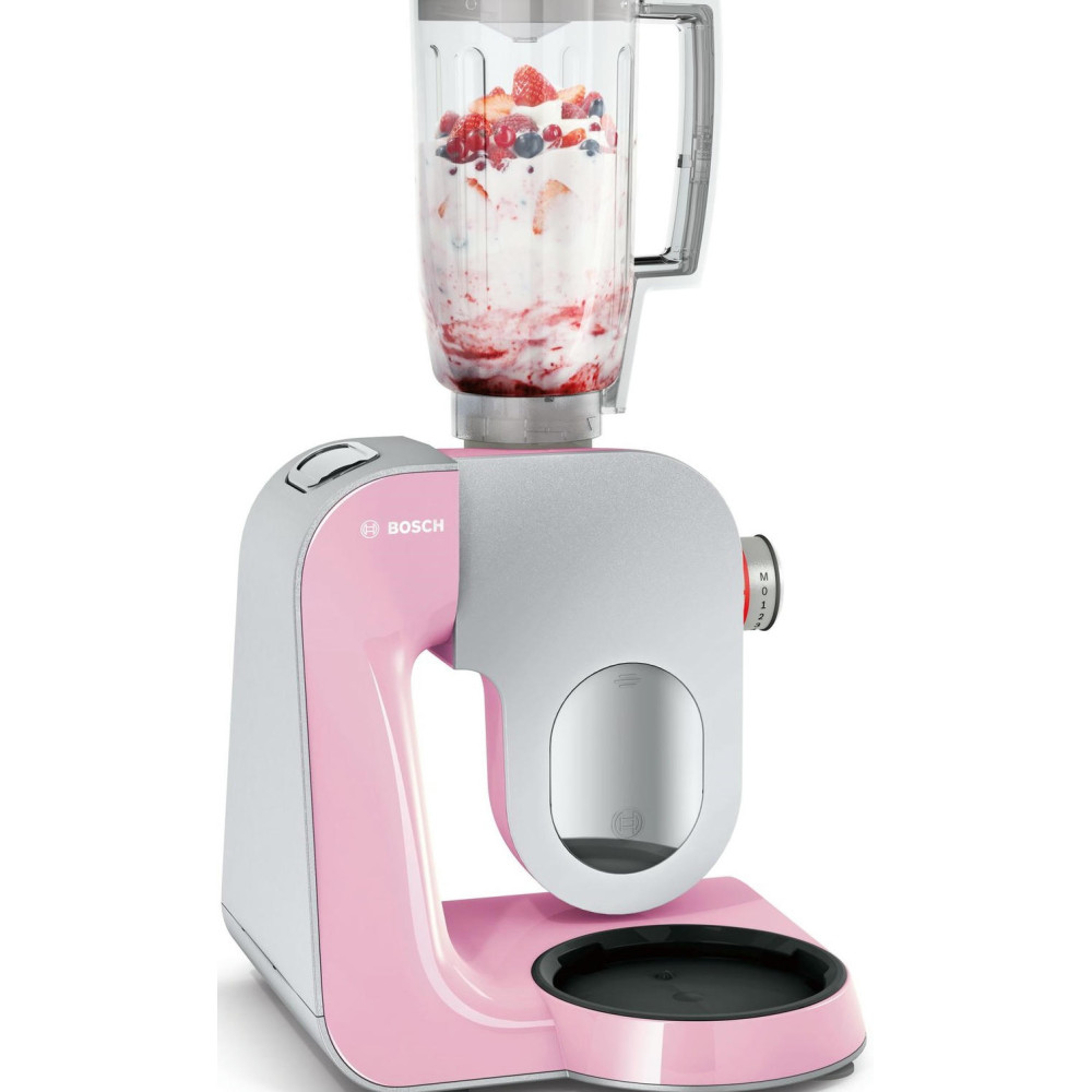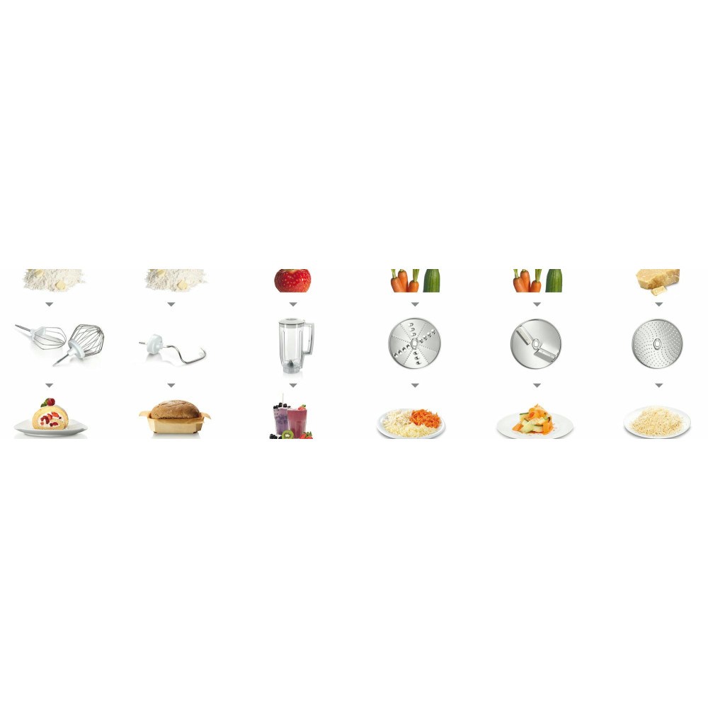 Мощная универсальная кухонная машина Bosch MUM 58K20 благодаря многофункиональности насадок дает возможность приготовить выпечку, салаты и ингредиенты для блюд. Вместительная чаша позволяет замесить до 1,9 кг плотного дрожжевого или 2,7 кг легкого теста. Насадка с тремя дисками справится с овощами, орехами, шоколадом и сыром. Блендер предназначен для приготовления смузи, пюре и мороженого.