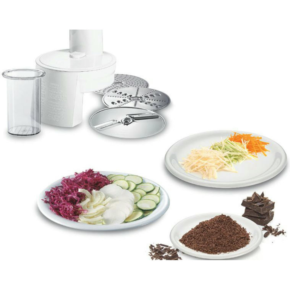 Многофункциональный кухонный комбайн Bosch MUM4427 оборудован чашей объемом 3.9 литра, что дает возможность замешивать до 2 кг теста. Универсальная резка с 3 режущими дисками позволяет готовить салаты и ингредиенты для разного вида блюд.