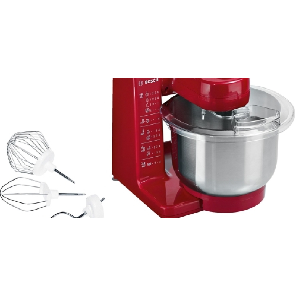 Кухонный комбайн BOSCH MUM44R1 - станет полезным помощником тем, кто часто готовит выпечку и разнообразные десерты. В комплект входят венчики для взбивания и перемешивания ингредиентов и крюк для замешивания густого теста. Чаша и съемные аксессуары выполнены из нержавеющей стали. Они легко отмываются как вручную, так и в посудомоечной машине.