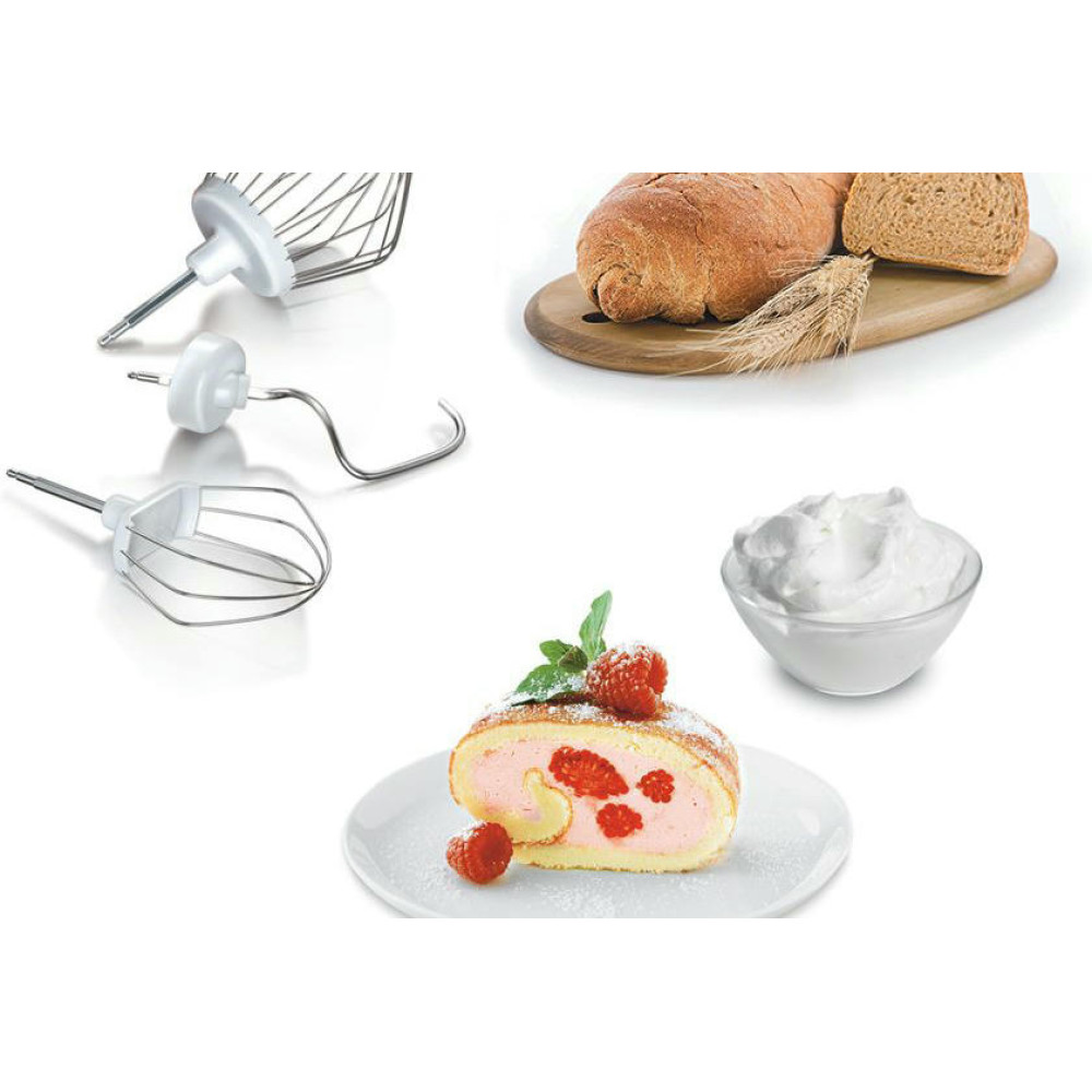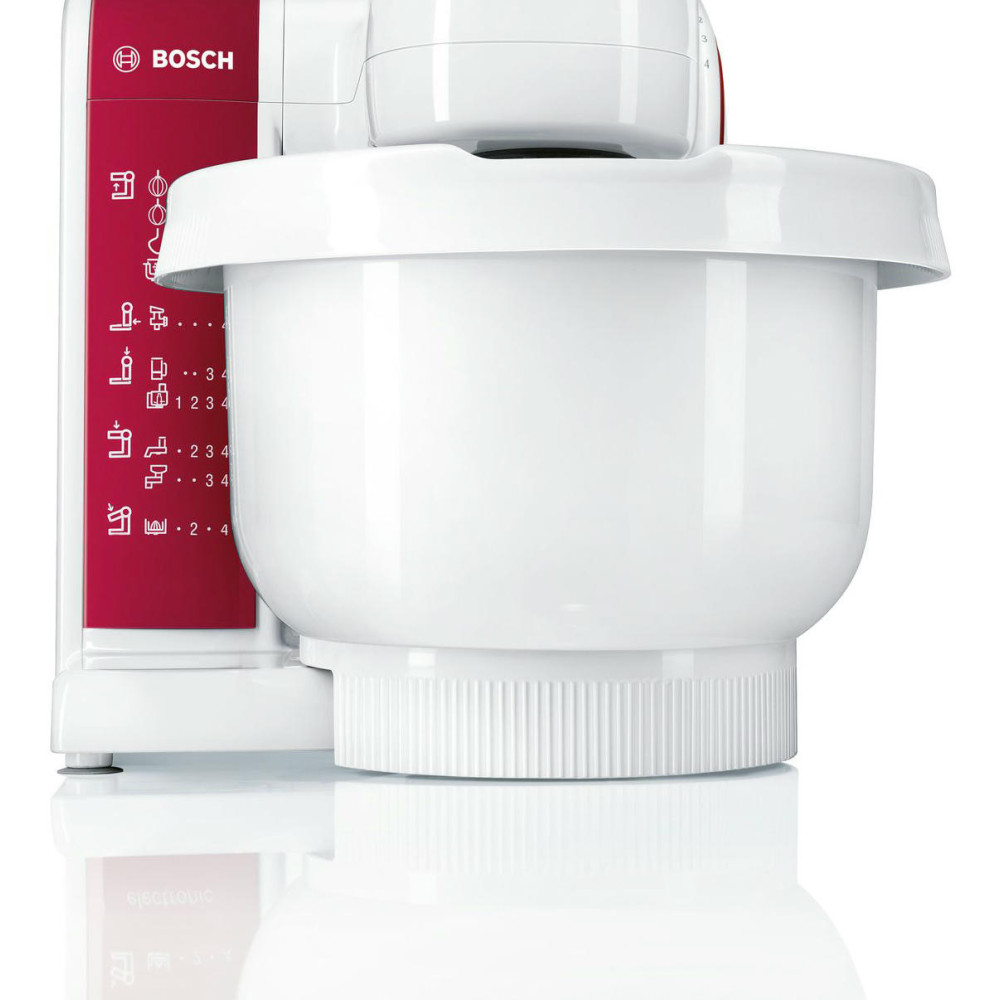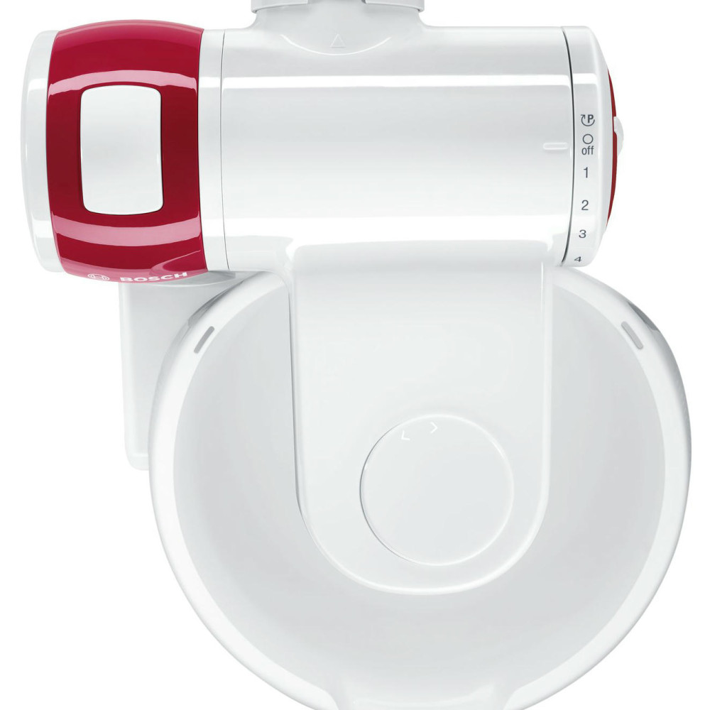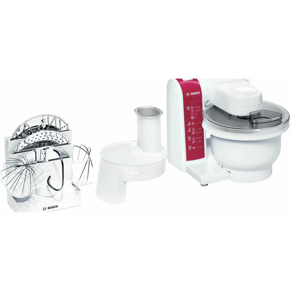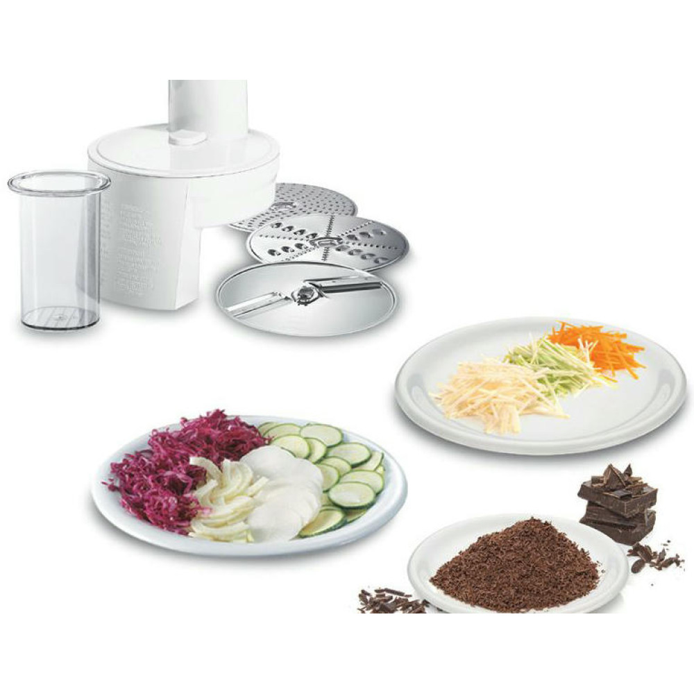 Кухонный комбайн Bosch MUM4825 — мощный прибор с насадками для измельчения, смешивания, взбивания. В комплекте прилагается универсальная резка с тремя дисками для разных типов нарезки.