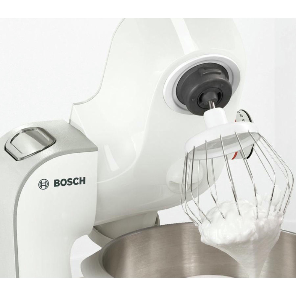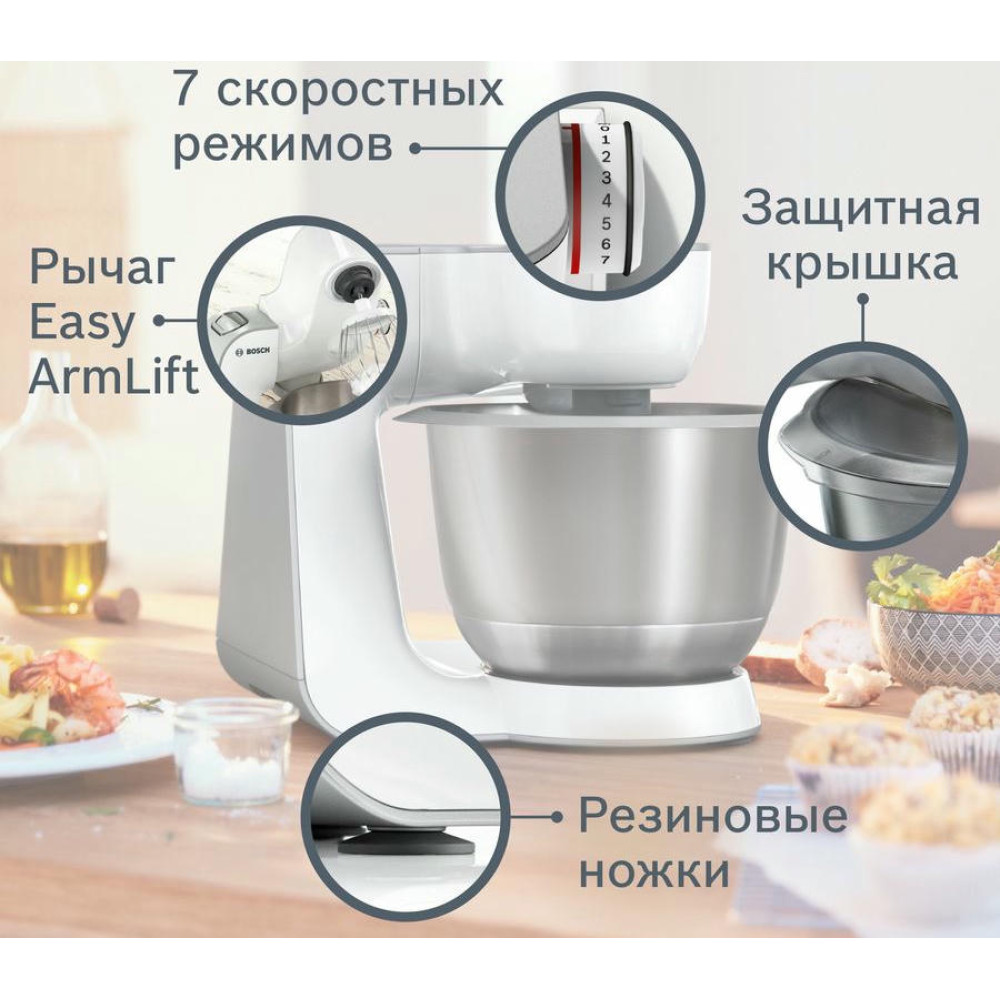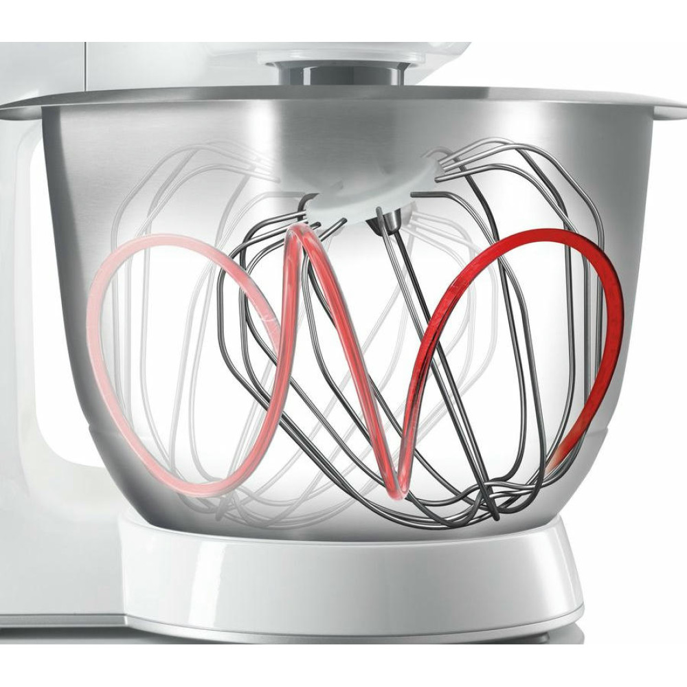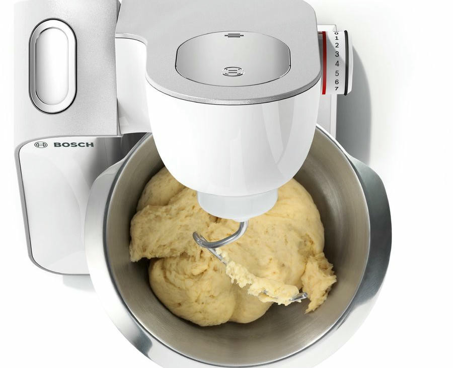 Кухонный комбайн MUM5824C отличается высокой мощностью, долговечностью использования и быстрым достижением результата. Прибор оборудован большой чашей из нержавеющей стали со специальной внутренней формой для оптимального приготовления теста(до 2,7 кг теста для тортов или 1,9 кг дрожжевого теста). Венчики вращаются сразу в трех направлениях по планетарному принципу — никаких остатков на дне и стенках чаши и домешивания руками. Кондитерские насадки останавливаются в положении, удобном для их извлечения. Автоматическое поднятие рычага одним нажатием кнопки позволит легко сменить венчик на крюк и наоборот.