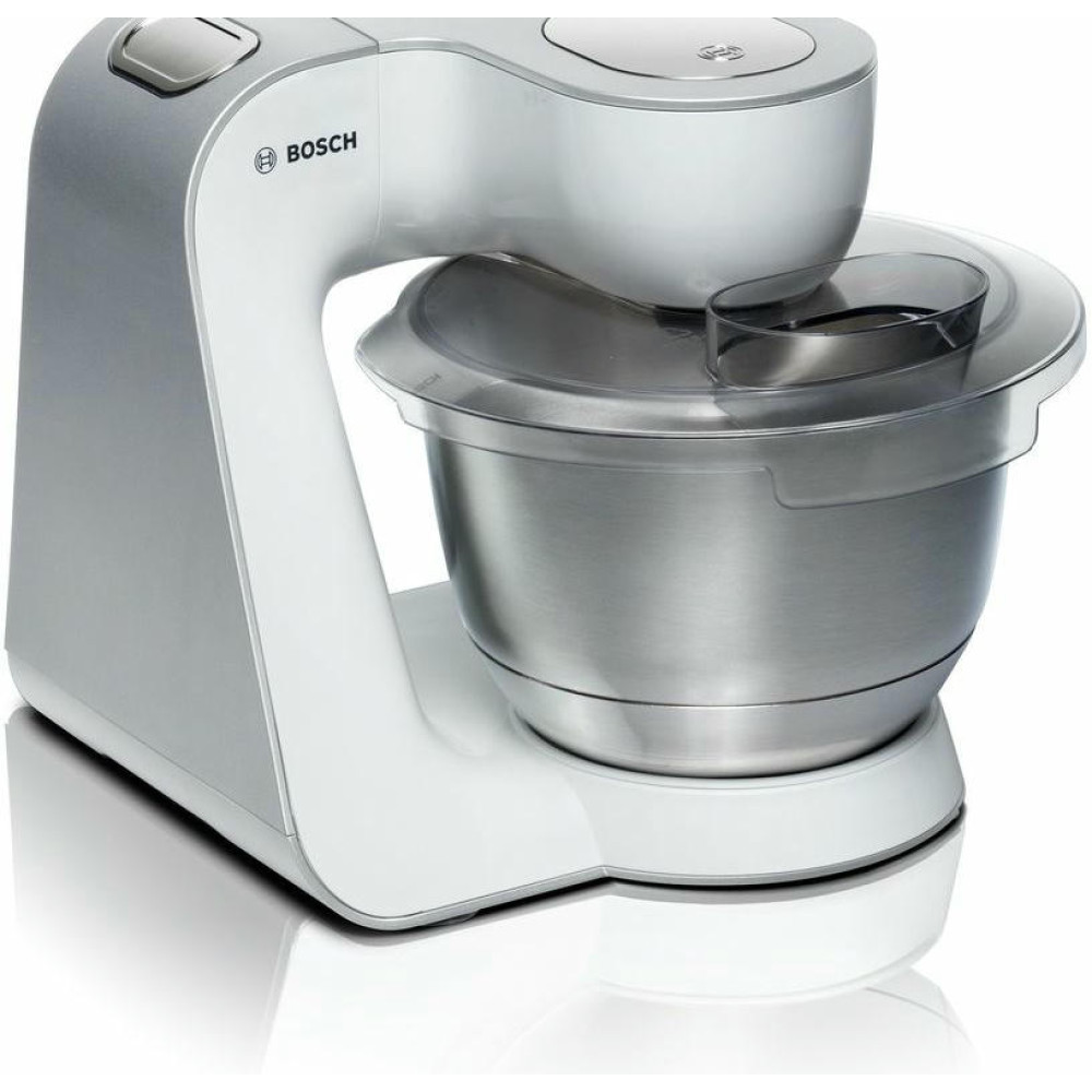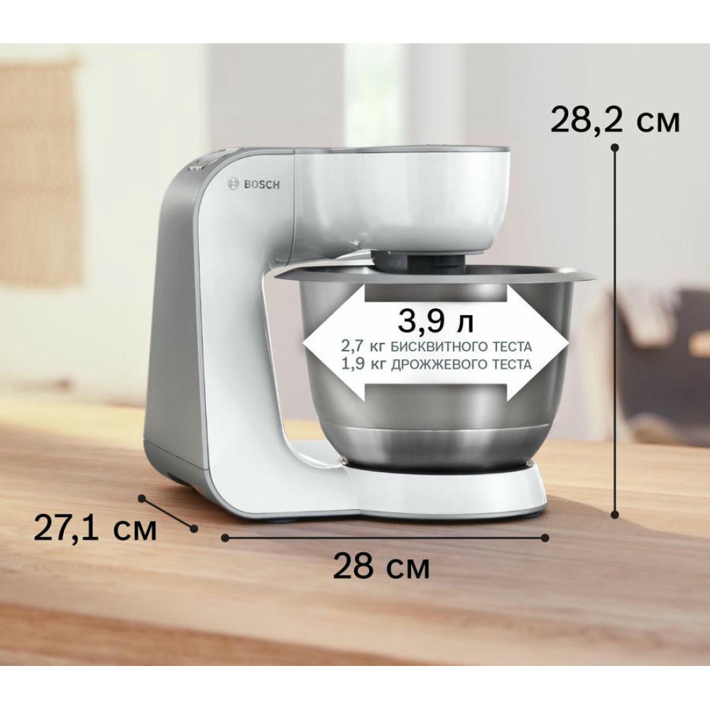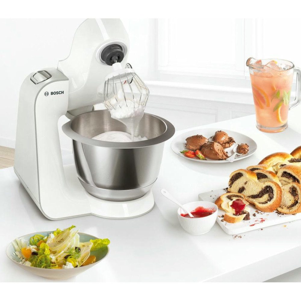 Кухонный комбайн MUM5824C отличается высокой мощностью, долговечностью использования и быстрым достижением результата. Прибор оборудован большой чашей из нержавеющей стали со специальной внутренней формой для оптимального приготовления теста(до 2,7 кг теста для тортов или 1,9 кг дрожжевого теста). Венчики вращаются сразу в трех направлениях по планетарному принципу — никаких остатков на дне и стенках чаши и домешивания руками. Кондитерские насадки останавливаются в положении, удобном для их извлечения. Автоматическое поднятие рычага одним нажатием кнопки позволит легко сменить венчик на крюк и наоборот.