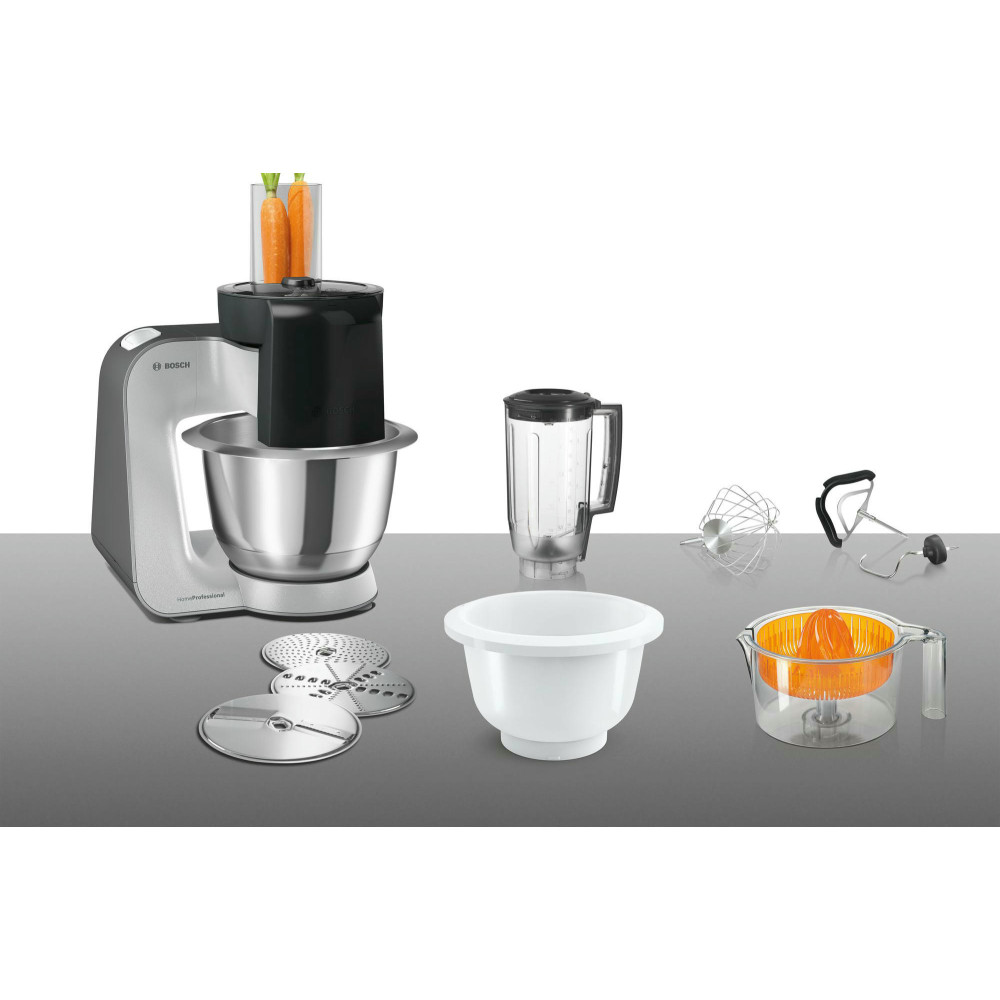 Кухонный комбайн Bosch MUM 59343 — многофункциональный прибор, который соответствует самым высоким стандартам в кулинарии и выпечке. Бдагодаря мощному мотору (1000 Вт) вы сможете замесить до 2.7 кг жидкого и 1.9 кг дрожжевого теста. Функция автоматического поднятия рычага EasyArmLift позволит легко и быстро менять насадки.