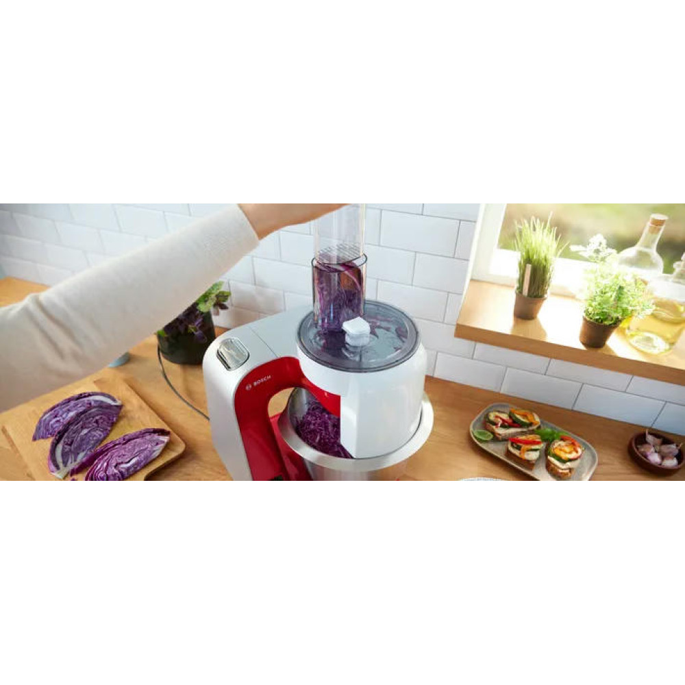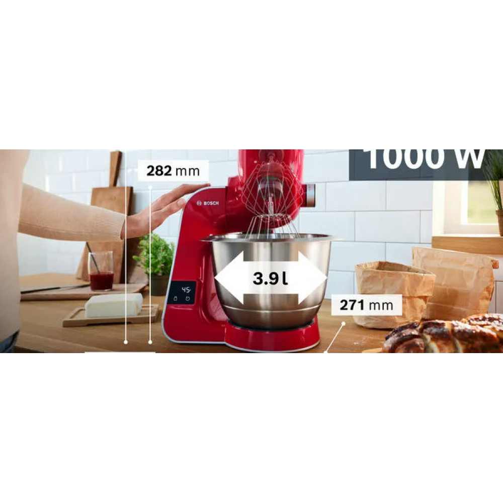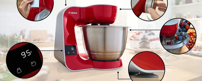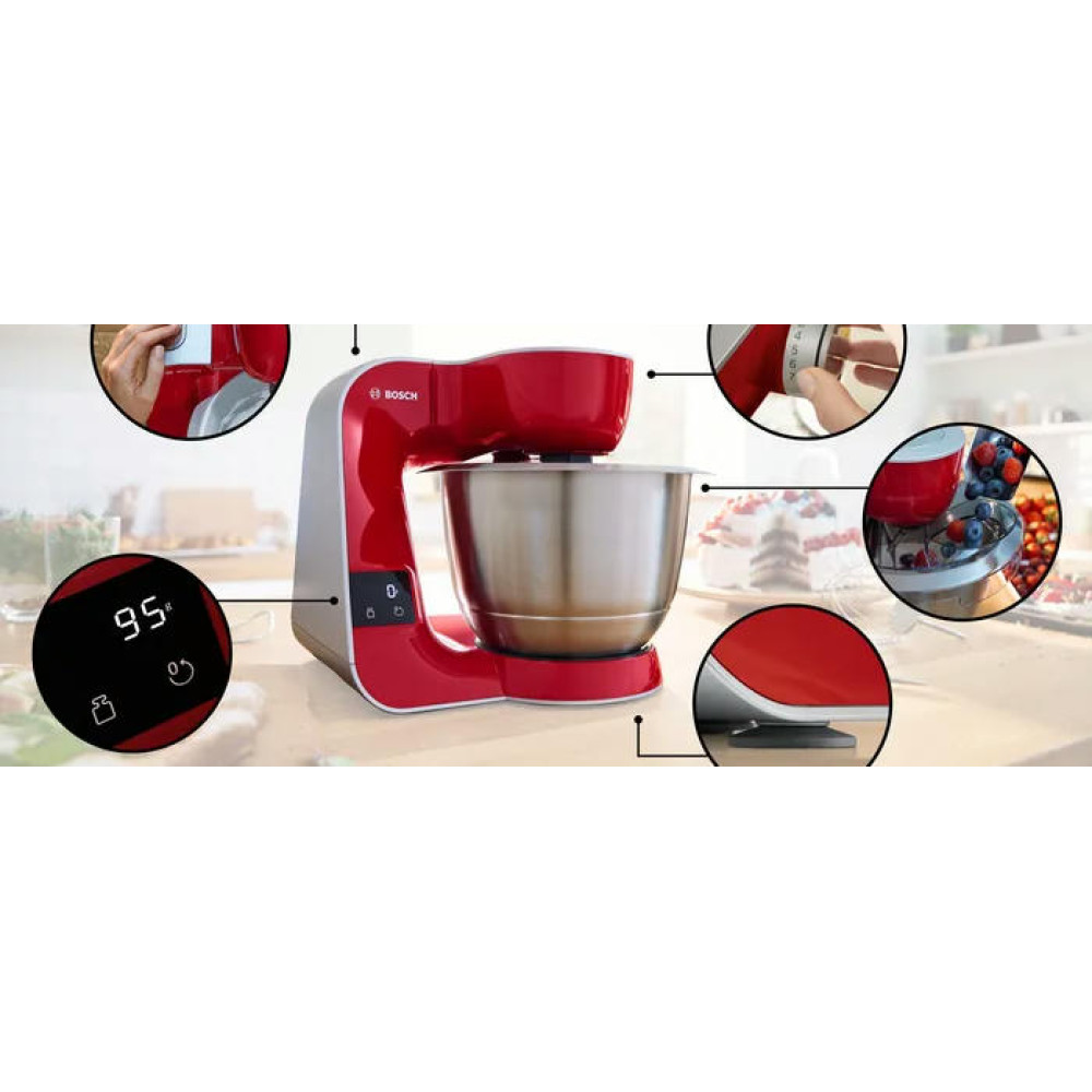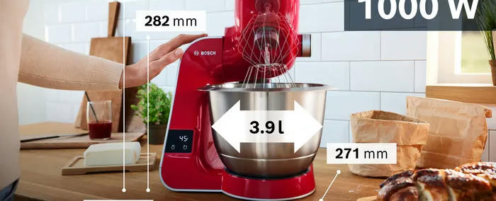 Кухонная машина Bosch MUM5X720 — это мощный и функциональный помощник на вашей кухне. С ярким красным корпусом из высококачественного пластика, этот прибор не только эффективен в работе, но и станет стильным акцентом интерьера. Компактные габариты (28.2x28x27.1 см) позволят ему занять минимум места на кухонном столе, а вес в 7.108 кг обеспечивает стабильность и надежность в эксплуатации. Особенности этого кухонного комбайна включают в себя мощность в 1000 Вт и возможность смешивать до 2.7 кг теста или 1.9 кг дрожжевого теста. Это делает его идеальным для приготовления больших партий выпечки или сложных кулинарных проектов.